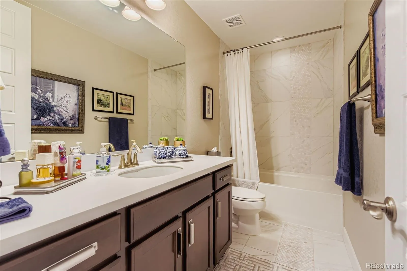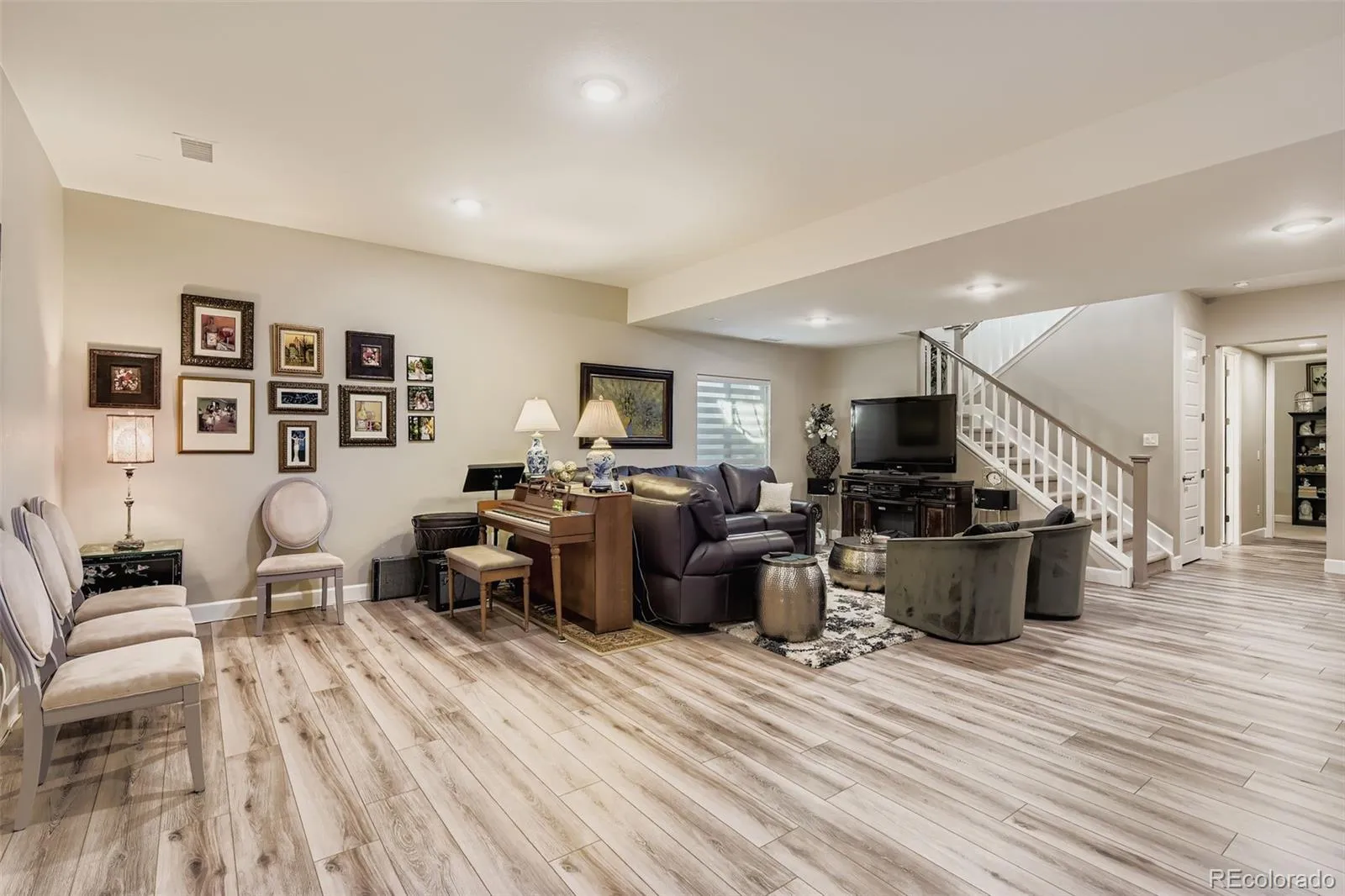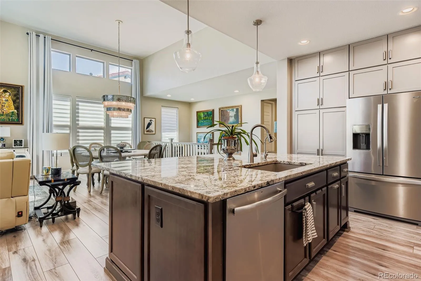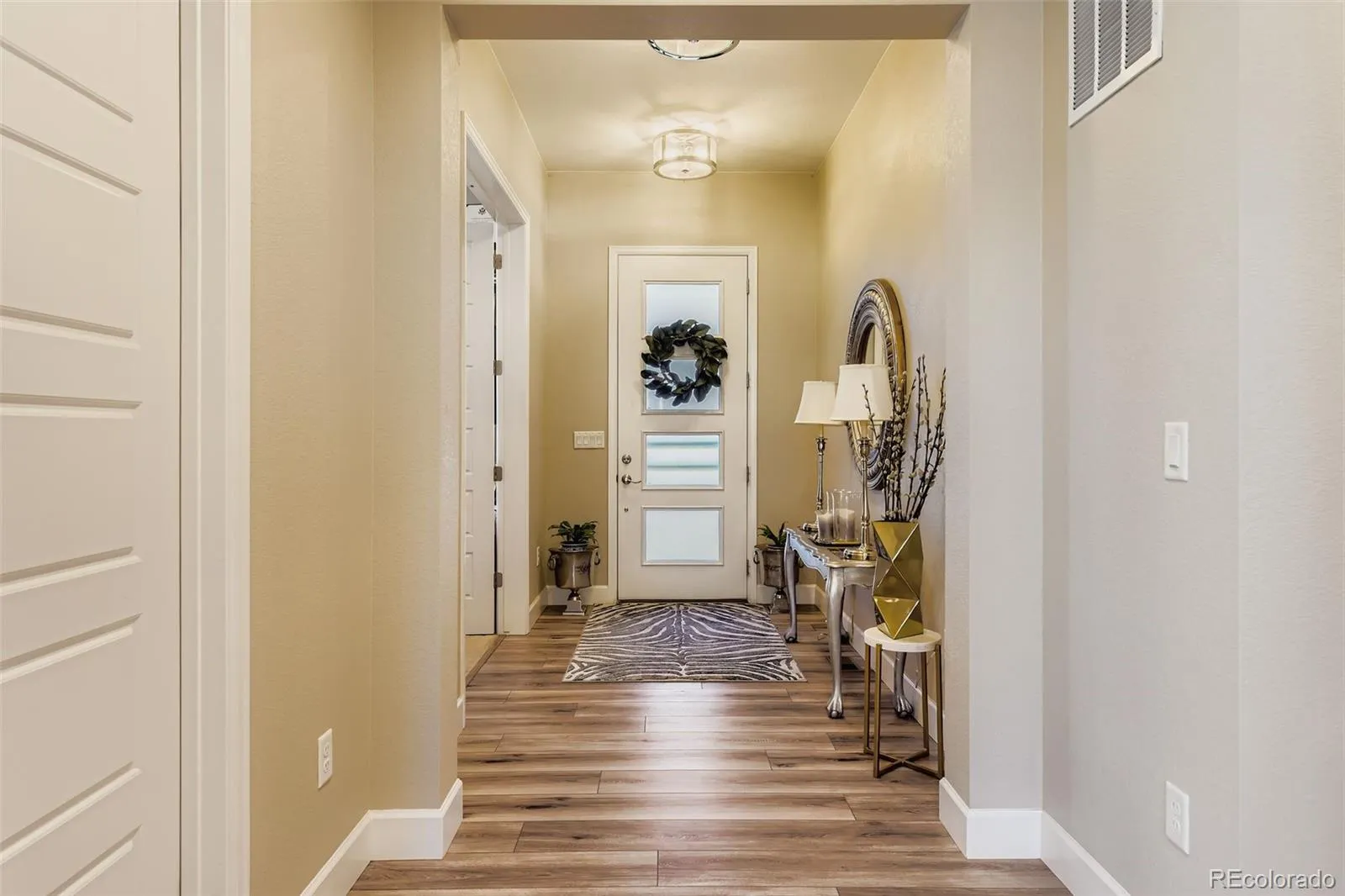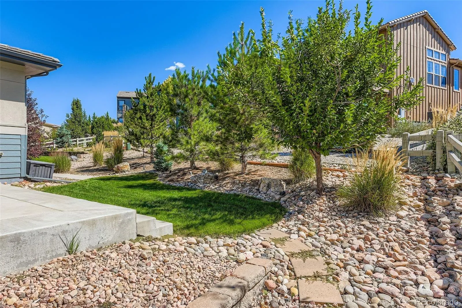 Colorado living at it’s finest! Upon entry, be wowed by this exceptional ranch style home located in the gated community of Backcountry. The chef’s kitchen provides ample space with wall to ceiling cabinetry with granite and corian countertops. The beautiful herringbone tile backsplash complements the gray cabinetry and adds a touch of sophistication to the kitchen. Reverse osmosis (RO) water filtration system a plus! Conveniently located off the kitchen you’ll find a large walk-in pantry. From your great room area, step out onto your patio complete with retractable awning perfect for grilling and entertaining. The primary bedroom has a serene comfortable feeling with three large windows complete with zebra roller shades. This room combines classic elegance with modern practicality. The ensuite primary bath has a clean functional, and slightly spa-like feel with large double sink vanity, rich, dark wood cabinets and sleek hardware. The laundry room is designed with efficiency and connection in mind, serving as a functional passageway to the primary bath. The main floor features a full bath, a stylish powder room and an office that has a warm, cozy intellectual feel. This room could also serve as a second bedroom. The lower level features a large family room, wet bar with sink and small refrigerator, two additional bedrooms and two full baths. There is also a flex space currently being used as a craft/hobby room. HOA includes snow removal of driveway and front walk. Be sure to tour the Sundial house and Discovery Center featuring fitness center, pool, hot tubs, gathering spaces, restaurant, and coffee shop. Enjoy the Backcountry lifestyle with activities including social gatherings, a variety of clubs to get involved with, and outdoor concerts and events. Don’t miss this opportunity to make this home yours, schedule your showing today!