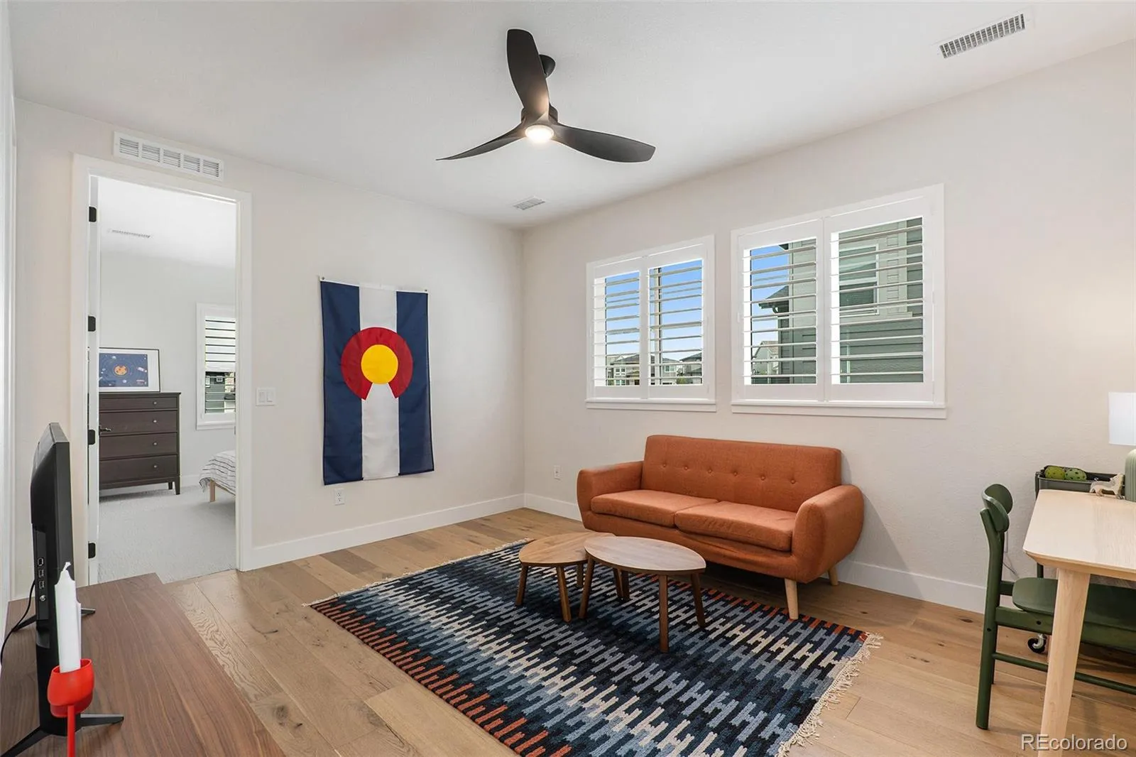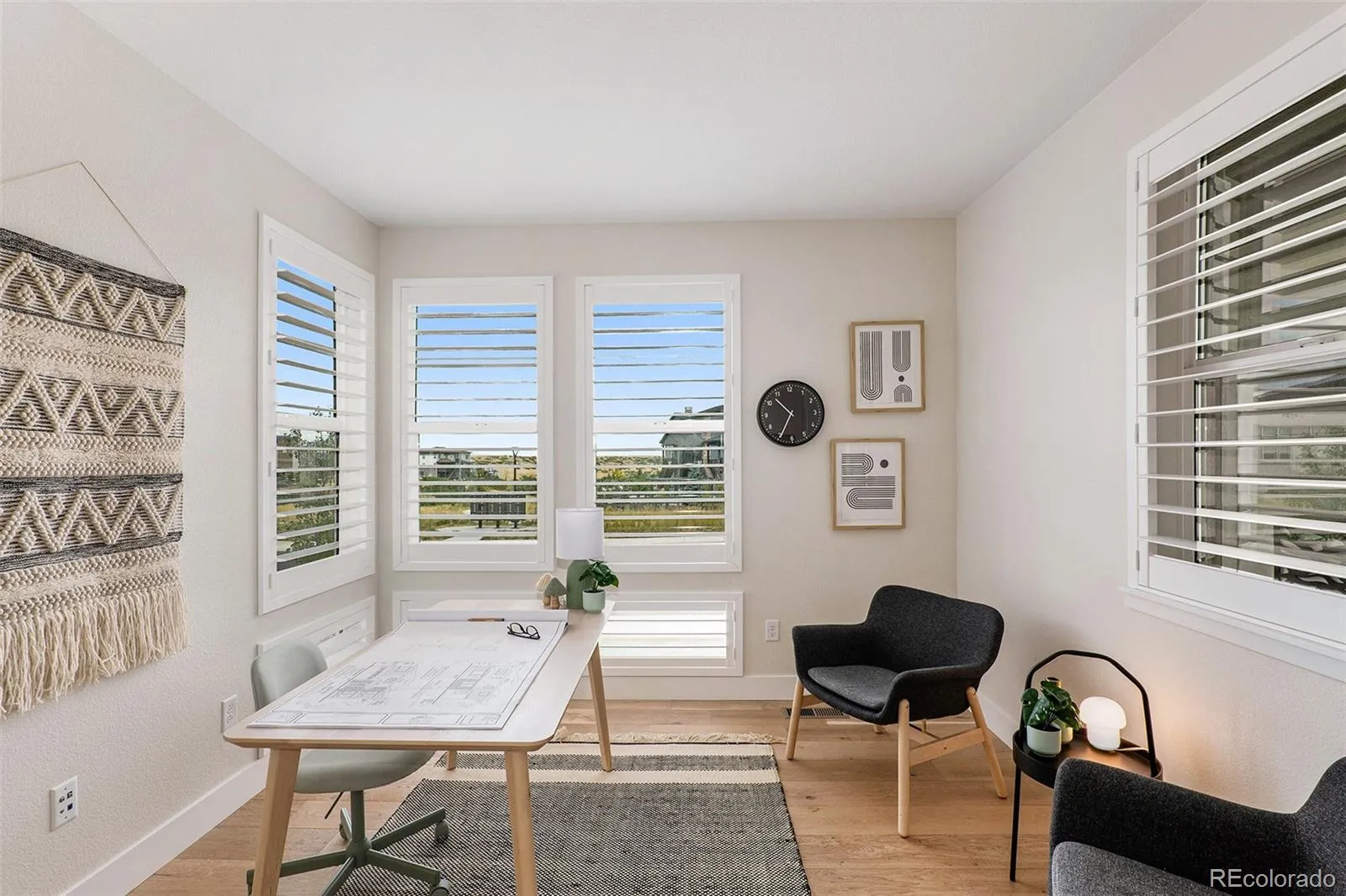 Step inside and you’ll immediately notice the difference: 9” wide plank hardwood floors throughout the whole home, soaring 9’ ceilings with 8’ solid-core doors, and tons of natural light streaming through over 40 windows. The gourmet kitchen is designed for everyday joy and serious entertaining alike, with three ovens, quartz counters, top-end appliances, and an oversized island. A floor-to-ceiling quartz fireplace anchors the great room, venting warmth throughout the space on crisp Colorado evenings.