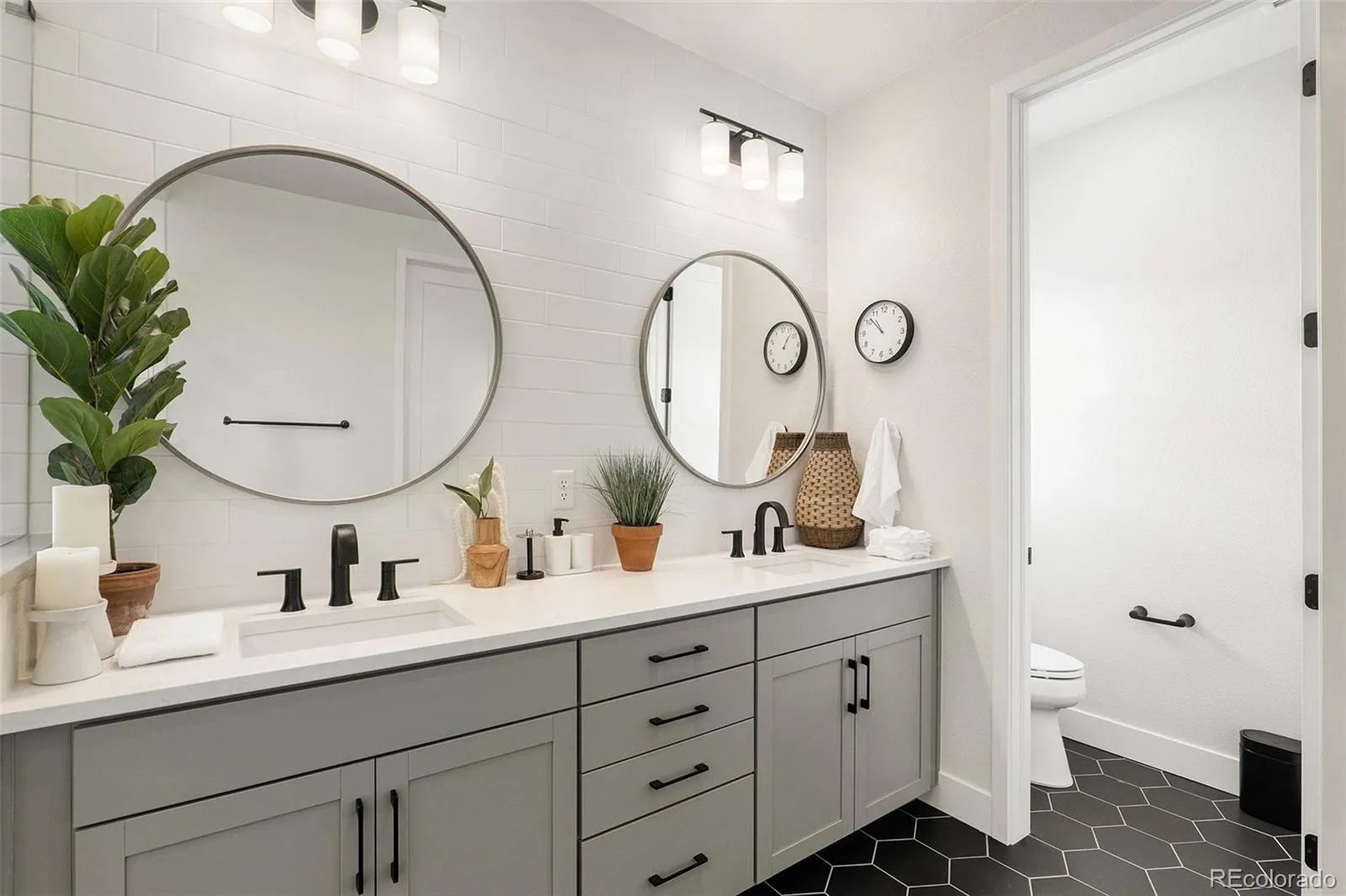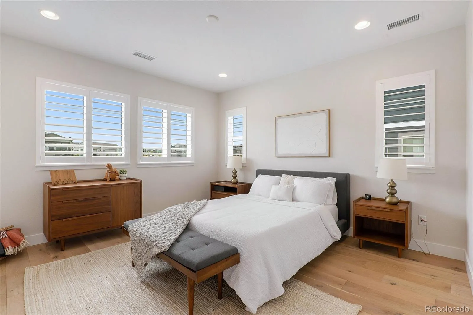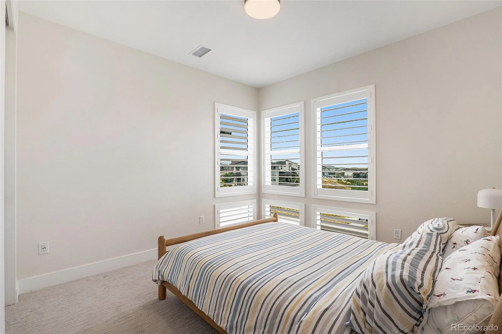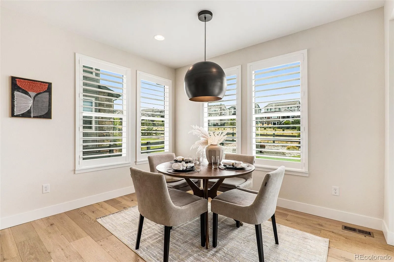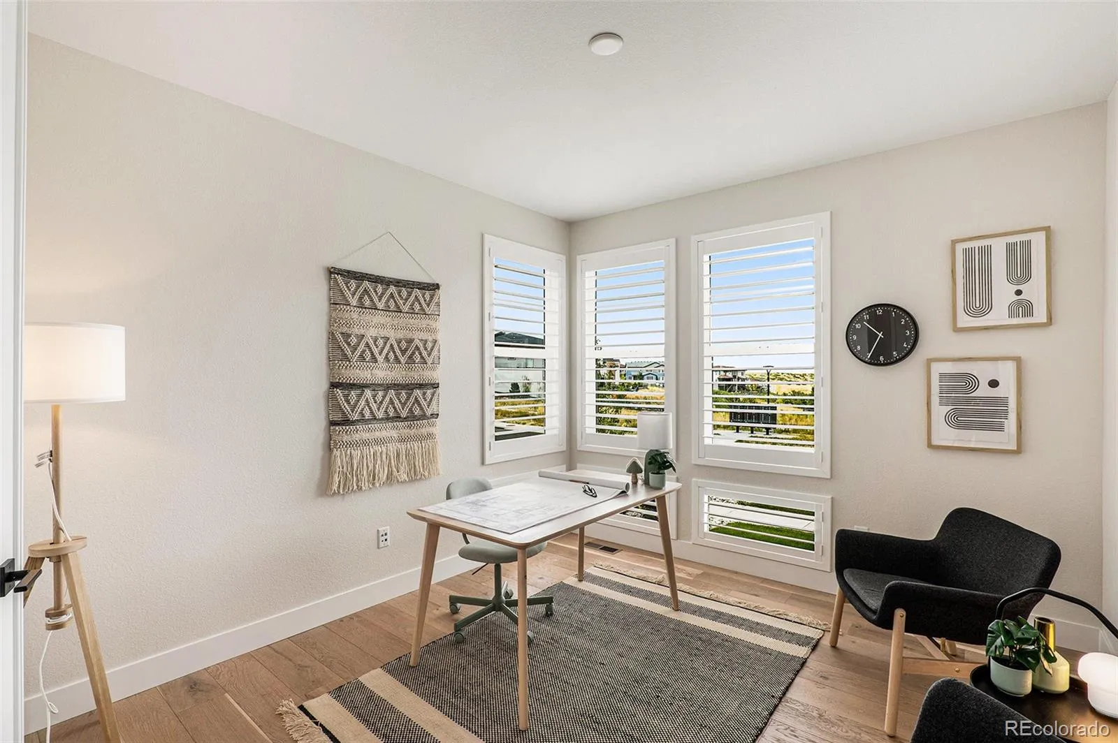 Step inside and you’ll immediately notice the difference: 9” wide plank hardwood floors throughout the whole home, soaring 9’ ceilings with 8’ solid-core doors, and tons of natural light streaming through over 40 windows. The gourmet kitchen is designed for everyday joy and serious entertaining alike, with three ovens, quartz counters, top-end appliances, and an oversized island. A floor-to-ceiling quartz fireplace anchors the great room, venting warmth throughout the space on crisp Colorado evenings.