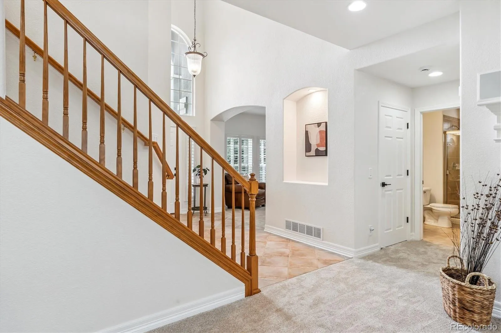 Situated on a premium lot in The Meadows, 3443 Elk Run Drive is defined by intentional design, seamless flow, and refined finishes throughout. the home has new paint and carpet updated throughout this year (2025), the grand foyer features tile floors, high ceilings, and is bathed in natural light, opening up to formal living and dining spaces, ideal for entertaining. seamlessly connect to the gorgeous family room, complemented by 20’ ceilings and a dual-sided gas fireplace. The well-appointed kitchen includes granite counters, a stainless steel appliance package, a walk-in pantry, and a center island. Step outside to your backyard oasis. The yard offers privacy, featuring multiple mature trees and new professional landscaping, which can be enjoyed from the sizable wooden deck while entertaining guests or relaxing under the stars. Upstairs, the private living quarters unfold to three generously sized secondary bedrooms, an updated full bath, and the primary suite. This sanctuary is complete with dual walk-in closets and an updated ensuite 5-piece bath, new tile floors, and a walk-in shower. Additional features of this turnkey residence include new exterior paint, a main-floor home office with a gas fireplace, a laundry room with built-in cabinetry, an attached 3-car garage, and an unfinished basement, plumbed and ready for future expansion. The Meadows is a coveted family-friendly community in Castle Rock within minutes of Soaring Hawk Elementary, Paintbrush Park, The Grange, Red Hawk Ridge golf course, and endless shopping, dining, and entertainment of The Outlets and Downtown Castle Rock. Do not hesitate to experience contemporary living at 3443 Elk Run Drive; book your showing today!