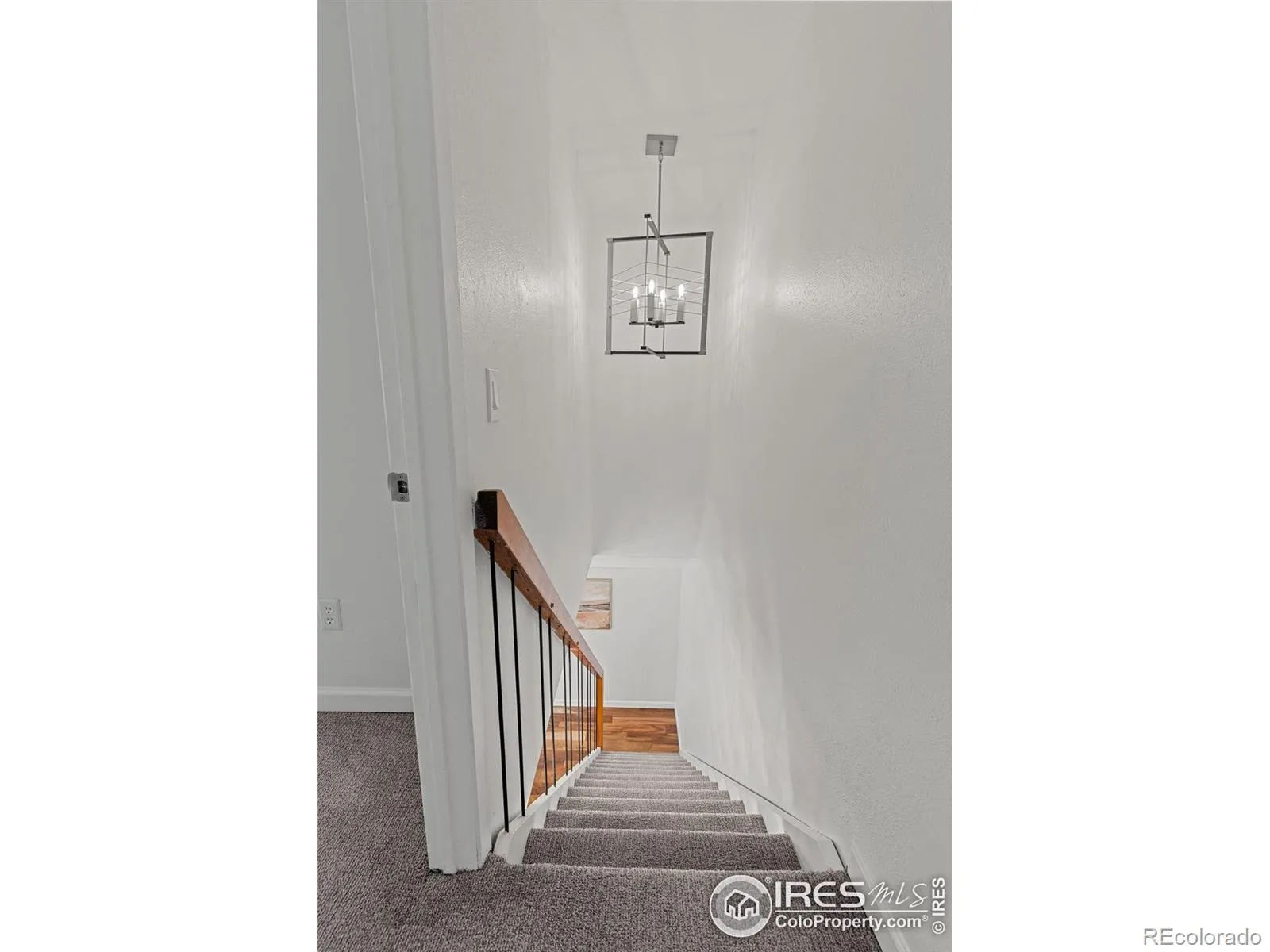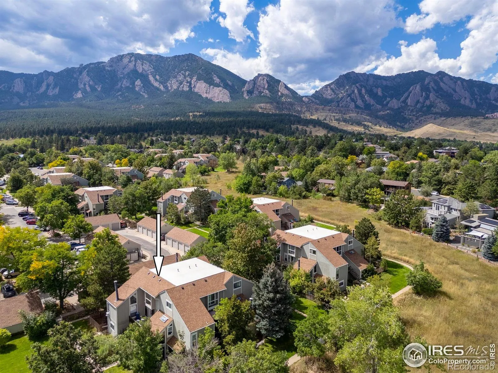 Breathtaking views of the Flatirons and Devil’s Thumb fill just about every window of this beautifully updated Shanahan Ridge South Boulder home, just steps from open space and trails. With vaulted ceilings and two-level living, this residence blends timeless architecture with modern upgrades. The reimagined and fully remodeled kitchen is a showpiece: solid wood cabinetry, eased-edge concrete quartz countertops, apron sink, floating shelves, mobile island, dual convection oven, LG microwave, Delta Pivotal Pull Down Touch faucet and a Samsung Bespoke 4-door glass-paneled refrigerator with beverage center. Comfort is front and center with a high efficiency 4-head mini-split heating and cooling system- ensuring zoned year-round comfort. The gorgeous wide-plank acacia engineered hardwood floors, newer flat weave carpet, LED recessed lighting, and a Lente lighting fixture, elevate the interiors. The main floor also includes a half bath room with a new vanity, stackable washer/dryer, and the living room features a cozy wood-burning fireplace maintained annually by the HOA. Upstairs, the primary bedroom showcases unmatched mountain views of Boulder’s iconic Devil’s Thumb and Flatirons, and the 2nd bedroom that could also serve as the perfect office. Outdoor living features a 180sf private and quiet southwest-facing deck with inspiring vistas, plus a hardscape stone patio below with low-maintenance plantings. The oversized one-car garage provides space for a vehicle plus storage. Additional parking is easy and available around the community if needed. Community amenities include a neighborhood pool, trash, and snow removal. This pet-friendly neighborhood is lined with open space and offers quick access to Shanahan Ridge Trailhead, South Boulder Rec Center, Table Mesa shops, including Whole Foods, King Soopers, Illegal Petes and so much more. Don’t miss this fully updated move-in ready home where all the work has been done for you!