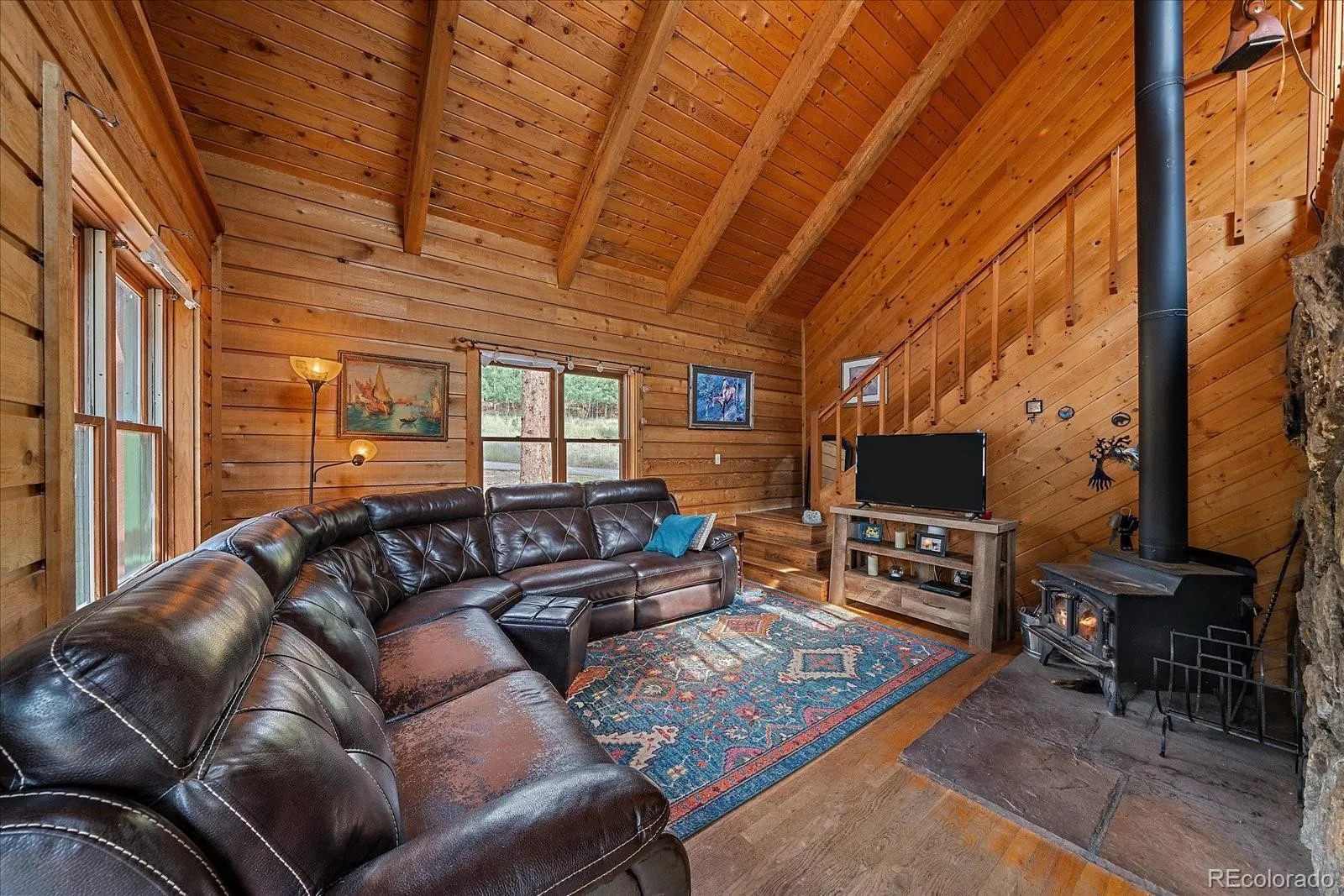 Welcome to 104 Six Bits Street, where rustic charm meets modern convenience in Bailey! This delightful 3-bedroom, 2-bathroom abode sprawls over 2,432 square feet, nestled on a generous 3.42 acre lot. It’s not just a home; it’s your new adventure. Step inside to find a beautiful open concept living and dining rooms with vaulted ceilings, a wood burning stove, stone accents, perfect for chilly Colorado evenings a cozy affair. The kitchen area with a breakfast bar is a chef’s delight, featuring stainless steel appliances including a range, dishwasher, disposal, and refrigerator. The upper level boasts a versatile loft, perfect for a home office, reading nook, or hobby space, accompanied by an inviting bedroom that promises tranquility and privacy. The lower level is equally impressive, offering a spacious family room, an additional bedroom, and several utility rooms complete with bathroom amenities, making it ideal for separate spaces. Equestrian enthusiasts, rejoice! This property features a large 3-stall horse barn, a loafing shed, and a paddock that promises ample space for your equine companions. The round pen is perfect for training sessions, and the comprehensive fencing ensures safety and security. Plus, a fenced dog yard offers a dedicated area for your canine friends to frolic freely. The versatile outdoor options provide ample space for gatherings. And let’s not forget the inviting deck and private balcony — ideal for sipping your morning coffee while taking in the mountain air.