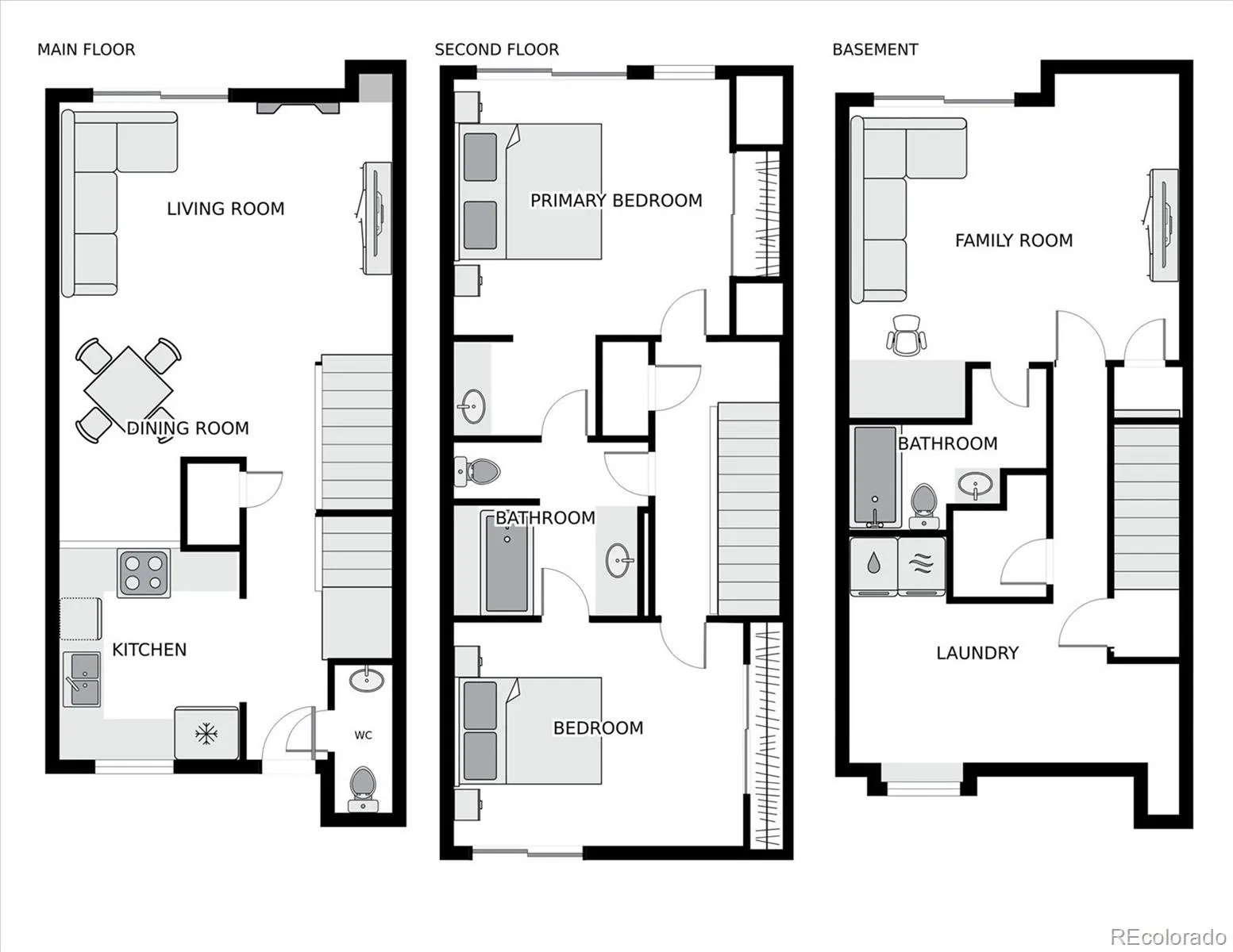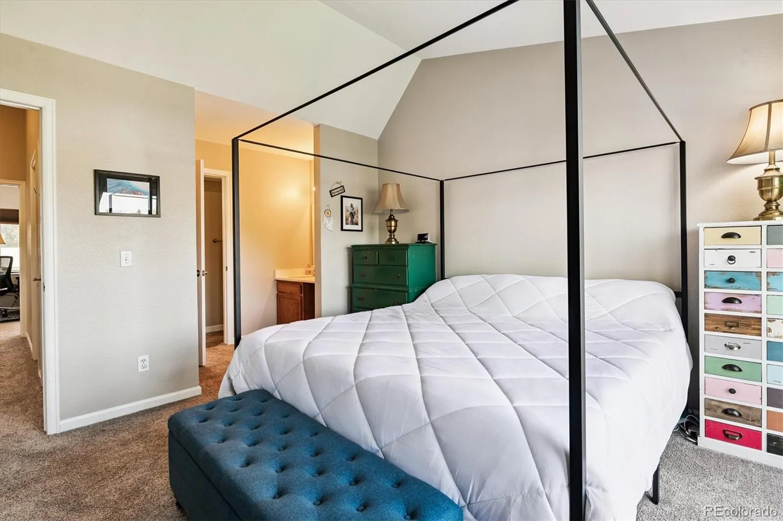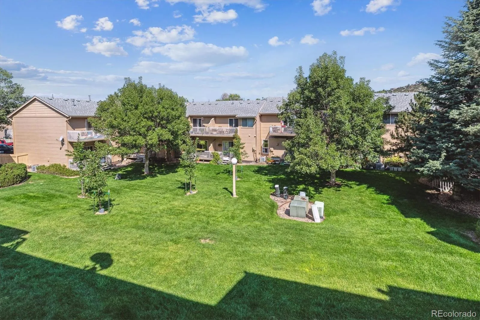 Beautiful townhome with walkout basement in quiet Aspen Meadows community. Home has 3 balconies, a covered patio, and a detached one-car garage. Bright kitchen with newer engineered wood flooring (2023), new dishwasher (2025), newer refrigerator (2023), and stainless steel appliances. Dining room with newer engineered wood flooring (2023). Cozy living room with gas fireplace, newer high-end carpet (2023), and built-in shelving. Plenty of natural light from the large sliding glass door that opens to a lovely balcony (8.5′ x 6′) overlooking grassy common space. Convenient half bath on the main level. Two spacious bedrooms upstairs, each with their own balcony and private entrance to the updated full bathroom. The master bedroom, with its vaulted ceiling and separate vanity space, provides a view of the common space and a glimpse of the Rock from the balcony. The second bedroom with its balcony looks over Memmen Ridge Open Space and has a small mountain view. Two skylights upstairs. The walkout basement offers a third bedroom with an attached full bath, closet, and new engineered hardwood (2024) opening to a covered patio (8.5′ x 6′). Additional flex space/laundry room/storage with its own egress window. 6-panel doors. Home comes with a 14-month Blue Ribbon Home Warranty. Reserved parking spot (#282) and a 1-car garage (#17). The garage has attic space for storage with a pull-down ladder and enough room to stand up. Located in a quiet enclave surrounded on three sides by Memmen Ridge Open Space. Faces south — light and bright. Close to Centennial Park and Burgess Pool, schools, shopping, and dining. Just a 15-minute walk to downtown Castle Rock via trail. Rare opportunity for a townhome with 3 bedrooms and a finished walkout basement in well-maintained Aspen Meadows.