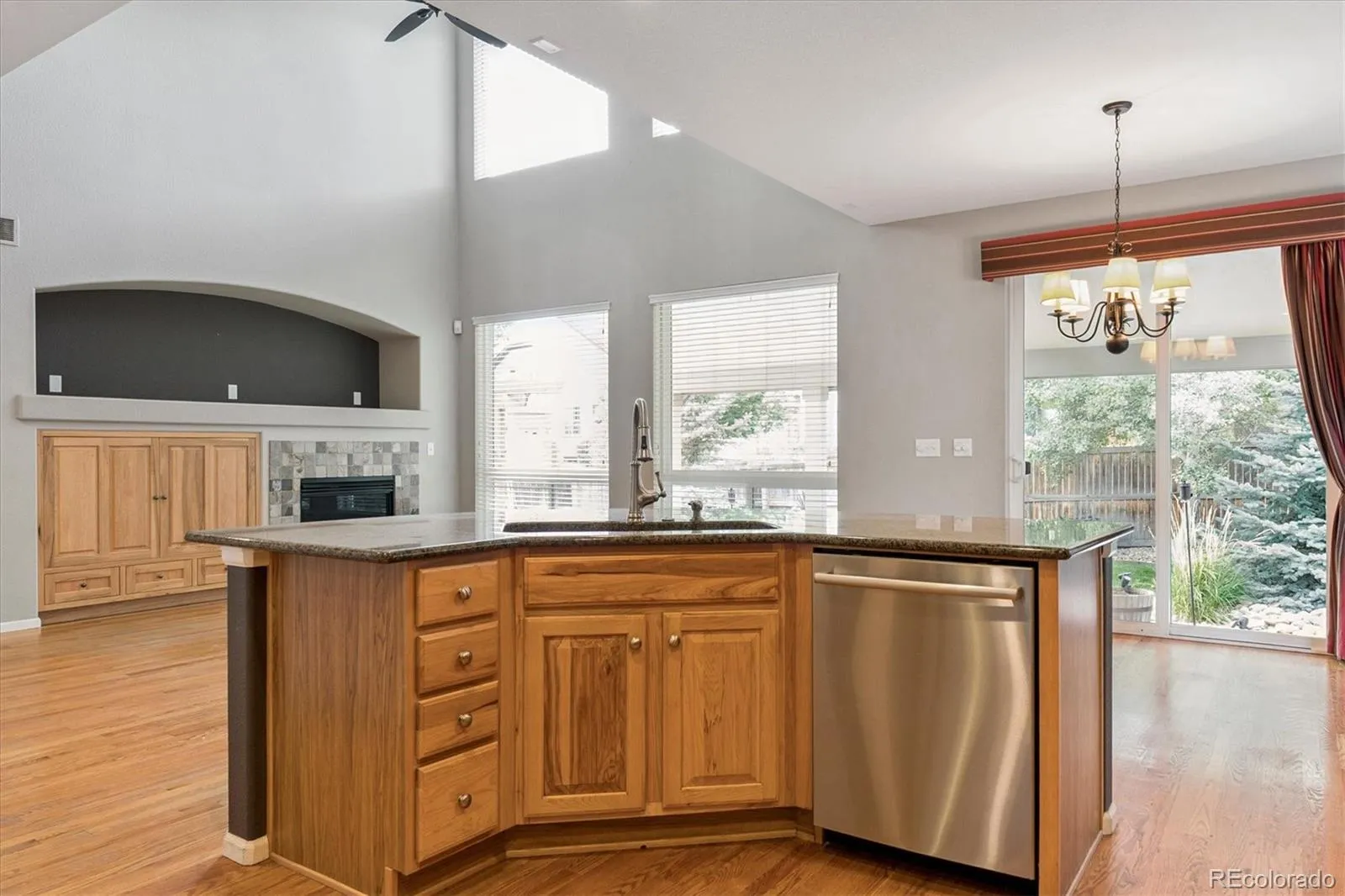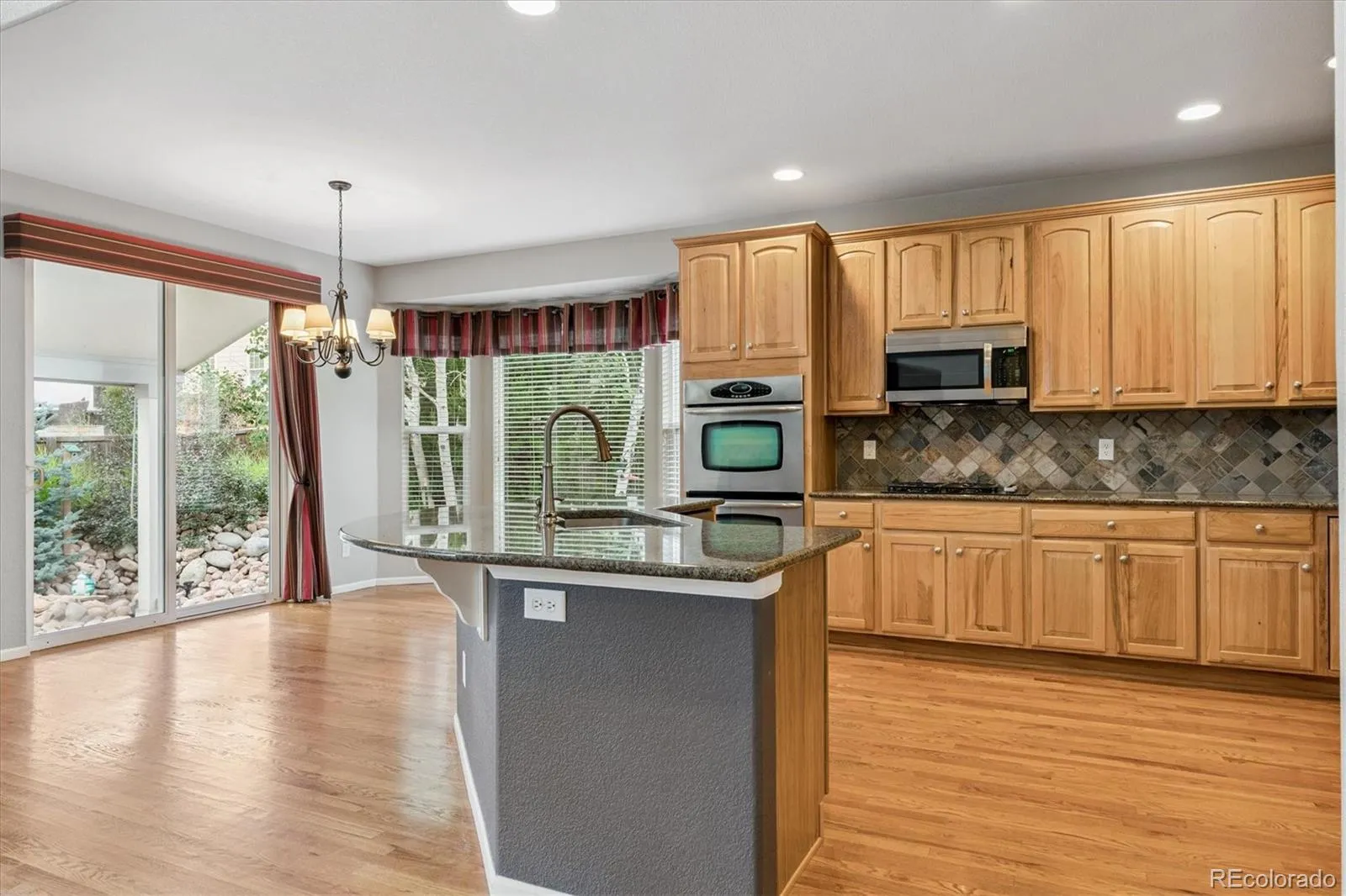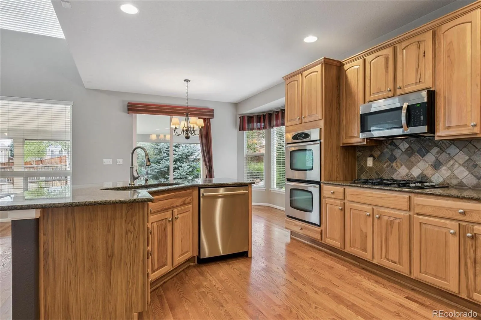 Opportunity knocks! Price reduced! Make this home truly yours and find yourself in a sought-after, peaceful, quiet location in Castle Rock, but just 25 minutes to the Denver Tech Center! From the moment you step inside, you’ll find an open and inviting layout designed for both everyday living and memorable entertaining. The main level features formal living and dining rooms, an open kitchen and family room, and a main floor study or bedroom with a full bath, ideal for guests or multi-generational living. The heart of the home is the gourmet kitchen, complete with double ovens, a gas cooktop, slab granite counters, stainless steel appliances, and an oversized island with an eat-up bar. A huge walk-in pantry provides exceptional storage, while high ceilings and hardwood floors add spaciousness and elegance. Upstairs, the expansive primary suite offers a spa-like retreat with a custom walk-in closet, dual vanities, and a large soaking tub with a separate shower. Separated by the bridge walkway, three additional bedrooms and a full bath complete the upper level, providing plenty of space for family or guests. Step outside to your private backyard oasis, featuring a large, covered patio with upgraded stamped concrete, lush landscaping, a garden area, and a peaceful water feature, perfect for enjoying Colorado evenings year-round. While inside, the 2-zone HVAC provides comfort on any level, in any season. The yard also includes unique touches that make this property truly stand out. With 5 bedrooms and 3 full baths, this home offers flexibility for today’s modern lifestyle. Located in a sought-after Sapphire Pointe, residents enjoy community amenities including a pool, playground, tennis courts, and trails. With easy access to major highways and just minutes from vibrant downtown Castle Rock for you’ll find dining, shopping, and outdoor adventures. A must-see and a best value combining great spaces, style in a peaceful, quiet location!