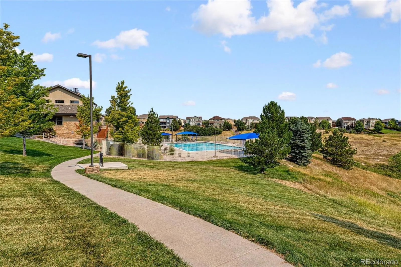 Opportunity knocks! New lower price! Make this home truly yours and find yourself in a sought-after, peaceful, quiet location in Castle Rock, but just 25 minutes to the Denver Tech Center! From the moment you step inside, you’ll find an open and inviting layout designed for both everyday living and memorable entertaining. The main level features formal living and dining rooms, an open kitchen and family room, and a main floor study or bedroom with a full bath, ideal for guests or multi-generational living. The heart of the home is the gourmet kitchen, complete with double ovens, a gas cooktop, slab granite counters, stainless steel appliances, and an oversized island with an eat-up bar. A huge walk-in pantry provides exceptional storage, while high ceilings and hardwood floors add spaciousness and elegance. Upstairs, the expansive primary suite offers a spa-like retreat with a custom walk-in closet, dual vanities, and a large soaking tub with a separate shower. Separated by the bridge walkway, three additional bedrooms and a full bath complete the upper level, providing plenty of space for family or guests. Step outside to your private backyard oasis, featuring a large, covered patio with upgraded stamped concrete, lush landscaping, a garden area, and a peaceful water feature, perfect for enjoying Colorado evenings year-round. While inside, the 2-zone HVAC provides comfort on any level, in any season. The yard also includes unique touches that make this property truly stand out. With 5 bedrooms and 3 full baths, this home offers flexibility for today’s modern lifestyle. Located in a sought-after Sapphire Pointe, residents enjoy community amenities including a pool, playground, tennis courts, and trails. With easy access to major highways and just minutes from downtown Castle Rock for your dining, shopping, and outdoor adventures. A must-see and a best value combining great spaces, style in a peaceful, quiet location!