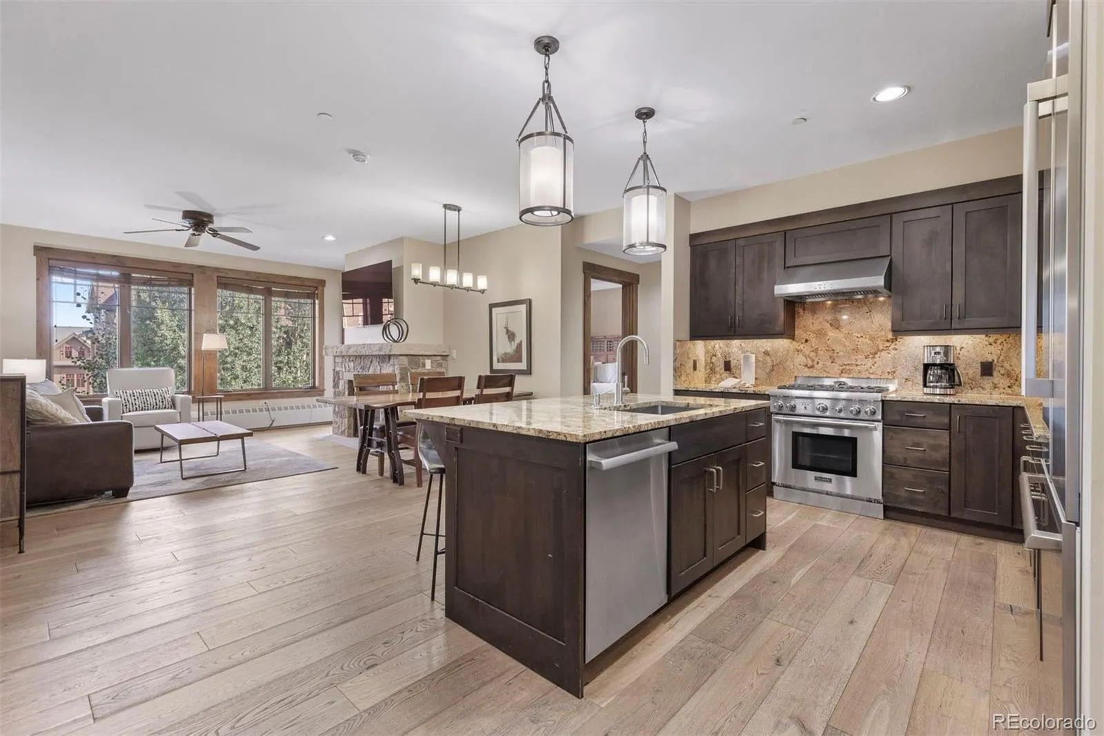 Set at the base of Peak 9 of the Breckenridge Ski Resort, in the heart of Main Street Station, this 2-bedroom, 2-bath Water House residence features an open-concept layout, warm wood floors, a cozy gas fireplace, and a chef’s kitchen with premium Thermador appliances. The primary suite includes a spa-inspired bathroom, perfect for unwinding after a day on the slopes. Additional highlights include a private ski locker, underground parking, and a secure owner’s closet.