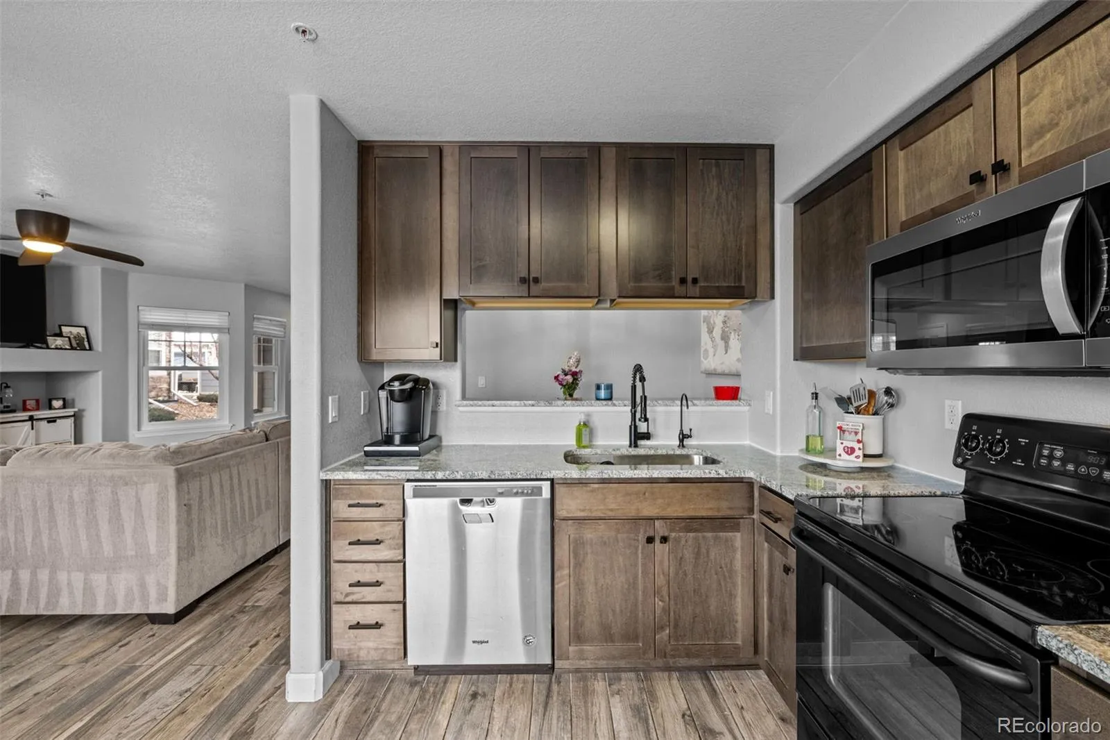 Welcome home to this gorgeous 3 bedroom townhome in the highly sought after and conveniently located Sorrel Ranch subdivision! This is one of the only units in the complex with a finished basement! Upon entering, you will be greeted with a light and bright open concept living, kitchen and dining room. The fireplace adds a cozy ambiance for those chilly winter nights! With an updated kitchen, large dining room, and fenced in patio, this living space is sure to fit all of your entertaining needs! Also on the main floor, you will find a 1/4 bath along with a 1 car attached garage and driveway for additional parking. Upstairs, you will find two bedrooms, each with their own attached bathrooms. The primary bedroom features a den space with French doors for privacy, a full bathroom and sizable walk-in closet. In the newly finished basement, you will find a full bedroom, living room space perfect for entertaining, a play room, or bar area, along with a laundry room equipped with a full-size washer and dryer. Situated near Southlands Mall, shopping, dining, and the movies are within walking distance! Sellers have an assumable FHA loan at 3.25%
