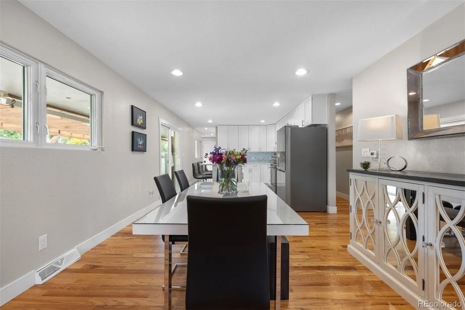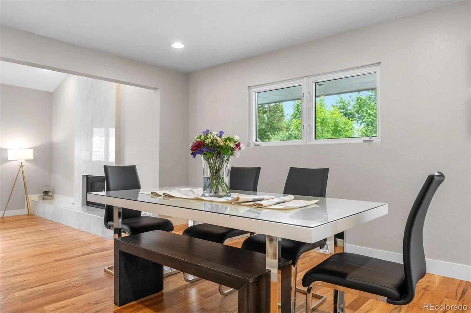 Minutes from Cherry Creek and Lowry this updated home boasts a vaulted ceiling, open concept, privacy, and convenience with 4 bedrooms, and 3 baths. Set on a ¼ acre lot, the design is simply delightful and the open concept seamlessly joins the Living, Dining, and Kitchen areas for easy living, as well as, entertaining. The living room has a vaulted ceiling is bright and spacious with a gas fireplace as the focal point. The Kitchen features a sizable island, ample storage, a gas range, and easy access to the outdoor living. The Primary Suite offers a large walk-in closet and a generously sized bath with spa-like shower. The two upper secondary bedrooms are served by a beautifully updated bath. Completing the upper level is a well-organized “mud room” area located just off the 2 car garage entry. The basement family room is large, complimented by a wet bar and beverage station, which make it the perfect place for relaxing, recreation, and entertaining. The 4th bedroom is of great size with a walk-in closet. A well designed full bath and a spacious utility/laundry room round out the basement. The rear yard is private and secluded. Brick pavers bring charm to the patio and the pergola adds just the right touch. Additional features include: hardwood flooring, newer carpet, updated light fixtures, garage storage, under stairs storage, sprinkler system, gas valve for grilling, 50 gal water heater, full privacy fencing, and more. It’s excellently located and just minutes from shopping, eateries, and schools – Schedule a private showing today!