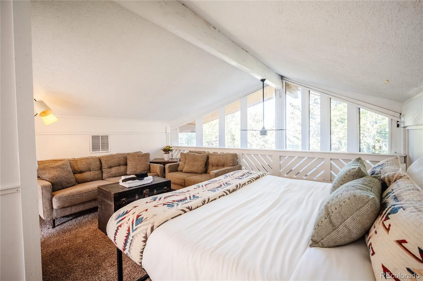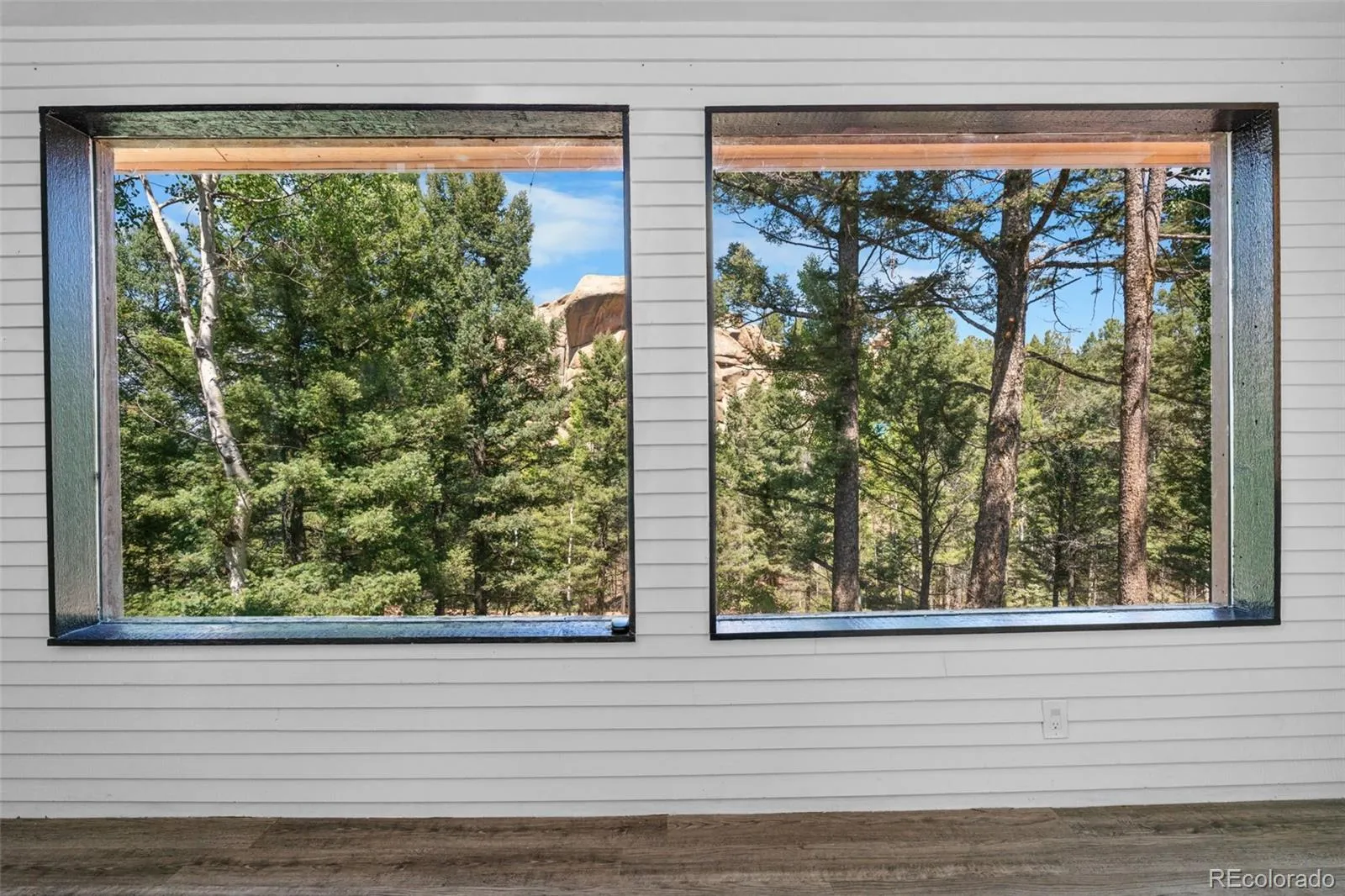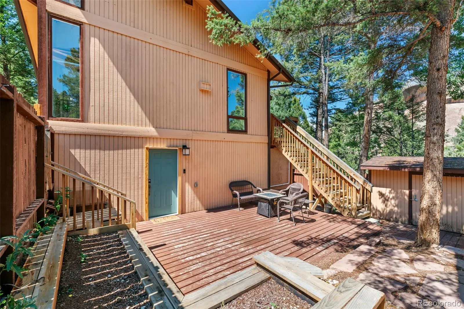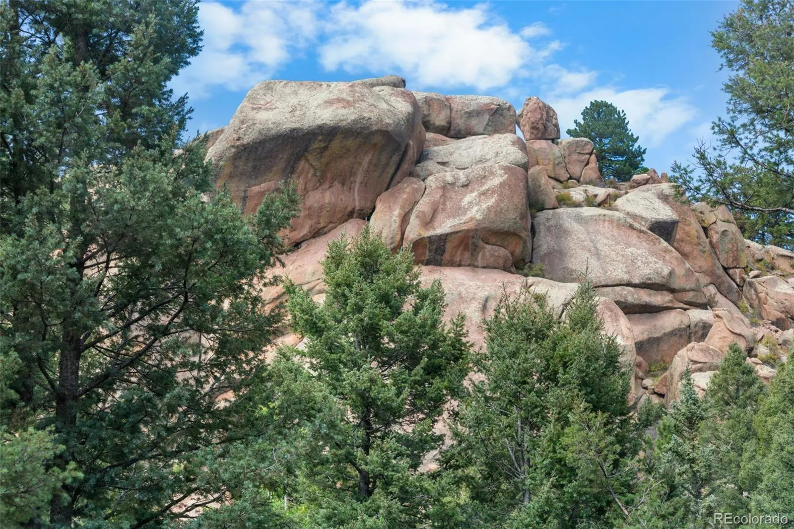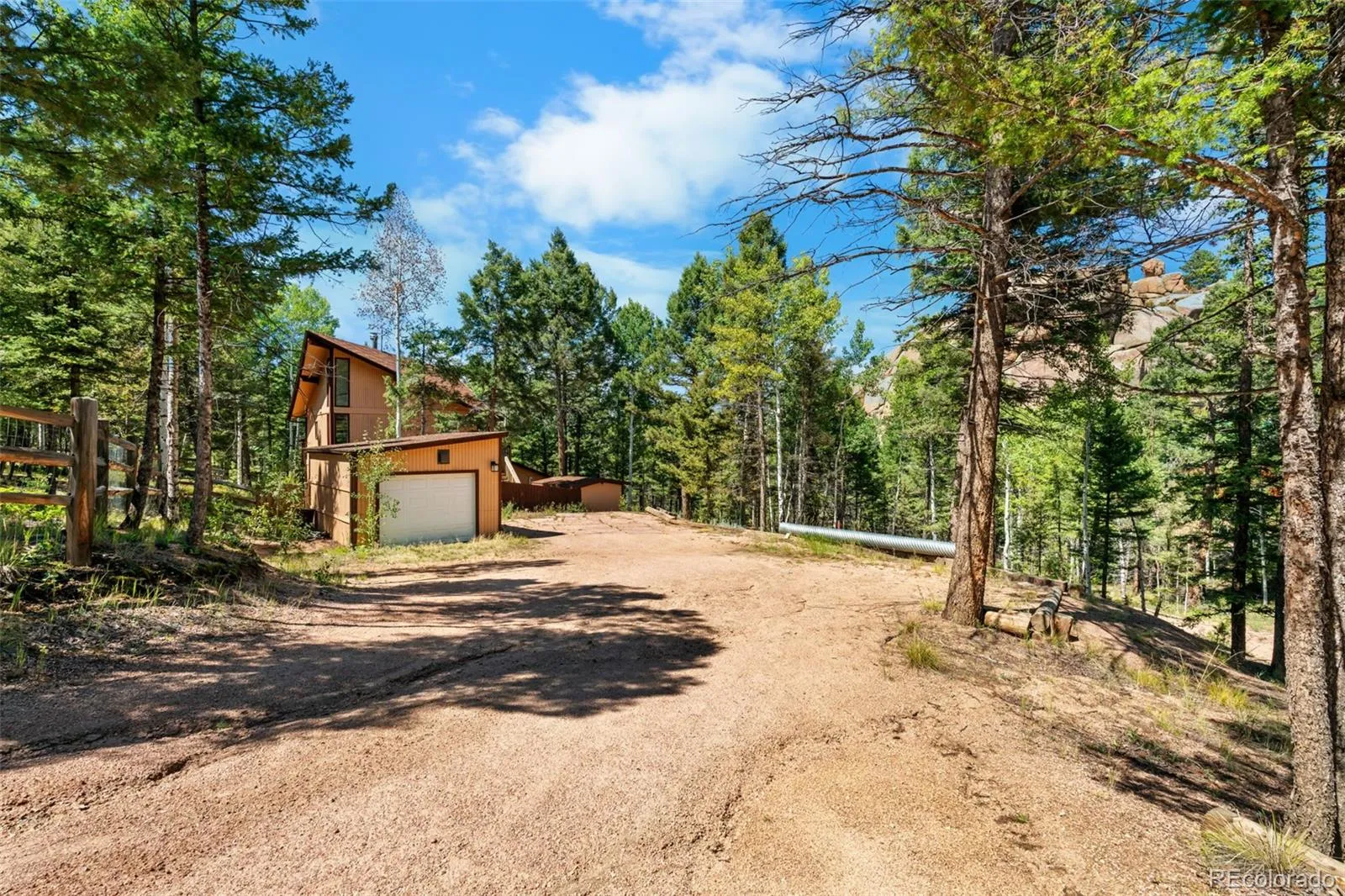 Unique mountain retreat in the heart of Florissant, sitting on a forested usable 0.94-acre lot with easy access. This 3-bed, 2-bath home combines creative architecture with modern mountain living. Soaring ceilings, expansive windows, airy loft primary bedroom, and abundant natural light mixed with natural woods, highlight the home’s design. Enjoy a live-edge breakfast bar that looks onto the deck and surrounding views. The openness through the living and dining spaces, mixed with 2 entrances to the wrap-around deck, offer a wonderful floor plan for indoor/outdoor entertaining. The ground level of the home features an entry area, expansive laundry room, 2 rec room spaces, storage, 2 light filled bedrooms, & a bathroom. On the upper level, experience the loft which is nothing less than breathtaking and spacious enough to make a bunk room or add a seating area and office space – the options are limitless. The multiple yard spaces wind through the forest and feature a courtyard, fenced yard area, and plenty of room to explore – fenced yard area connects directly to the laundry room doggy door—an ideal setup for pets, and also has multiple gates for access to the road, courtyard, and driveway for convenience while moving about the property. The home has a one-car detached garage, a large driveway with excellent parking space, and lots of flat areas to add permanent landscaping & enjoy the outdoors. Thoughtful architecture gives this home a real WOW factor. The current owners previously ran a very successful Airbnb here & the property has proven income potential for those looking for a mountain getaway that can also generate revenue. Whether you’re looking for a full-time residence, vacation retreat, or investment property, this home offers privacy, charm, central location, and stunning views – 6 minutes from downtown Florissant. $75 / Year HOA covers road plowing and annual community dumpster.