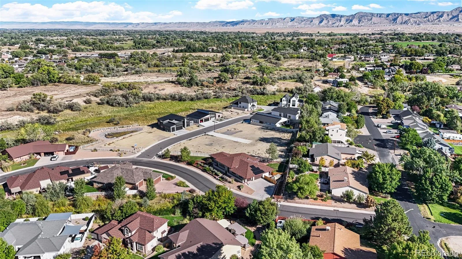 Architecturally stunning custom home inspired by Frank Lloyd Wright, showcasing soaring ceilings, warm hardwood floors, and walls of windows that flood the interior with natural light. The open-concept living room features a dramatic curved fireplace and flows seamlessly into the dining area and gourmet kitchen. The chef’s kitchen is equipped with granite counters, a gas cooktop island, pendant lighting, abundant cabinetry, and an oversized walk-in pantry—perfect for entertaining or everyday living. The luxurious primary suite offers vaulted ceilings, a dual-sided fireplace, and a spa-like bath with soaking tub, dual vanities, walk-in shower, makeup vanity, and extensive cabinetry. Two spacious en-suite bedrooms provide privacy and comfort, while a dedicated home office with French doors and a bonus suite with private entrance and bath offer incredible flexibility for guests, hobbies, or multi-generational living. Outdoors, enjoy a flagstone patio, lush fenced yard, and mature landscaping. Oversized 3-car garage with built-in storage plus gated RV/boat parking. This home combines architectural elegance with everyday comfort in one of Grand Junction’s most convenient locations—an opportunity not to be missed.