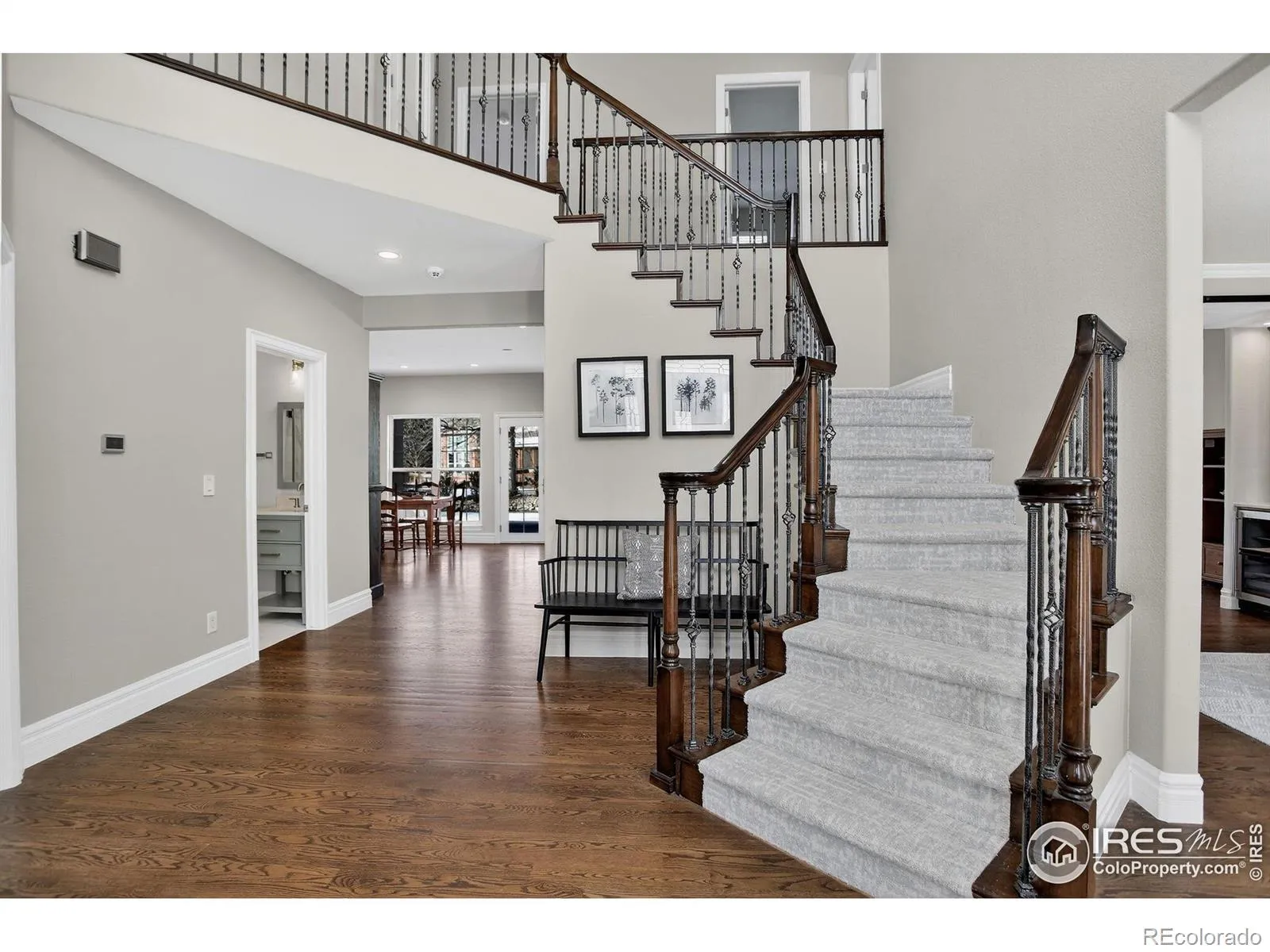 This stunning custom home embodies an unparalleled lifestyle experience showcasing nearly every amenity imaginable in this luxurious estate. Situated in the prestigious enclave of the Rainbow Ridge Estates, this impressive residence exudes ultra-comfort and prime living on one of the best streets in Longmont. With too many upgrades to list, this fine home offers a beautiful open-concept chef’s kitchen, with eye catching marble countertops, an expansive island, premium appliances, and built in pantry. The formal dining, and living rooms are separated by a beautiful glass barn door and feature updated lighting. Numerous windows throughout bathe the home in an abundance of natural light. This expansive lot with mature landscaping and a sparkling pool and spa is a backyard oasis and perfect for entertainment and relaxation. Ascend the private staircase upstairs to the secluded primary bedroom. This oversized space is highlighted by a multi-sided fireplace and sitting area that would make a great home office. You will love the spa-inspired 5 piece bathroom with soaking tub and generous walk in closet. Three secondary bedrooms all have walk-in closets and en suite bathrooms. back on the main level, there is a guest suite that would also make a great home office with patio. The lower level welcomes festivities and offers a home theater, wet bar, wine storage, and guest room with full bath. With great privacy and well-maintained lush landscaping throughout, this home presents an opulent setting in the heart of Longmont.