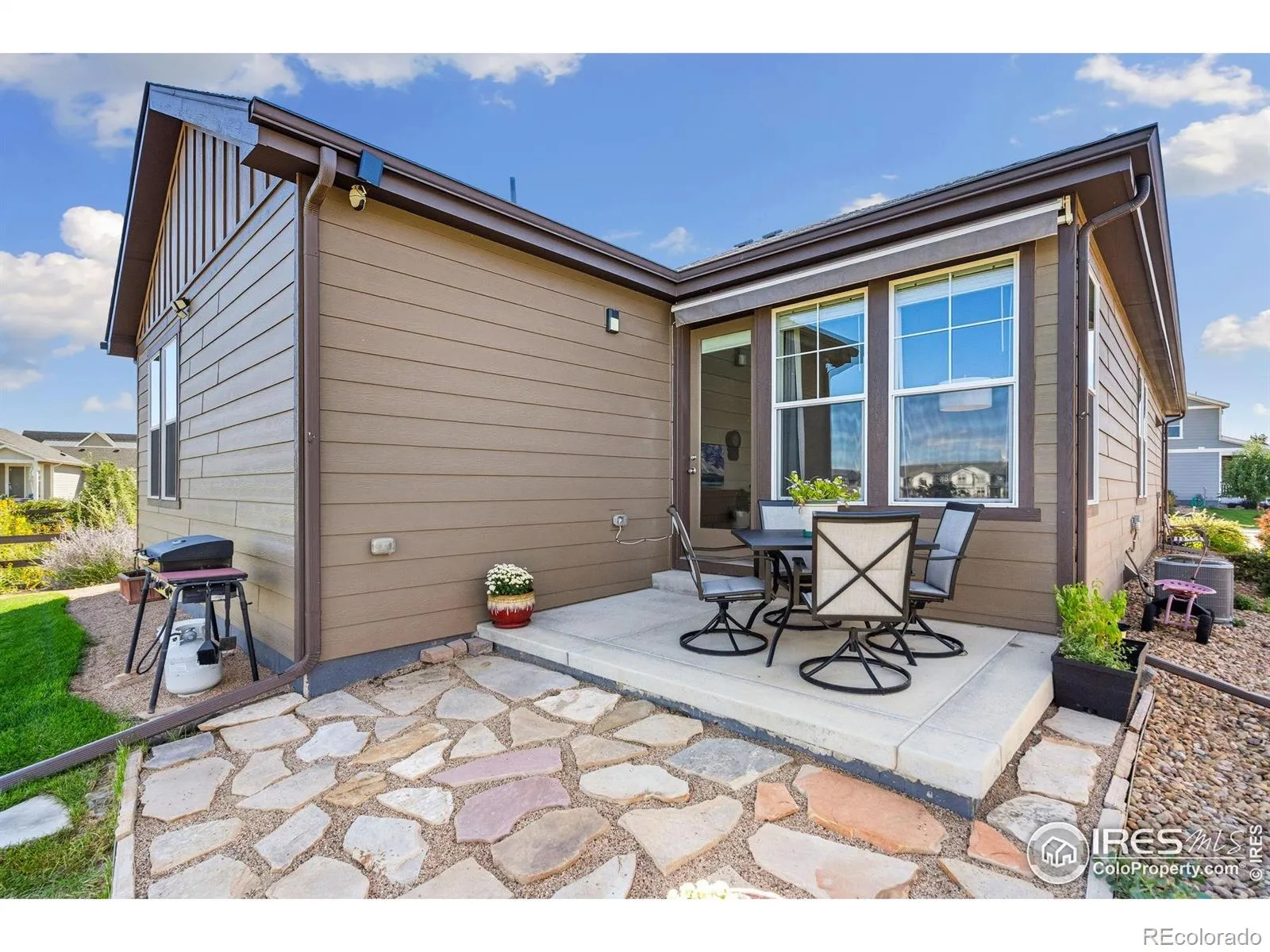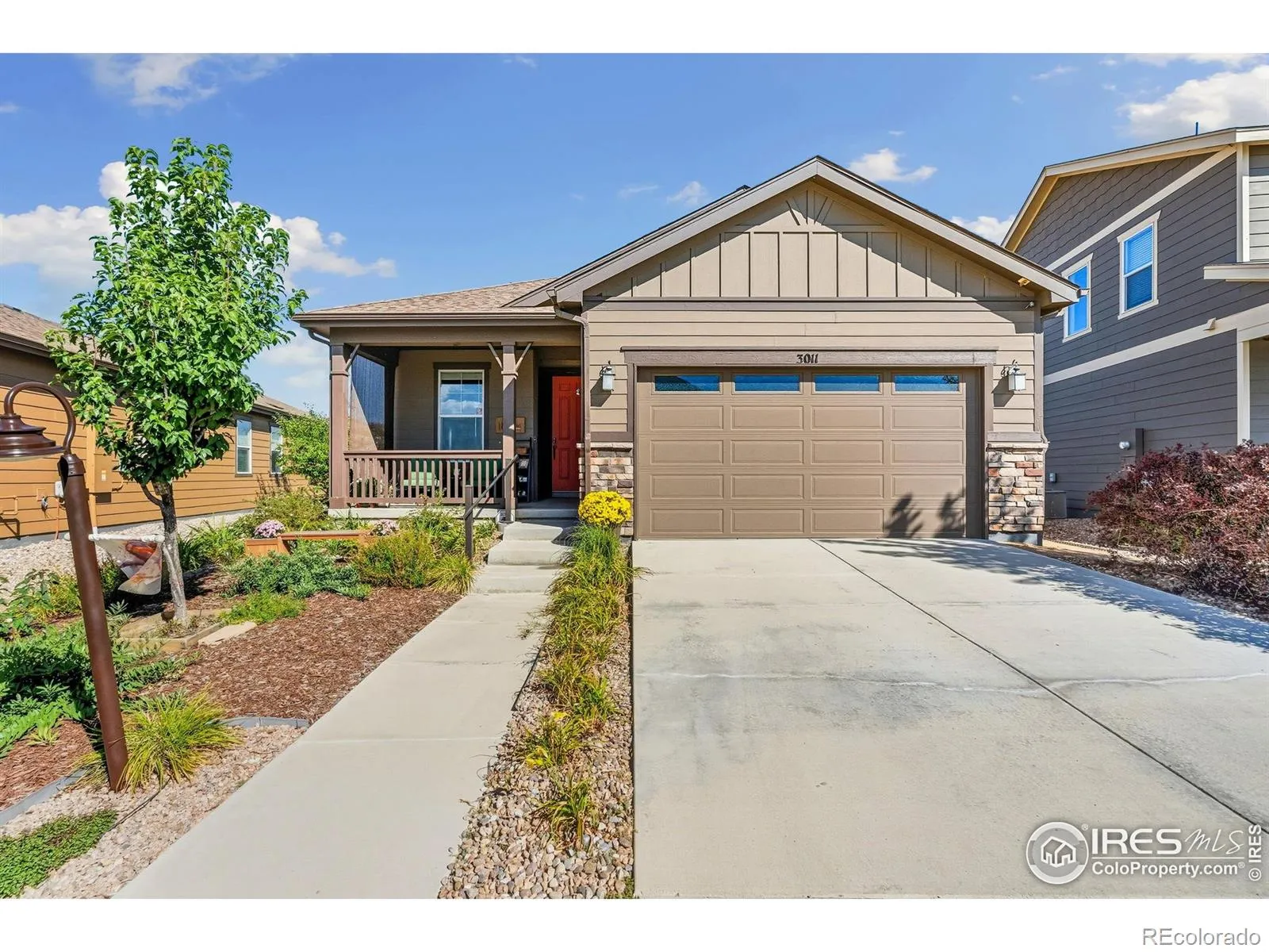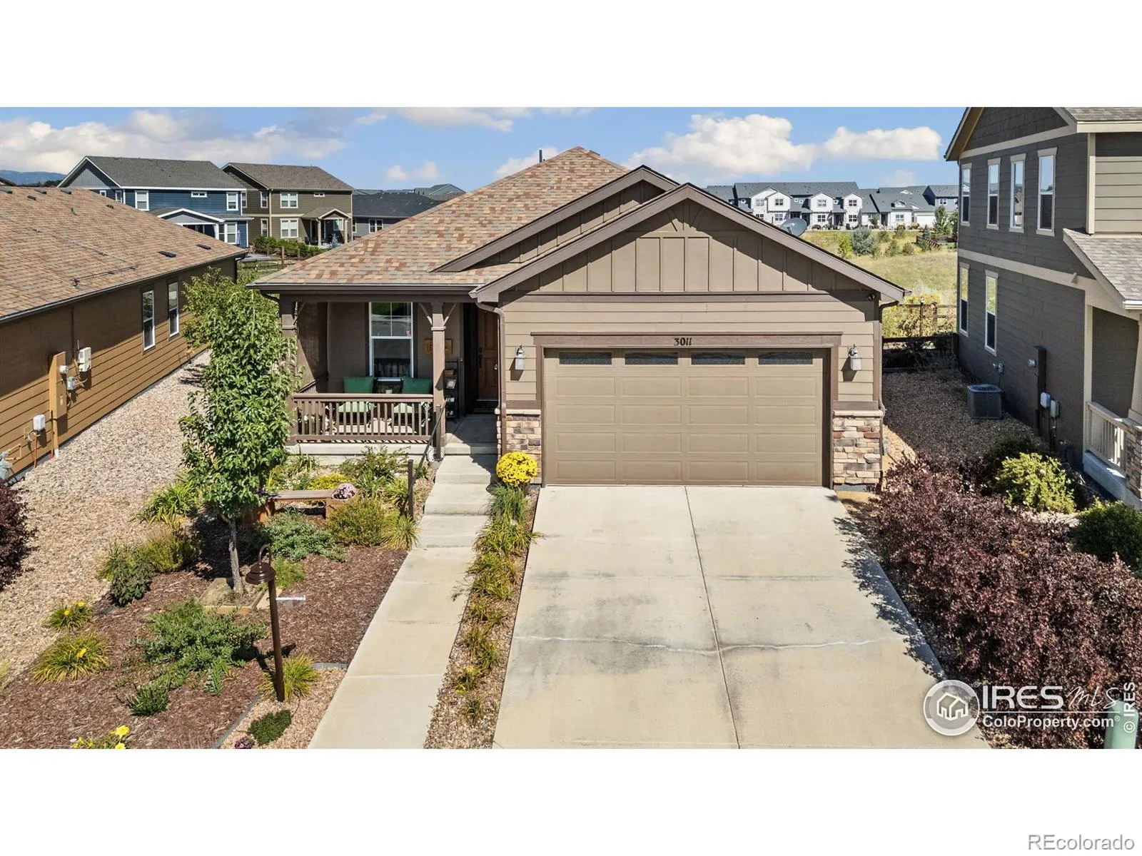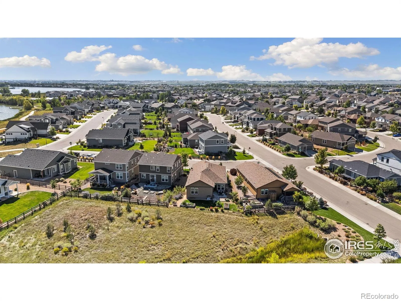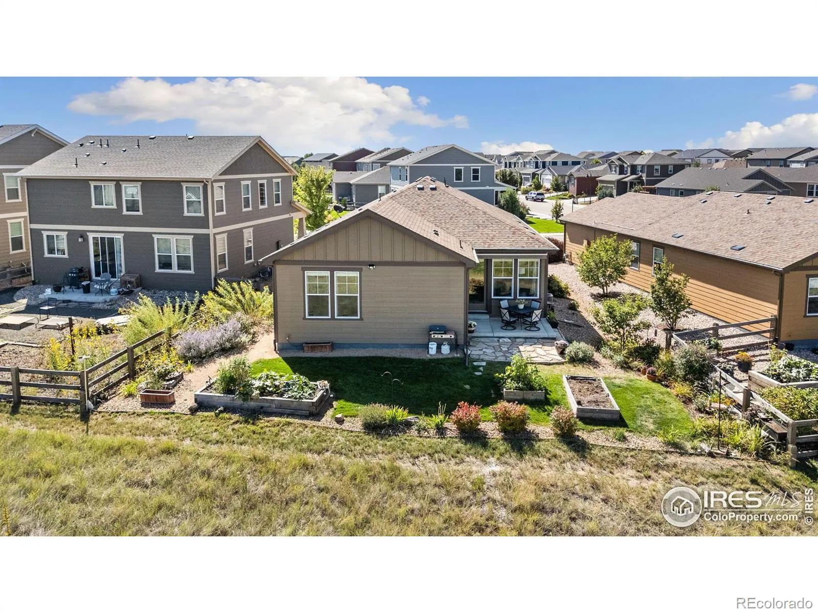 Nature right at your back door! This beautifully maintained single-level home backs to open space and sits just a stone’s throw from Houts Reservoir, offering a serene living environment with abundant outdoor activities right at your doorstep. Located in Loveland’s Lakes at Centerra neighborhood-Colorado’s only Certified Community Wildlife Habitat, you’ll enjoy hundreds of acres of open water for kayaking and fishing, along with miles of scenic trails for bird watching and tranquil walks. Inside, the 3-bedroom, 2-bath layout is open and inviting, enhanced by higher ceilings, oversized doors, and ADA-compliant spaces that provide both comfort and accessibility. The upgraded kitchen package features stainless steel appliances, gleaming granite countertops, a convenient pantry, and a breakfast bar with seating for casual dining or entertaining guests. The primary suite includes its own ensuite bathroom that has a wider door opening. Step outside to the landscaped backyard, where you’ll find a concrete patio equipped with a remote-controlled sunsetter awning, perfect for enjoying the outdoors in comfort. The raised garden beds provide an opportunity for gardening enthusiasts to cultivate their own plants. The extended 2-car garage not only fits vehicles with ease but also provides additional storage space for gear, tools, or hobbies. Perfectly situated, this home offers peaceful surroundings while keeping you close to shopping, dining, and Loveland’s best amenities, all within Centerra’s beautiful setting.