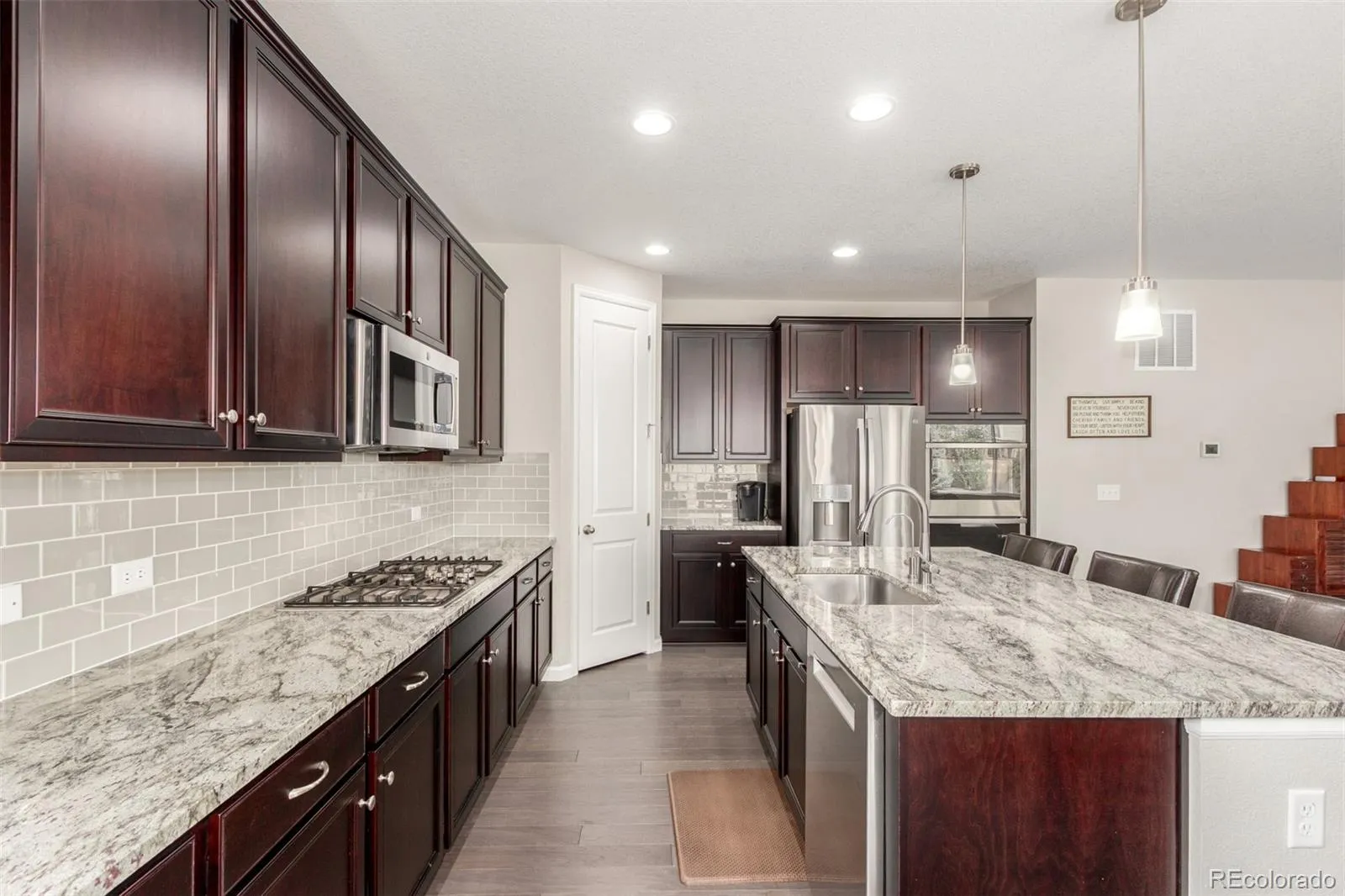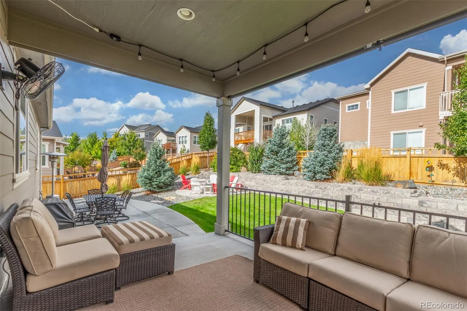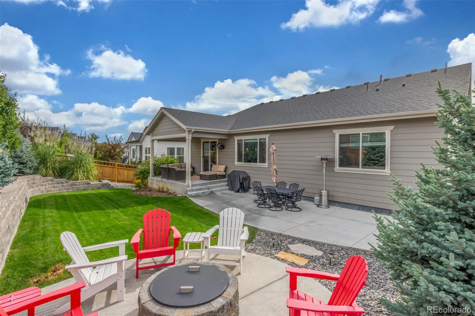 Enjoy Colorado living at its finest in the private backyard oasis, complete with an extended covered patio and cozy gas fire pit—ideal for morning coffee or evening gatherings.