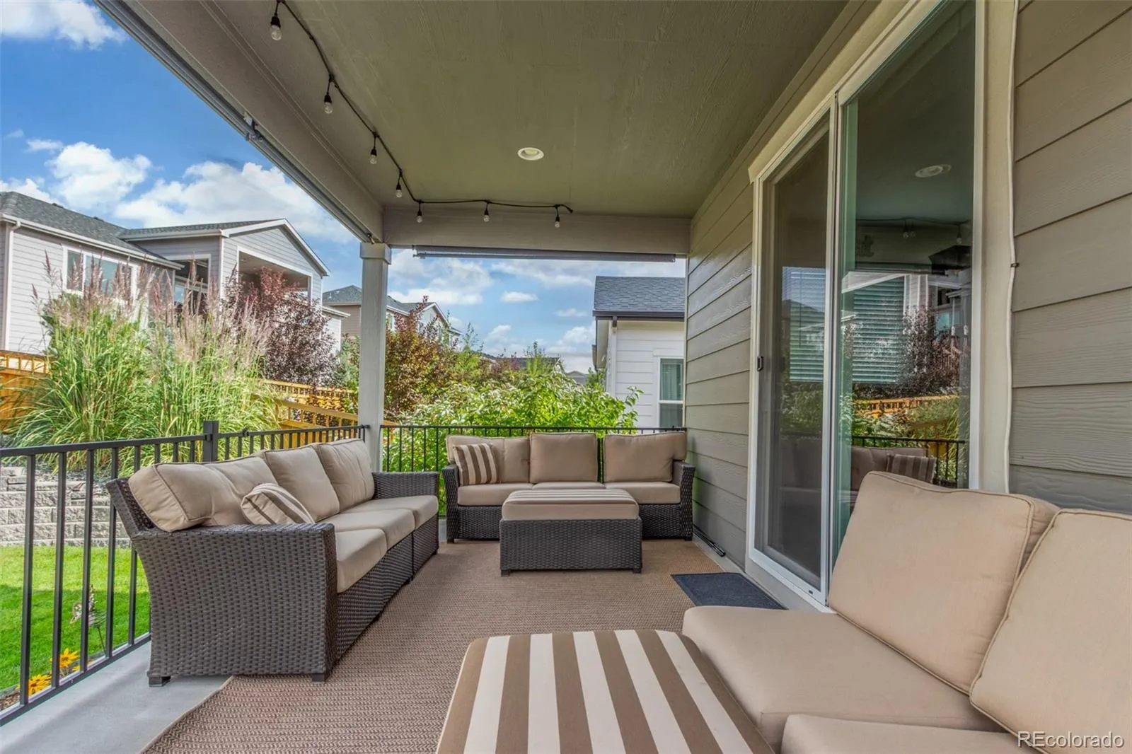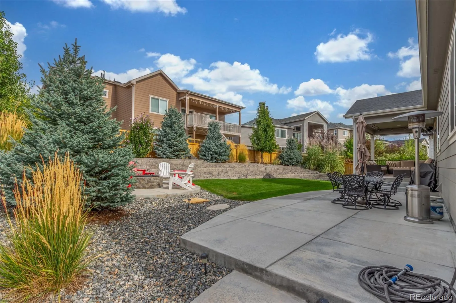 Enjoy Colorado living at its finest in the private backyard oasis, complete with an extended covered patio and cozy gas fire pit—ideal for morning coffee or evening gatherings.