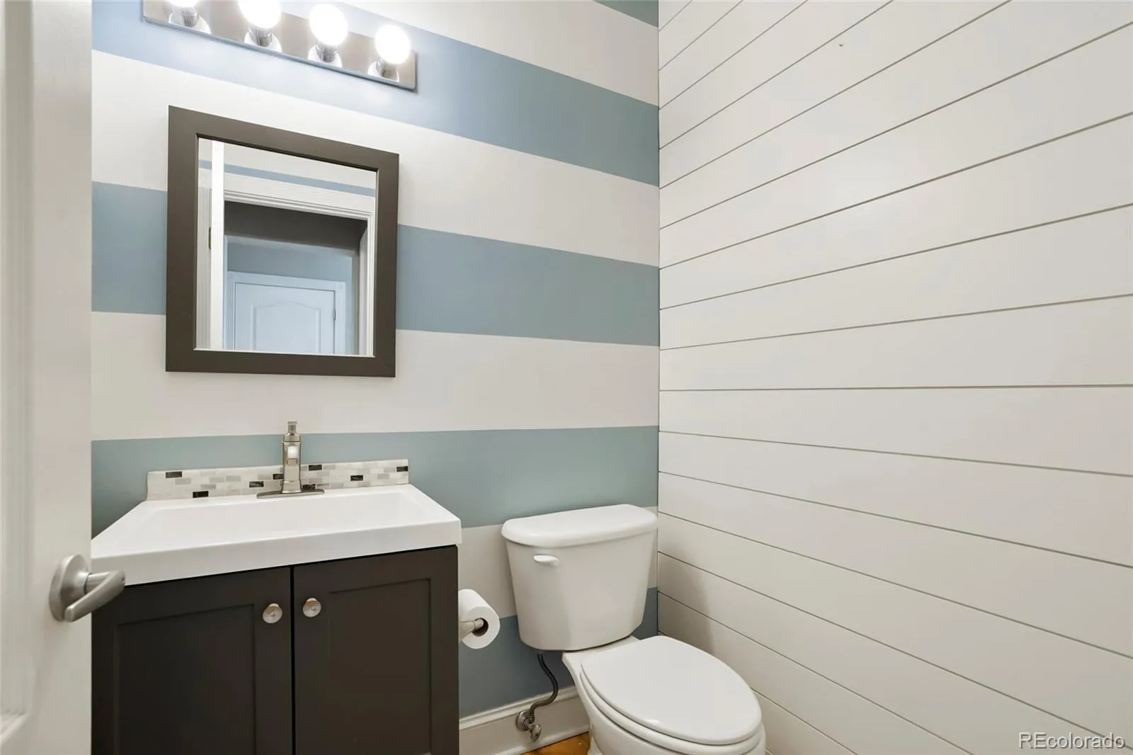 finishing touch. Additional highlights include an updated powder room with a charming shiplap accent wall, a convenient