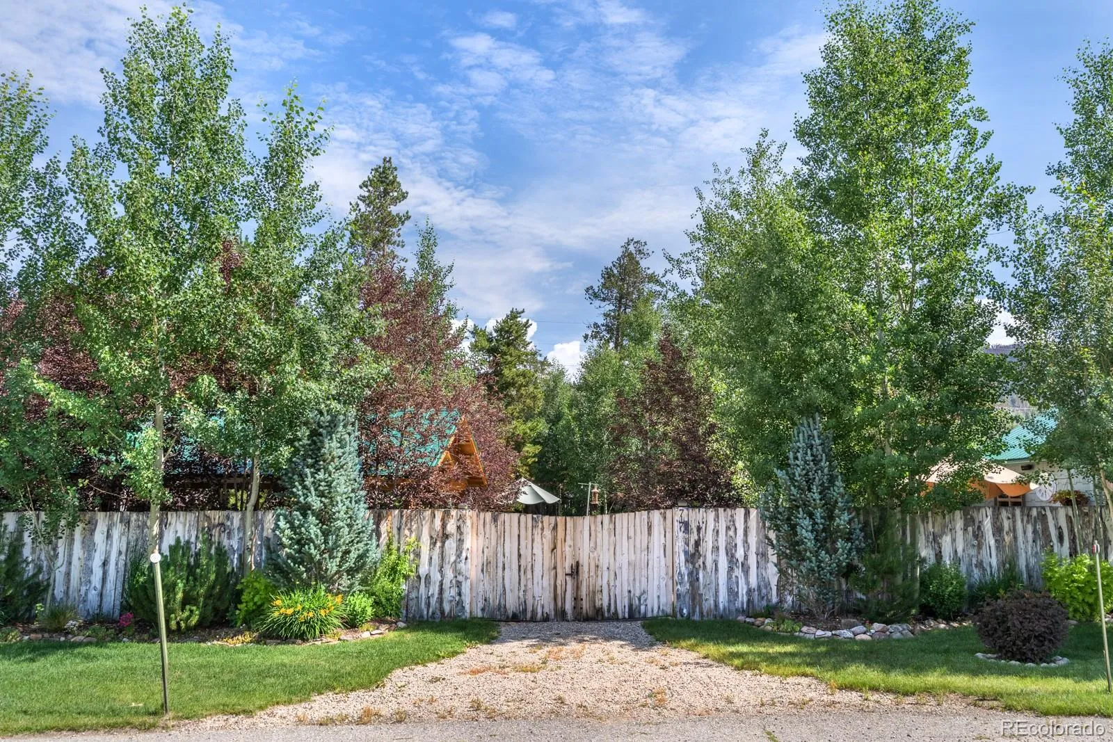 Only a special few have been invited inside the gate over the years and the tall privacy fence preserves the magic. South-facing mountain hideaway surrounded by a true privacy fence with fairy lights for nighttime, a roaring fireplace for cool evenings, plus nooks and room for fountains in different hidden areas of the enchanting garden. You back up to the properties along Grand Lake’s popular Boardwalk. You are on a quiet road, yet only a few minutes’ walk to restaurants, theater, shopping and the beach! Lake accesses to Grand Lake are a block and a half away in 2 directions. This cozy cabin is adorable, year round. The living room opens to the largest of the porches, all inside the privacy fence. This room with attractive wood finishes has the dining area in one corner, just off the kitchen. The 2 lots are extra deep – each 50 x 150. Nightly rentals are permitted. This would be an incredible venue for garden tours, weddings, family celebrations… Lots 12 & 13, Block 19 #717 Lake Avenue $768,000