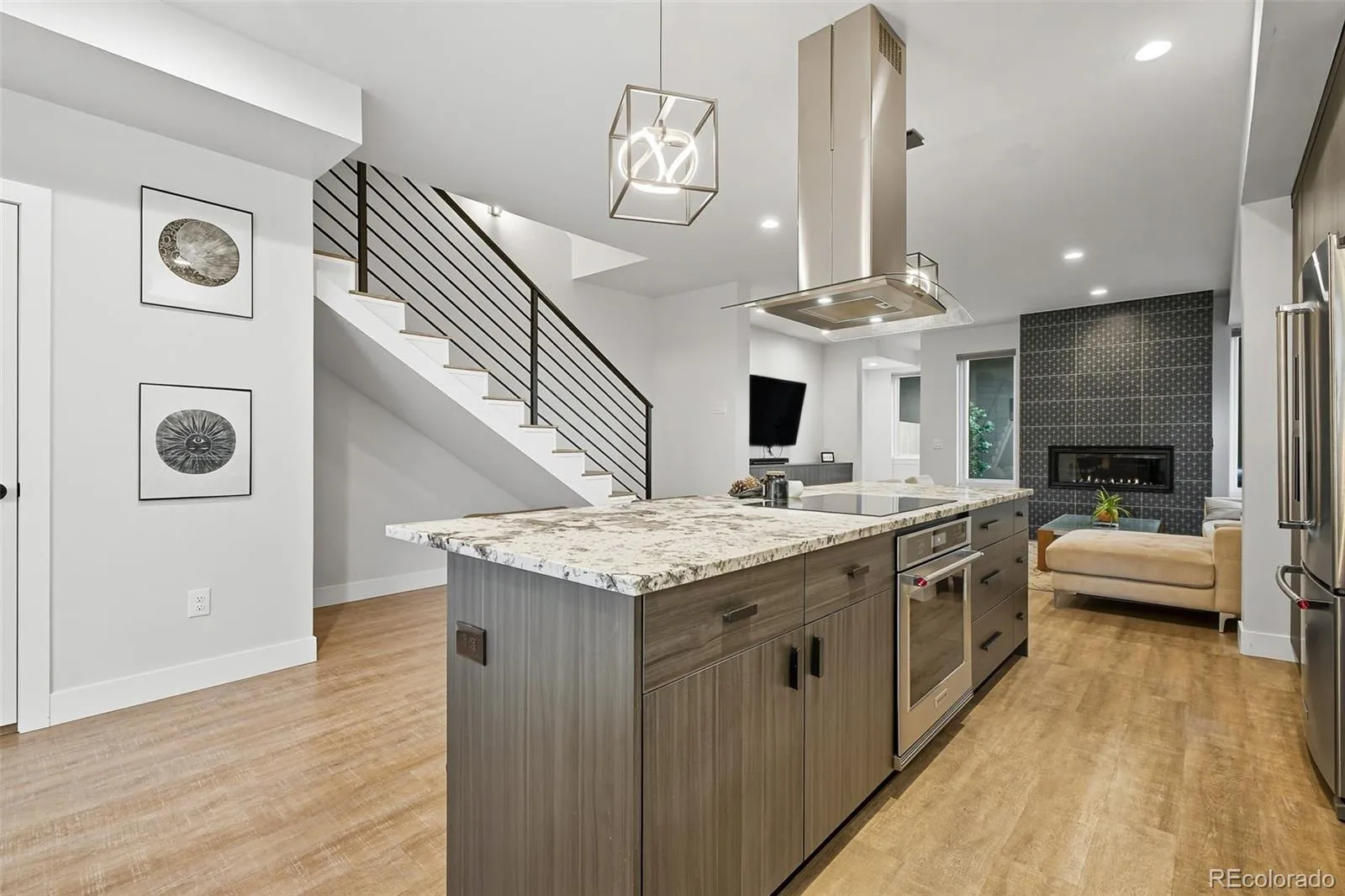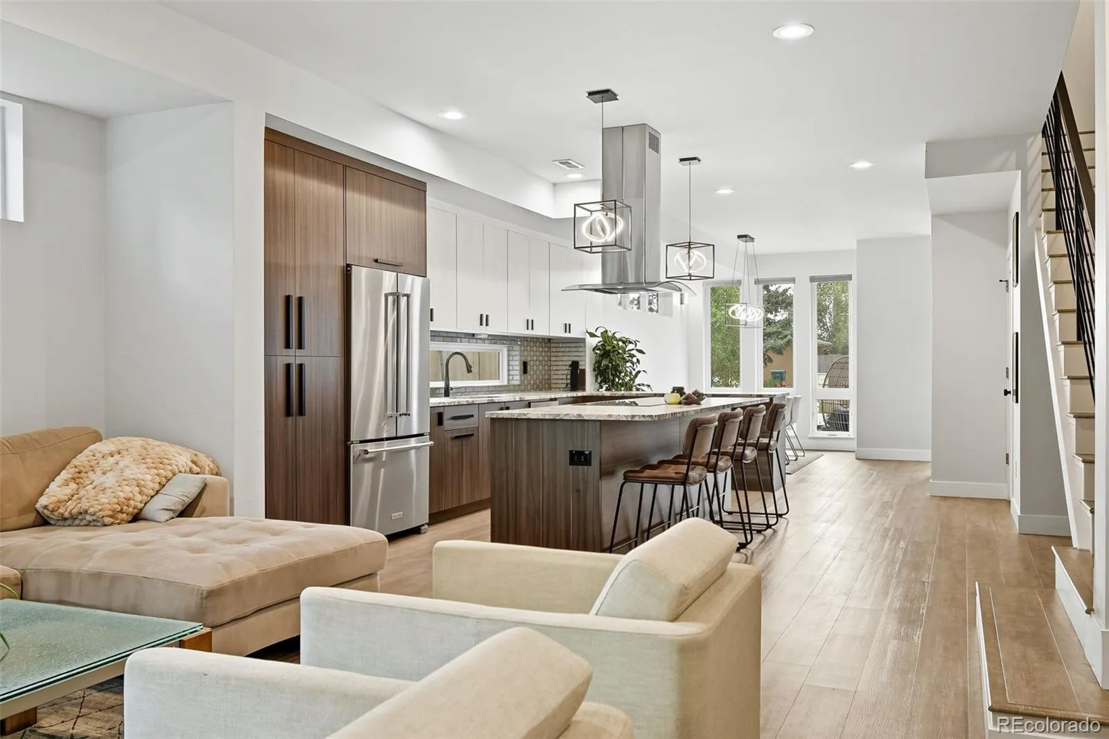 The third floor provides a private retreat with loft space ideal for an office or gym, a guest suite with full bath, and access to the expansive rooftop deck—complete with a private viewing deck for sunsets and mountain vistas from Pikes Peak to the flatirons of Boulder. .