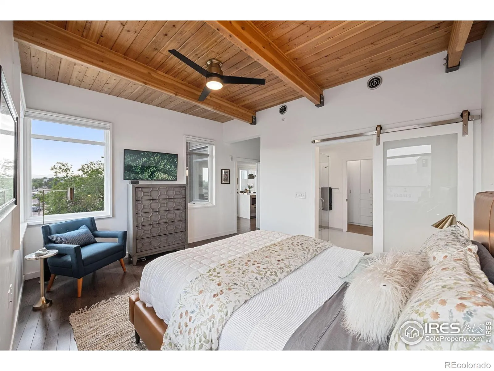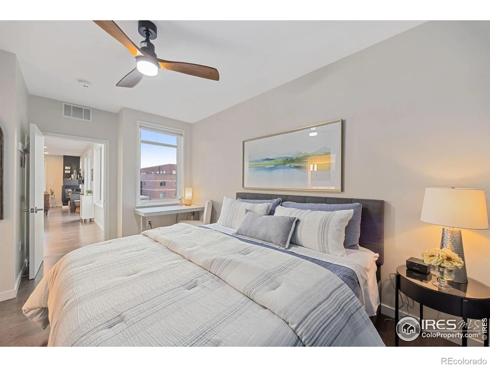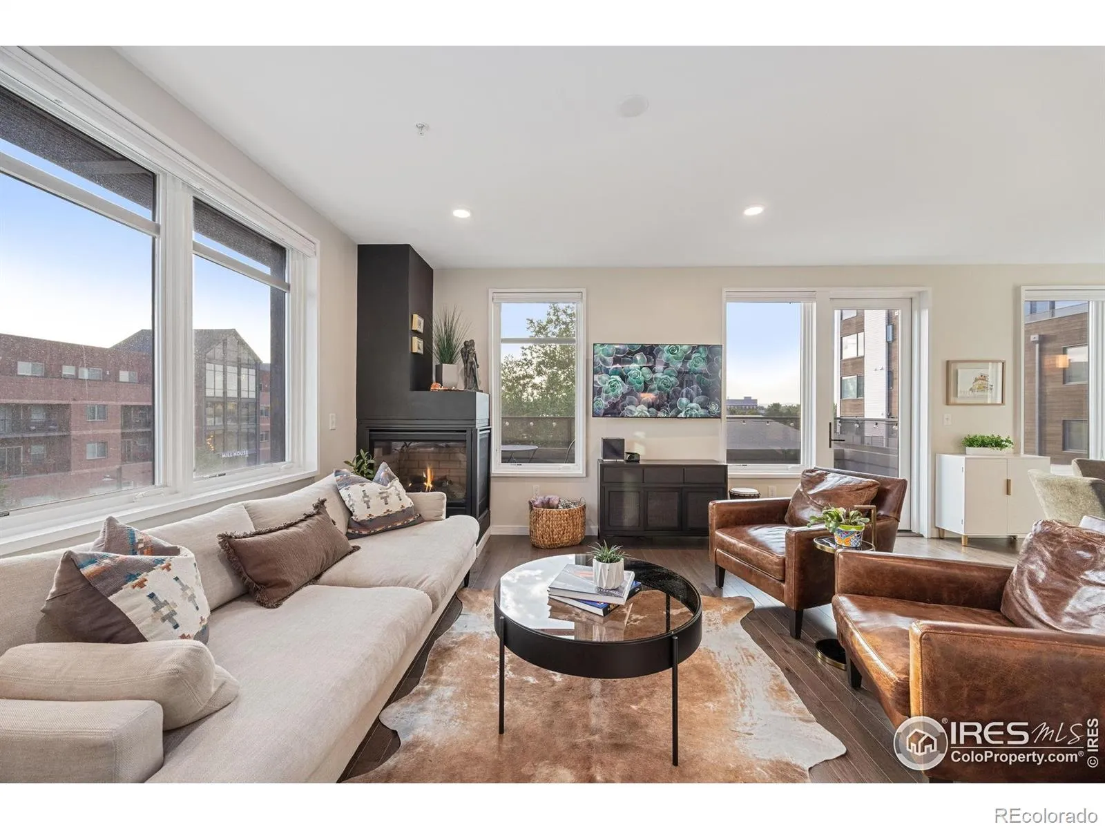 Discover the perfect blend of luxury and lifestyle in this exclusive southwest-corner condo at Confluence with sweeping views of the front range mountains. Offering 2 bedrooms, 2.5 bathrooms, and a premium parking space in the secure garage and elevator access. This open, light-filled design showcases hardwood floors, quartz countertops with a dramatic waterfall edge, stainless-steel appliances, automatic window shades, and high-end finishes throughout. The primary suite impresses with warm wood ceilings, custom walk-in closet, and a spacious bath with dual vanity. A second bedroom, set apart for added privacy features its own bath and a custom closet. Thoughtful upgrades continue with a well-appointed, custom laundry room, complete with built-in storage and a pantry. A private patio extends the living space with views of the front range and the plaza-perfect for morning coffee or evening sunsets. Confluence residents enjoy unmatched amenities: a rooftop patio with panoramic views, firepit lounge, secure entry, underground parking, private storage, dog wash, and bike storage, with additional owner parking nearby. Step outside and embrace the vibrant River District lifestyle, unwind at Woodhouse Spa, sample local breweries and restaurants, or ride along the Poudre River Trail. This is Fort Collins living at its finest-modern, convenient, and truly unforgettable. Selling as Turnkey is possible. Additional Reserve Parking spaces for Confluence owners nearby. Owner is a licensed Realtor in Colorado.