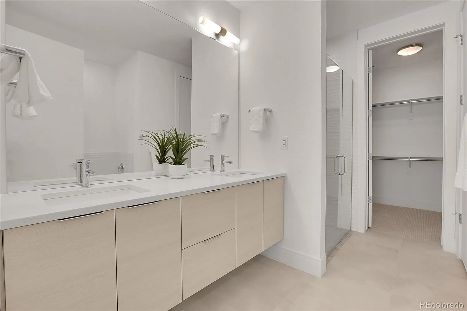 The private suite exudes a calm, retreat-like atmosphere with a spa-inspired bath featuring double vanities, a curbless shower, and a generous walk-in closet. A second en-suite bedroom offers comfort and privacy, while the rooftop deck—with gas, water, and electric hookups—provides an elevated setting for taking in dramatic skyline and mountain views.