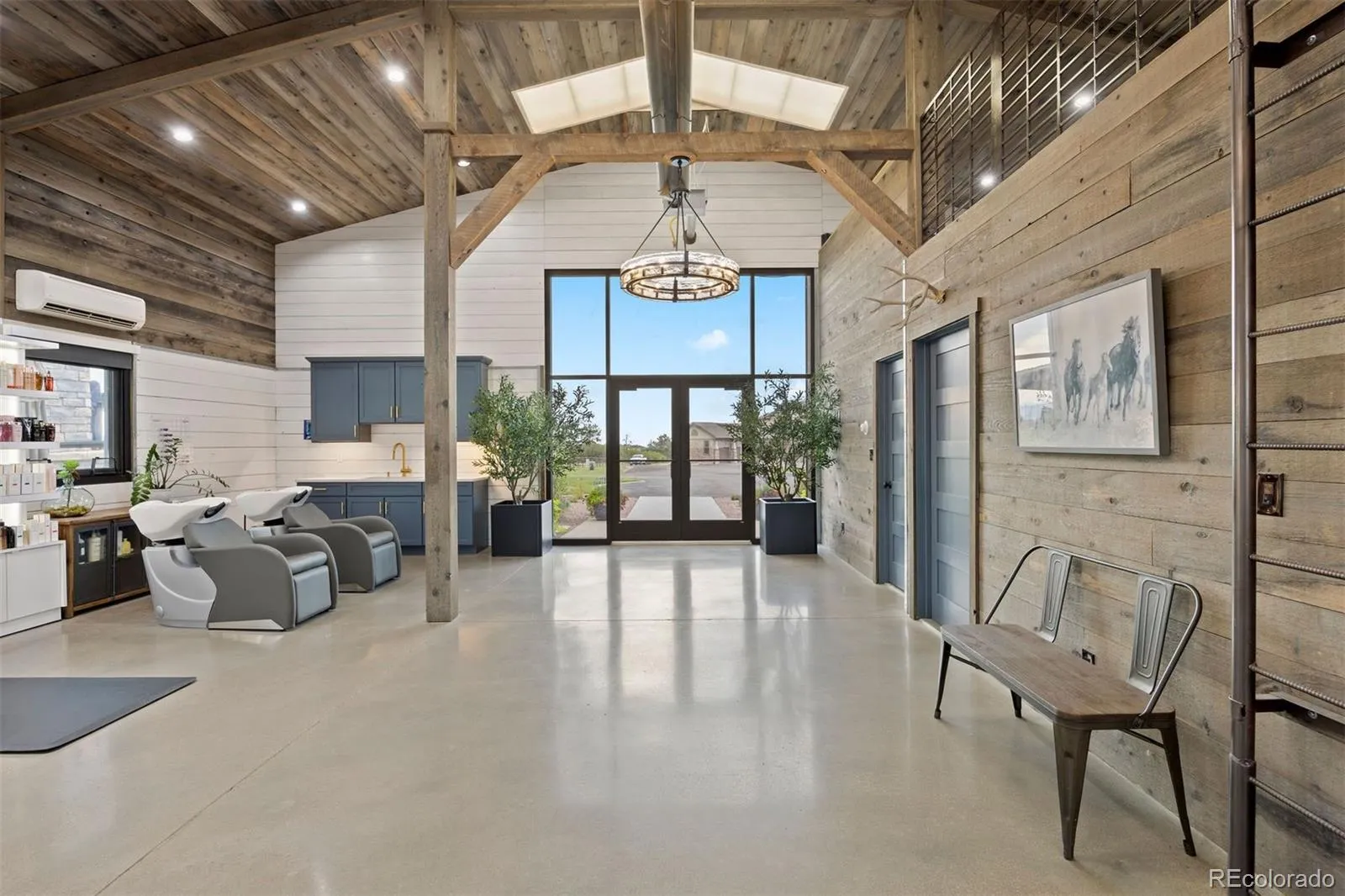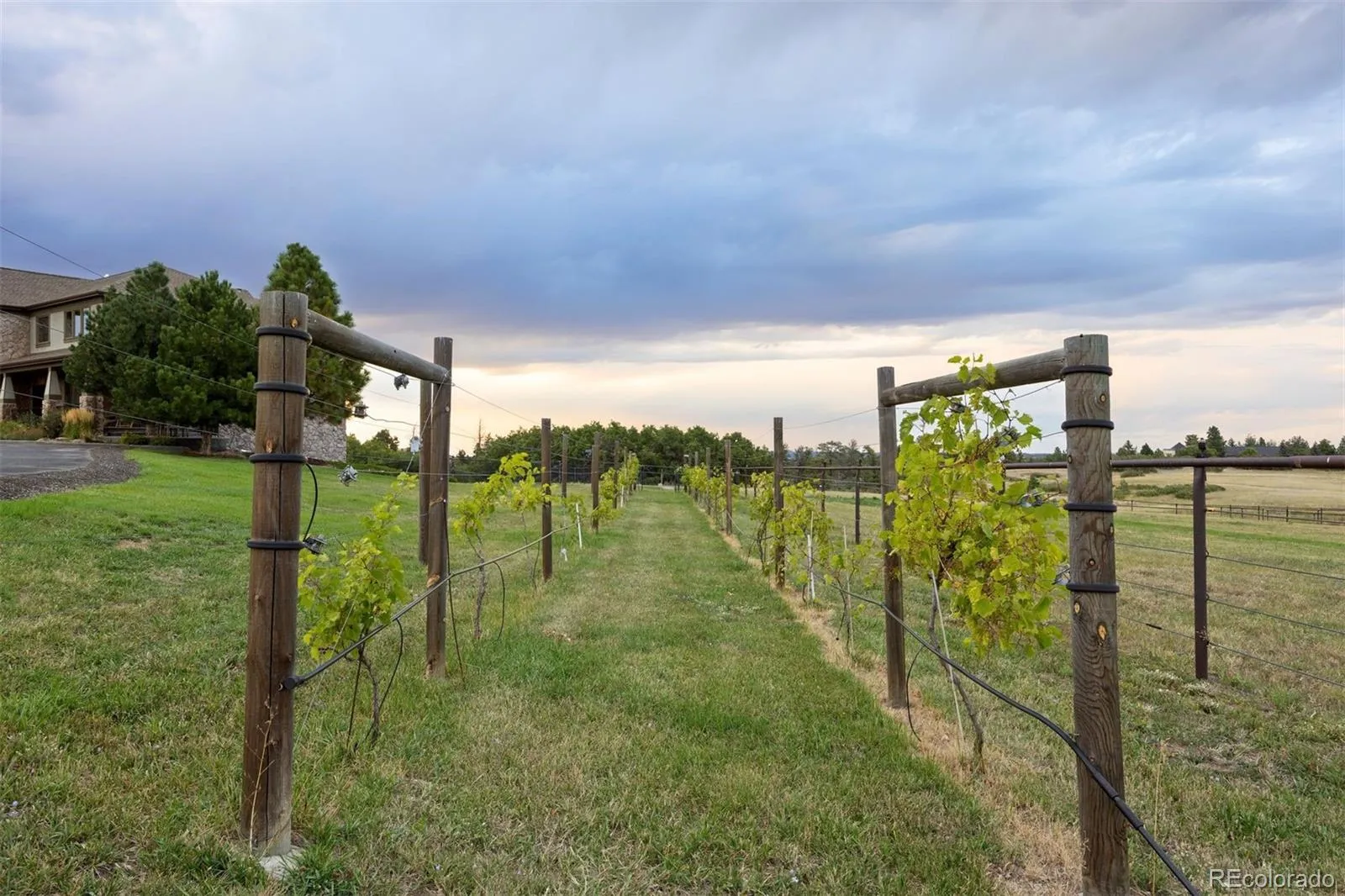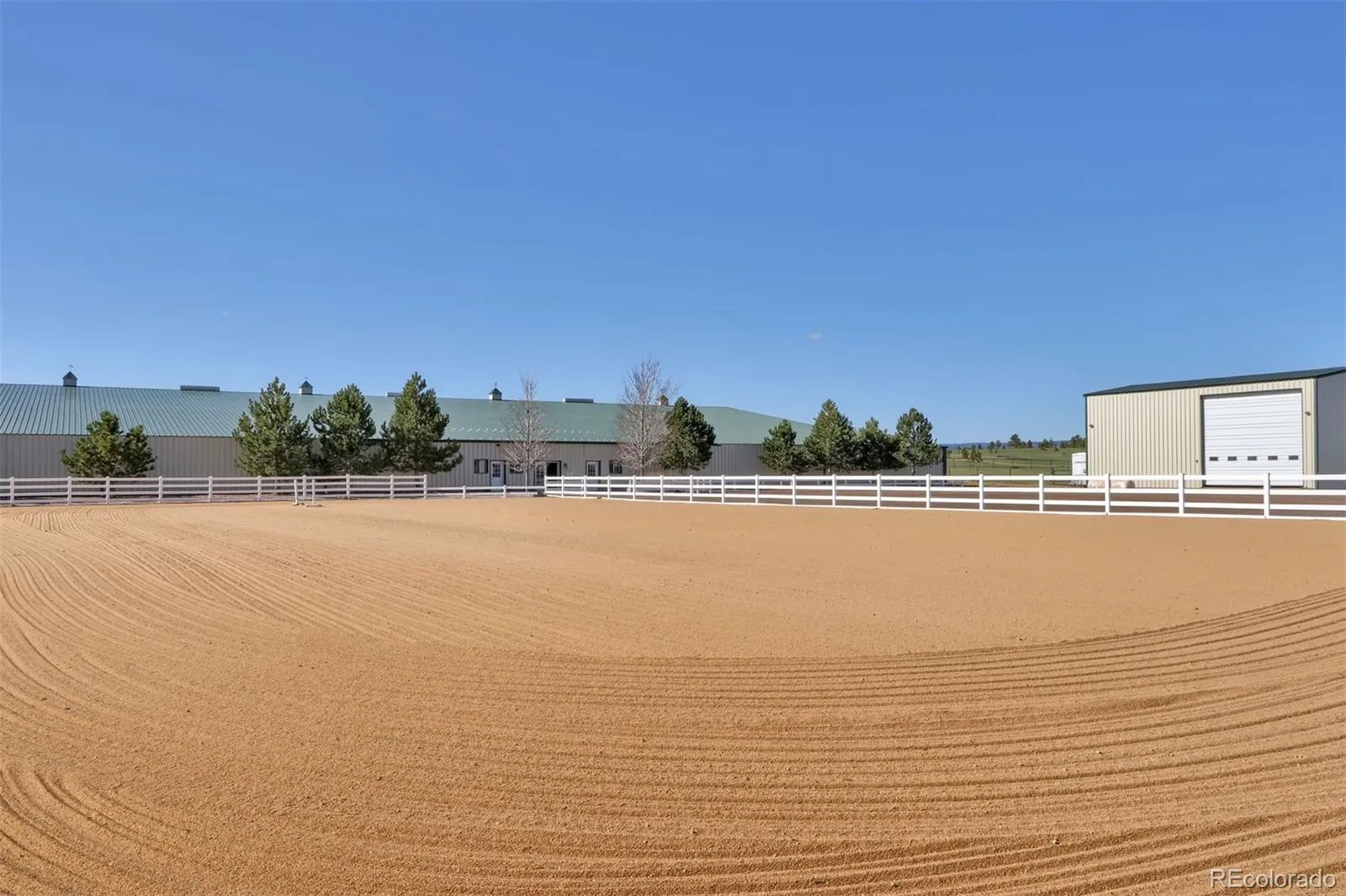 Nestled in the heart of Douglas County, you’ll find an exquisite equestrian estate that spans a breathtaking 35 acres. From every corner of the property, the panoramic front range views are nothing short of spectacular. Adding to its allure, the estate is bordered by 8,800 additional acres of conservation land to the south, creating a vast expanse of natural beauty and privacy! This unique farm-to-table living experience includes a variety of charming features such as chickens, cows, lush gardens, and a vineyard. The main house is a showcase of luxury and comfort. Includes 6 bedrooms and 8 baths in 7,063 finished square feet. For guests or ranch hands, there’s a fully equipped 900 sq ft apartment in the lower level walkout. Throughout the home, designer upgrades abound. The main living area features wide plank French Oak floors finished with hard wax oil for durability, and fresh paint throughout. The estate includes two primary bedroom suites one on the main floor and one upstairs, two spacious family rooms, and a 4-car garage. Equestrian enthusiasts will appreciate the immaculate Olympic size indoor arena (110′ x 225′), connected to a 22-stall barn complete with radiant heat flooring. The barn also has an outdoor arena, automated water systems, tack room, office, and a viewing lounge that overlooks the indoor arena, along with two bathrooms. The property also boasts an additional 1,600 sq. ft. 6-stall barn that has been renovated and creatively repurposed into a chic 2-chair hair salon. This space includes a cozy bedroom, a 3/4 bath, a loft bedroom, a kitchen w/ dining space, a bar/lounge with fireplace, + access to an outdoor seating area with large fireplace. The estate is equipped with a commercial well and has adjudicated water rights, ensuring a reliable and sustainable water supply. Whether for personal enjoyment or professional endeavors, this Douglas County estate offers an unparalleled blend of luxury, functionality, flexibility and natural beauty.