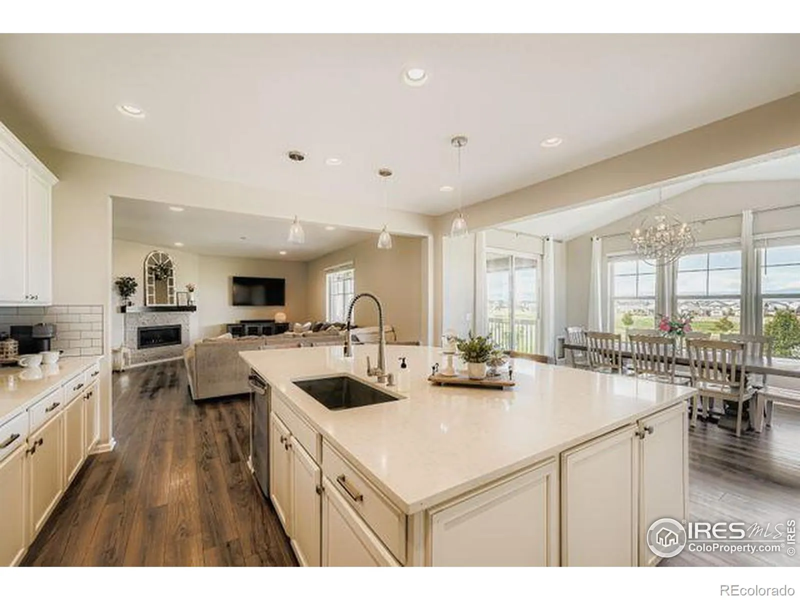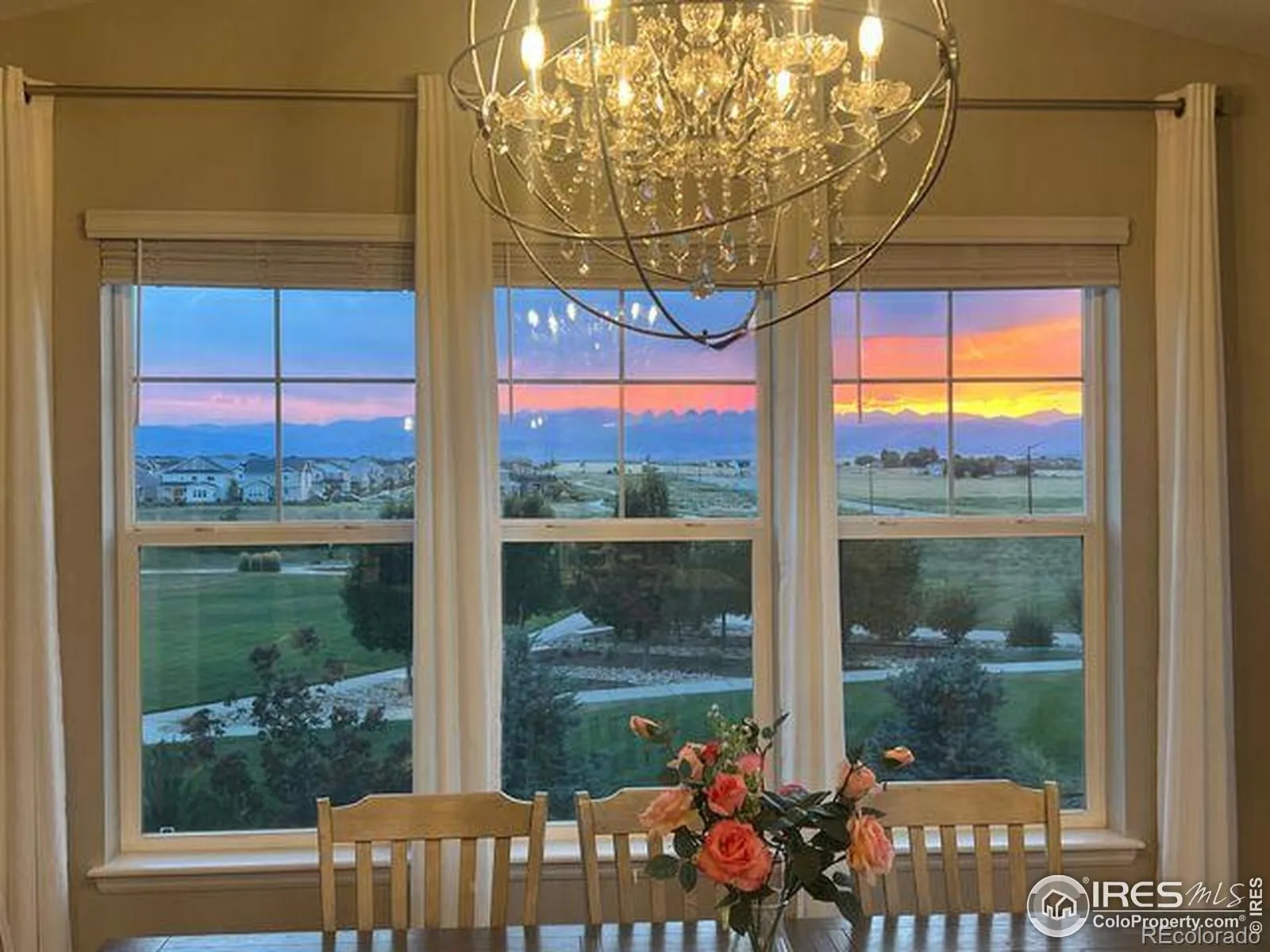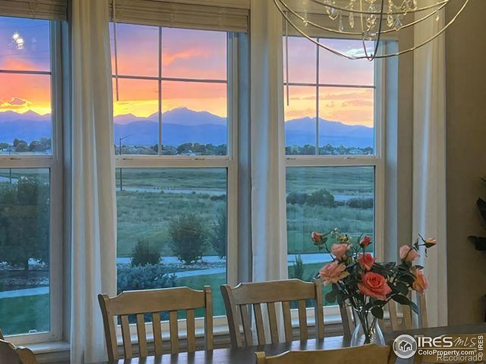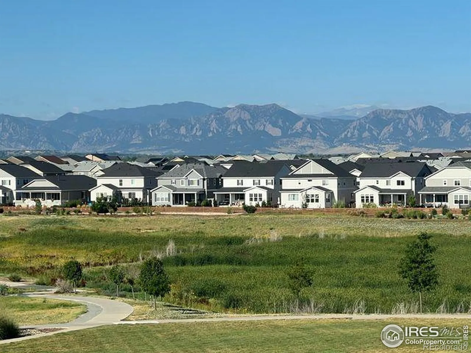 SHOWSTOPPER! Sophistication, Luxury and UNFORGETTABLE BREATHTAKING MOUNTAIN VIEWS! THIS IS THE STANDOUT “MOUNTAIN VIEW” HOME OF ALL HOMES! Perfectly positioned, this home backs to EXPANSIVE OPEN SPACE, LUSH GREENBELTS & SCENIC TRAILS. It commands unobstructed sweeping panoramas of the majestic Rocky Mountains-setting it apart from anything else! Soaring windows flood the interior w/natural light & frame jaw-dropping views like living artwork. You will love the seamless harmony between indoor/outdoor living. Spanning over 4,000 Sqft, this beauty showcases premium finishes, thoughtful design & elevated details at every turn. The main level features a gracious family room w/sleek fireplace & an interchangeable sun-filled dining/living/office space area. Rich walnut designer floors gleam beneath refined lighting, complemented by custom window treatments & upgraded handrails that elevate the home’s style. At the heart of the home, the chef’s kitchen combines style & function w/crisp white shaker cabinetry, subway tile, quartz counters, a sensational expansive center island, decorator lights, pantry & high-end stainless appliances-including gas cooktop, dual oven/microwave & stylish vent hood. Step outside to the spacious covered deck & private backyard oasis-perfect for entertaining. Host unforgettable summer bbq’s beneath the stars or unwind in the hot tub, surrounded by lush greenery, a large fenced yard & sweeping views with radiant pink/orange sunsets. Upstairs you will love the HUGE LOFT & 4 beds including a serene primary suite that captures breathtaking mountain views right from your bed. The spa-inspired en-suite bath has dual vanities, an OVERSIZED glass shower & walk-in closet. The FINISHED WALK-OUT LOWER LEVEL, accessed by an open stairwell, extends the living space w/a spacious room & a guest suite w/bath. Attached 3-car garage. Unbeatable location-steps to clubhouse, 2 pools, gym, parks, trails, playgrounds & near the new Erie Community Center & schools.