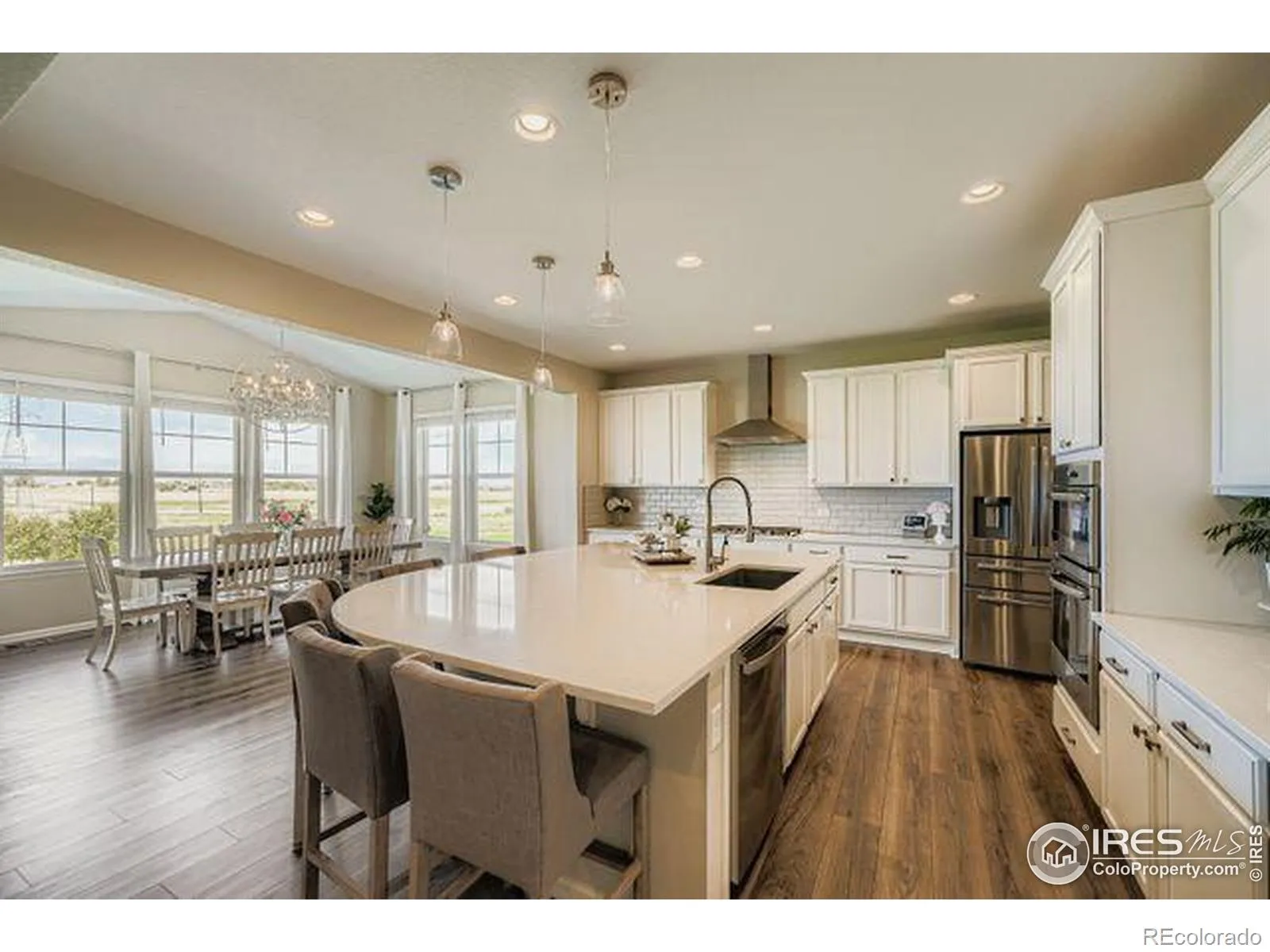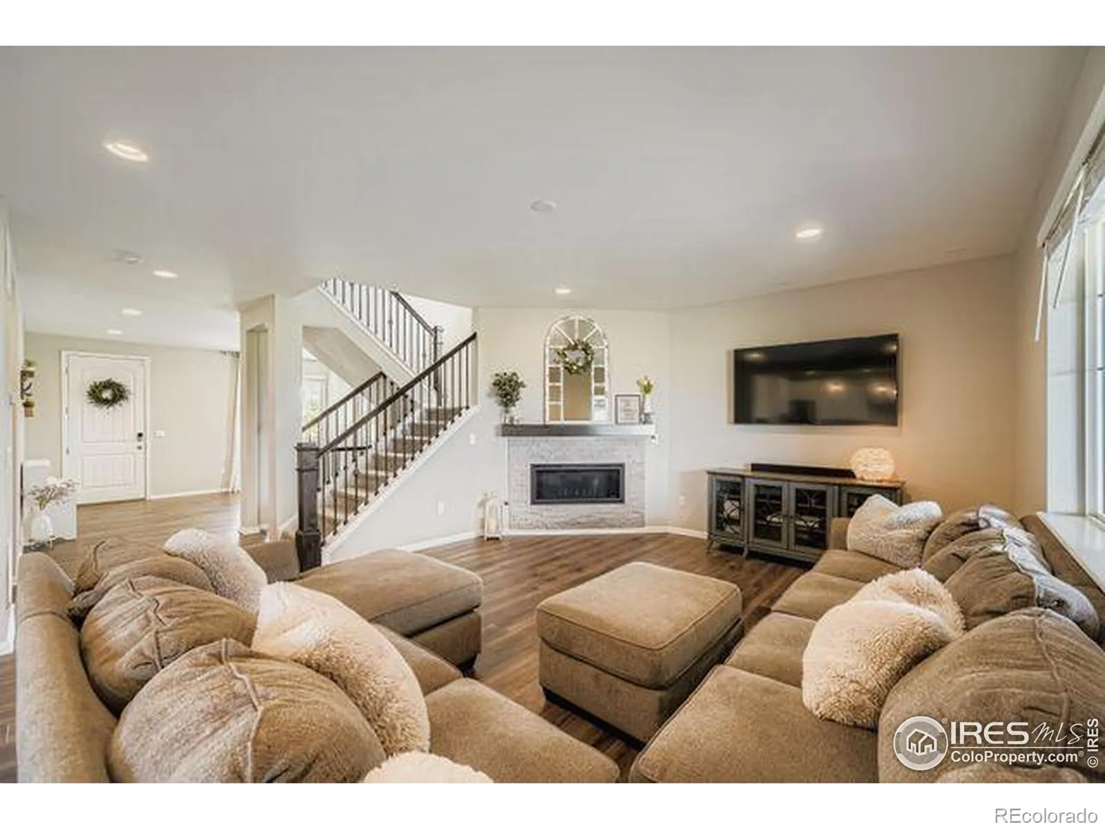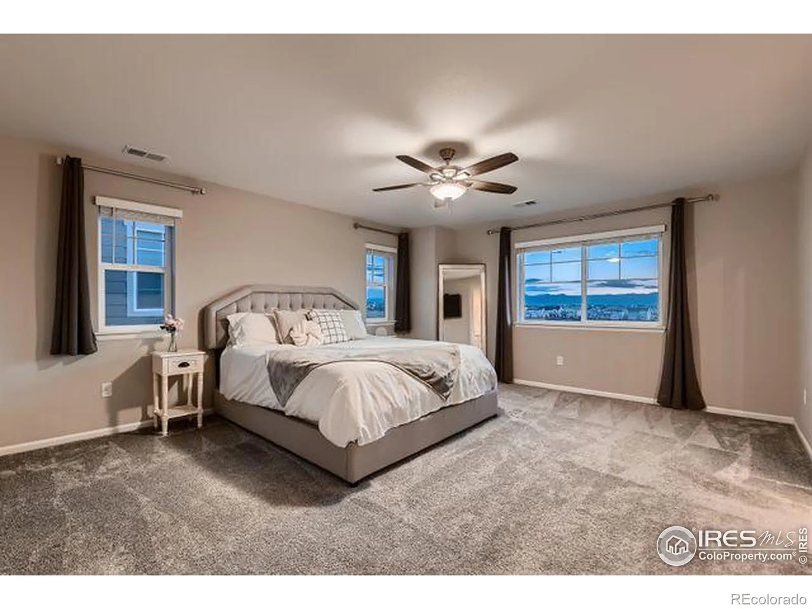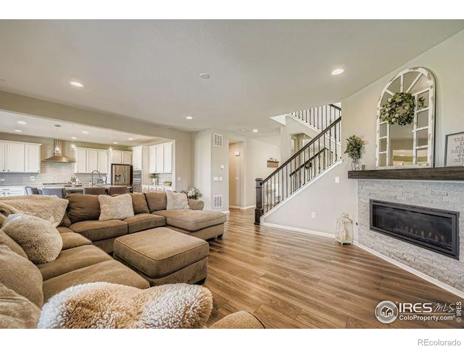 SHOWSTOPPER! Sophistication, Luxury and UNFORGETTABLE BREATHTAKING MOUNTAIN VIEWS! THIS IS THE STANDOUT “MOUNTAIN VIEW” HOME OF ALL HOMES! Perfectly positioned, this home backs to EXPANSIVE OPEN SPACE, LUSH GREENBELTS & SCENIC TRAILS. It commands unobstructed sweeping panoramas of the majestic Rocky Mountains-setting it apart from anything else! Soaring windows flood the interior w/natural light & frame jaw-dropping views like living artwork. You will love the seamless harmony between indoor/outdoor living. Spanning over 4,000 Sqft, this beauty showcases premium finishes, thoughtful design & elevated details at every turn. The main level features a gracious family room w/sleek fireplace & an interchangeable sun-filled dining/living/office space area. Rich walnut designer floors gleam beneath refined lighting, complemented by custom window treatments & upgraded handrails that elevate the home’s style. At the heart of the home, the chef’s kitchen combines style & function w/crisp white shaker cabinetry, subway tile, quartz counters, a sensational expansive center island, decorator lights, pantry & high-end stainless appliances-including gas cooktop, dual oven/microwave & stylish vent hood. Step outside to the spacious covered deck & private backyard oasis-perfect for entertaining. Host unforgettable summer bbq’s beneath the stars or unwind in the hot tub, surrounded by lush greenery, a large fenced yard & sweeping views with radiant pink/orange sunsets. Upstairs you will love the HUGE LOFT & 4 beds including a serene primary suite that captures breathtaking mountain views right from your bed. The spa-inspired en-suite bath has dual vanities, an OVERSIZED glass shower & walk-in closet. The FINISHED WALK-OUT LOWER LEVEL, accessed by an open stairwell, extends the living space w/a spacious room & a guest suite w/bath. Attached 3-car garage. Unbeatable location-steps to clubhouse, 2 pools, gym, parks, trails, playgrounds & near the new Erie Community Center & schools.