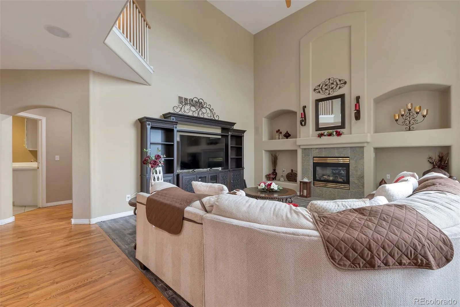 New Price! Amazing opportunity in Plum Creek. This spacious Castle Rock home has all the room your family needs to gather, grow, and create lasting memories. With 6 bedrooms, 5 baths, and a private walk-out basement apartment, it offers comfort and flexibility for both family and guests. Nestled in a sought-after Plum Creek Golf course with trails and scenic views, the home welcomes you with a grand curved staircase, vaulted ceilings, and abundant natural light. A large foyer leads into a formal dining room, perfect for memorable family dinners and holiday celebrations. Cozy and inviting, the family room features a fireplace, soaring ceilings, and sun-filled windows—ideal for quiet evenings or entertaining. Granite countertops, a center island, and ample cabinet space highlight the spacious kitchen, while the breakfast nook overlooks the greenbelt and open space. Step outside to the deck to enjoy breathtaking sunsets and mountain views. The inviting primary suite includes a sitting area with fireplace, his-and-hers walk-in closets, and a 5-piece bath. Upstairs, one of three additional bedrooms has its own private bath, adding comfort and convenience for guests. Bright, airy, updated freshly painted, the walk-out basement is a true highlight, complete with newly installed carpet, a full kitchen with granite countertops, dining area, master bedroom with a large walk-in closet, 6th bedroom, and a bonus room for an office, gym, or storage. A full newer bath makes this space perfect for extended family or visitors. Outdoor living is easy with a covered patio, open-space views, and a sand play area. Just minutes from downtown Castle Rock, shopping, dining, and recreation, this home blends comfort, convenience, and tranquility. Views, updates, space, and flexibility—this home delivers it all.