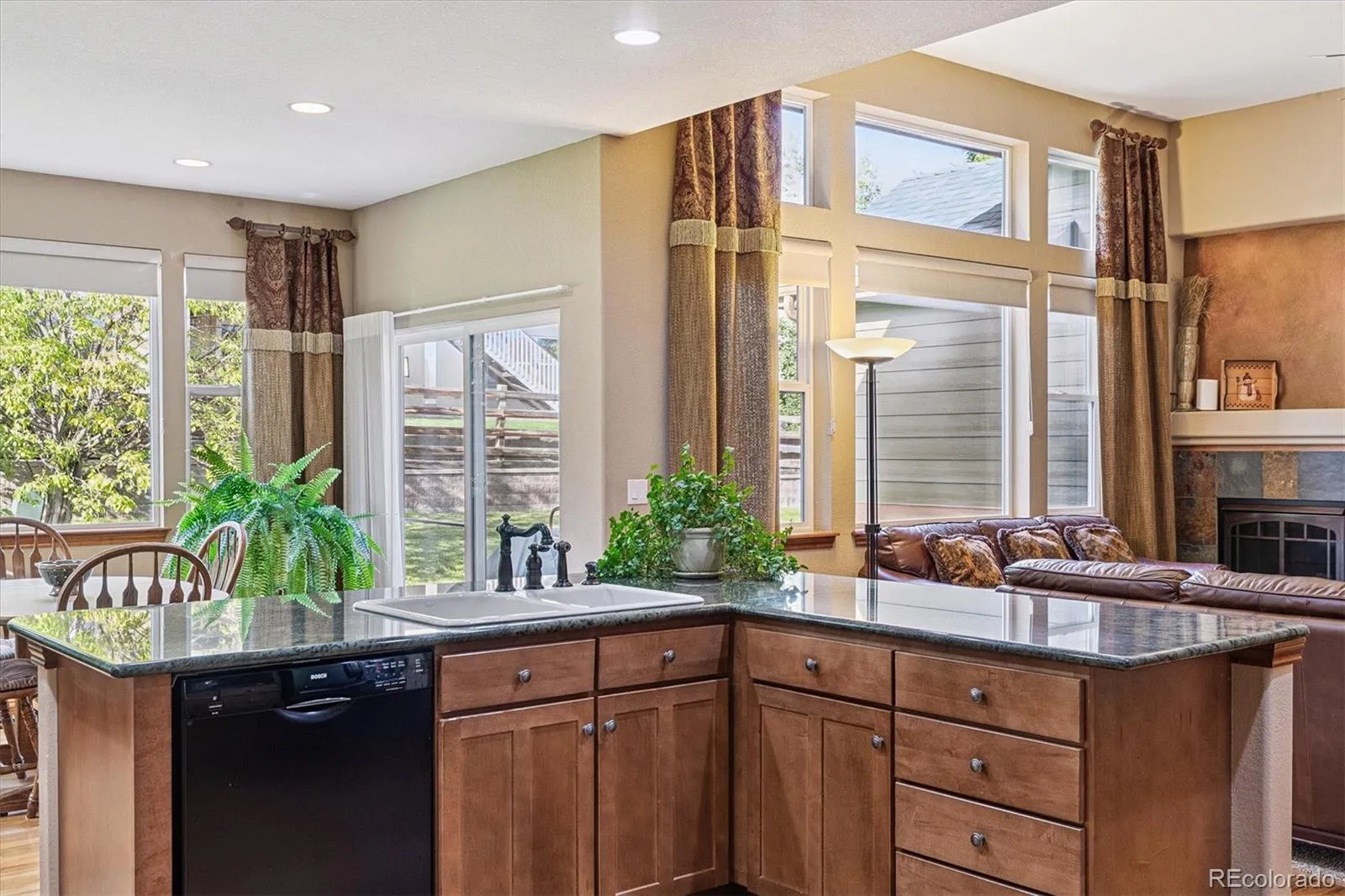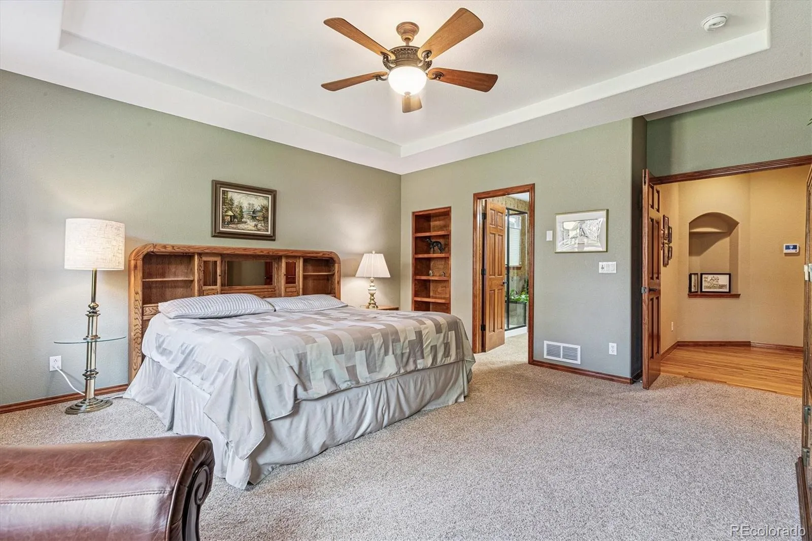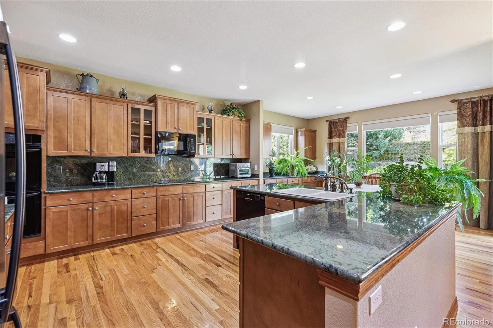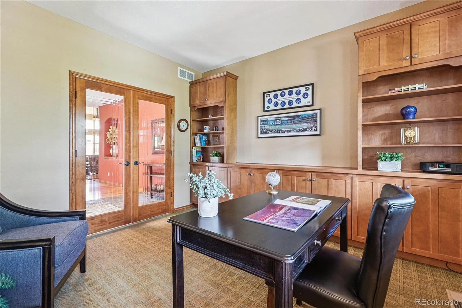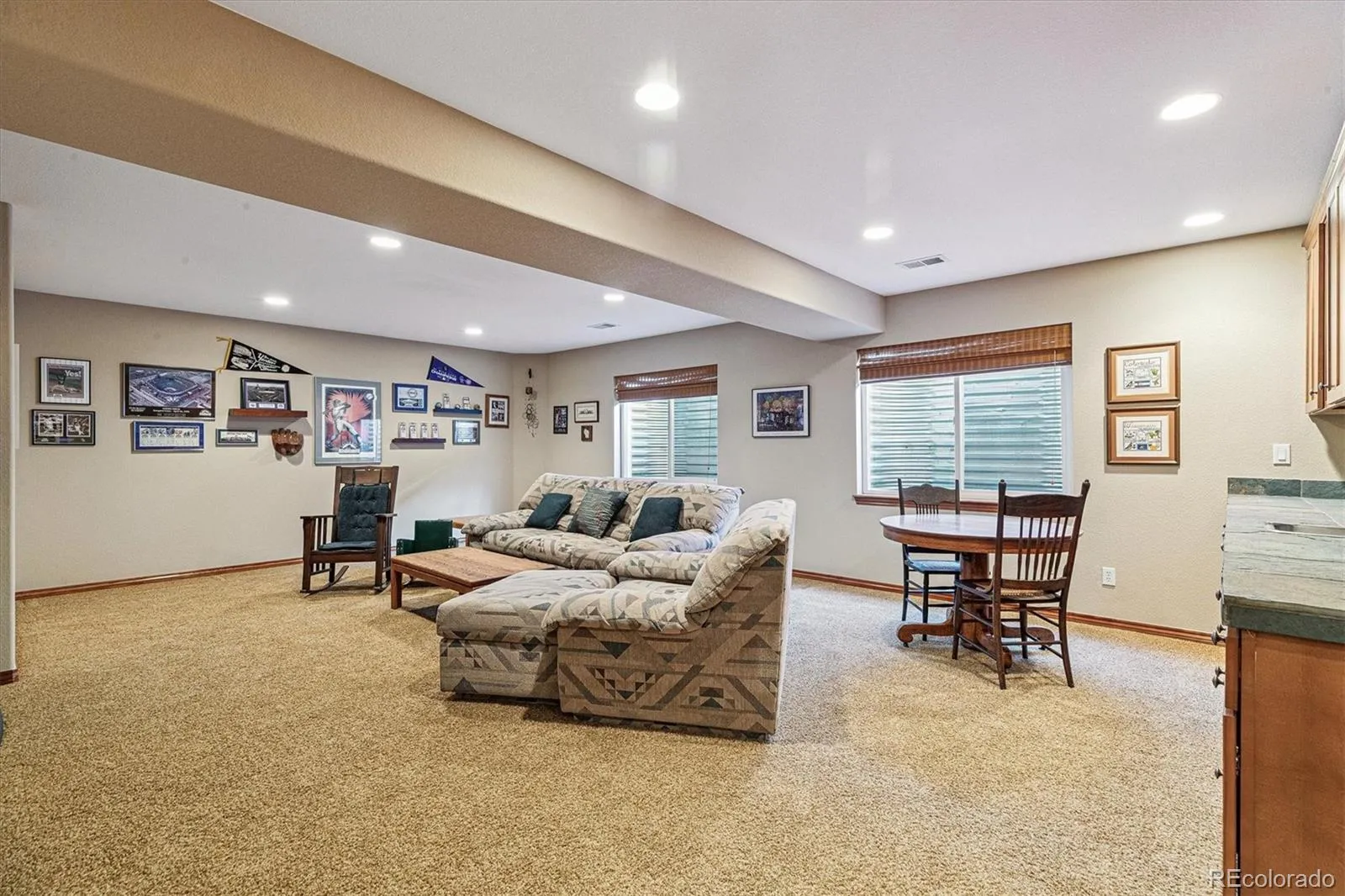 This gorgeous former model home sits across the street from the community park & pond in one of Saddle Brook’s prime locations! If you’re looking for a ranch style patio home that has been meticulously maintained, this is the one for you! The kitchen is an entertainer’s dream with a huge island, coffee/beverage bar, built-in buffet in the breakfast nook, tons of cabinetry, slab granite counters, and a walk-in pantry. The great room has a gas fireplace, and the dining room has a built-in china cabinet. The spacious primary bedroom suite has dual walk-in closets and a 5-piece bath with jetted soaking tub and walk-in shower. For those that work from home, you’ll love the office with french doors and built-ins. The laundry room has built-in cabinetry, a utility sink, and the washer & dryer are included. The professionally finished basement has a spacious family room with gas fireplace and wet bar, 2 bedrooms, a full bath, and plenty of storage space. The north-facing back patio is the perfect place to relax on a hot summer day or sip your morning coffee on the front porch overlooking the pond! 690 sqft, 3 car attached garage. Gleaming hardwood floors. Six panel doors. New 96% 2 stage furnace and 5 stage A/C in January 2024. New exterior paint in September 2024. New roof in September 2021. This is maintenance free living at its best with lawn care and snow removal covered by the HOA! You’ll find miles of walking & biking trails, parks, the Arvada Indoor Equestrian Center, and West Woods Golf Club all nearby.