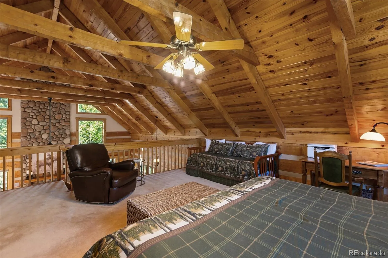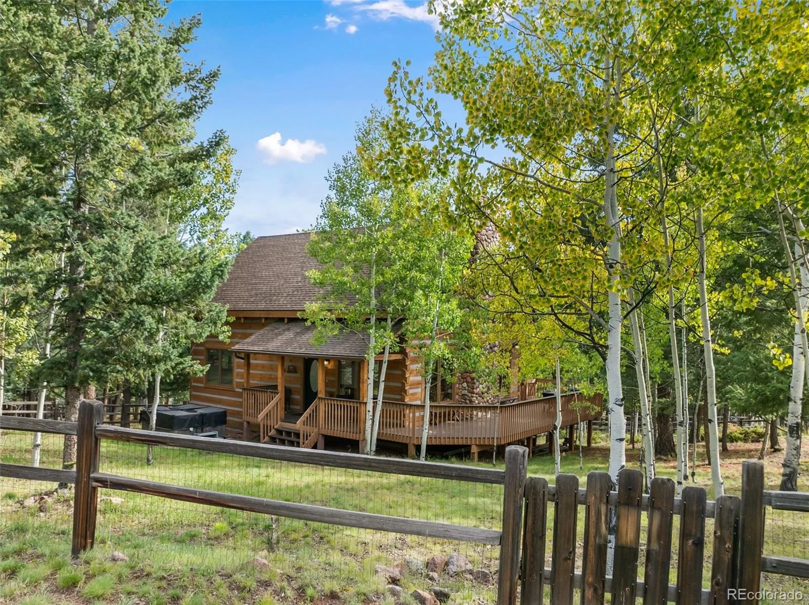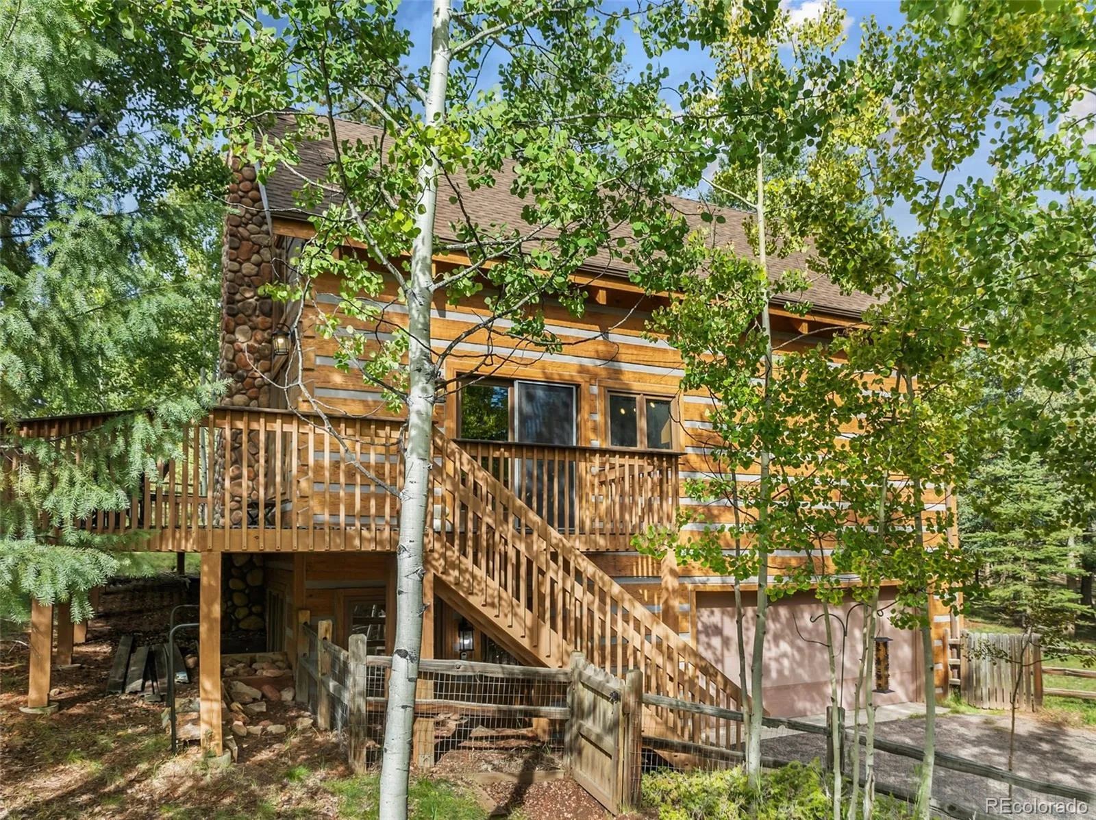 Nestled amongst a mix of Aspens & Pines just minutes from Downtown Woodland Park, you’ll discover a truly unique property—a custom dove tail hand hewn log home that defines mountain living at its finest. This remarkable residence seamlessly marries the charm of a traditional log cabin with the convenience of modern amenities, offering a one-of-a-kind sanctuary for those seeking a convenient mountain escape. The open-concept living space features a magnificent stone fireplace, perfect for cozy evenings by the fire, vaulted tongue and groove ceilings and expansive windows that flood the space with natural light. The interior exudes genuine rustic elegance. This 3-bedroom, 3-bathroom home offers an unparalleled blend of comfort and nature. Outside you’ll enjoy a large wrap around composite deck, hot tub, and a fully fenced in .97-acre lot for pets and family members. Florissant Fossil Beds National Monument, Dome Rock State Park, Mueller State Park, and National Forest are all within a 30-minute drive for your weekend adventures. Fishing at 11 Mile Reservoir, Spinney, and the “Dream Stream” are all within a 45-minute drive. Skiing at Breckenridge is just under 2 hrs. away. Make this your home in the mountains today!