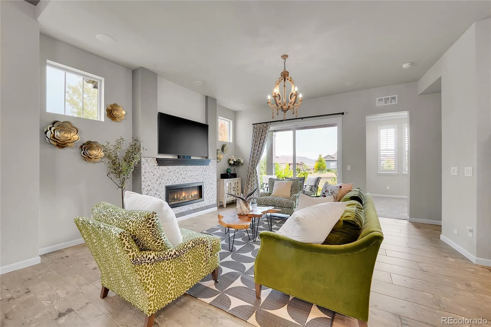So many upgrades, this home feels like a brand new model home. Located in the New Haven community of The Meadows this premium lot is larger than most and backs to open space. The huge open floor plan is great for entertaining with the kitchen, dining and family rooms leading you seamlessly to the patio making entertaining a breeze. There are 3 bedrooms on the main level, including a large primary suite with an ensuite bathroom and large walk-in closet along with direct access to laundry from the primary suite. A dedicated main-level office provides a quiet and functional space for remote work. The fully finished basement includes a family room, game room, a huge wet bar with dishwasher, and 2 chillers, 2 large bedrooms and 2 bathrooms, providing a flexible layout that’s perfect for guests, a home office, or multi-generational living. One of the bedrooms and bathrooms was recently added and features designer-level finishes, making an ideal private retreat for guests. In the backyard enjoy the tranquility of backing to open space with views of bluffs that is more unique to this side of the neighborhood. Landscaping and open space offer added privacy and a scenic natural backdrop for relaxing or hosting gatherings. The Meadows neighborhood provides lots of community amenities including a pool, parks, playgrounds, and miles of walking and biking trails and minutes to the Phillip S Miller Activity Complex. Conveniently located, this home is just minutes from the Castle Rock outlet mall, Downtown Castle Rock, restaurants, shops, Castle Rock Adventist Hospital, I-25 for easy commuting, local parks, hiking trails, and the movie theater.