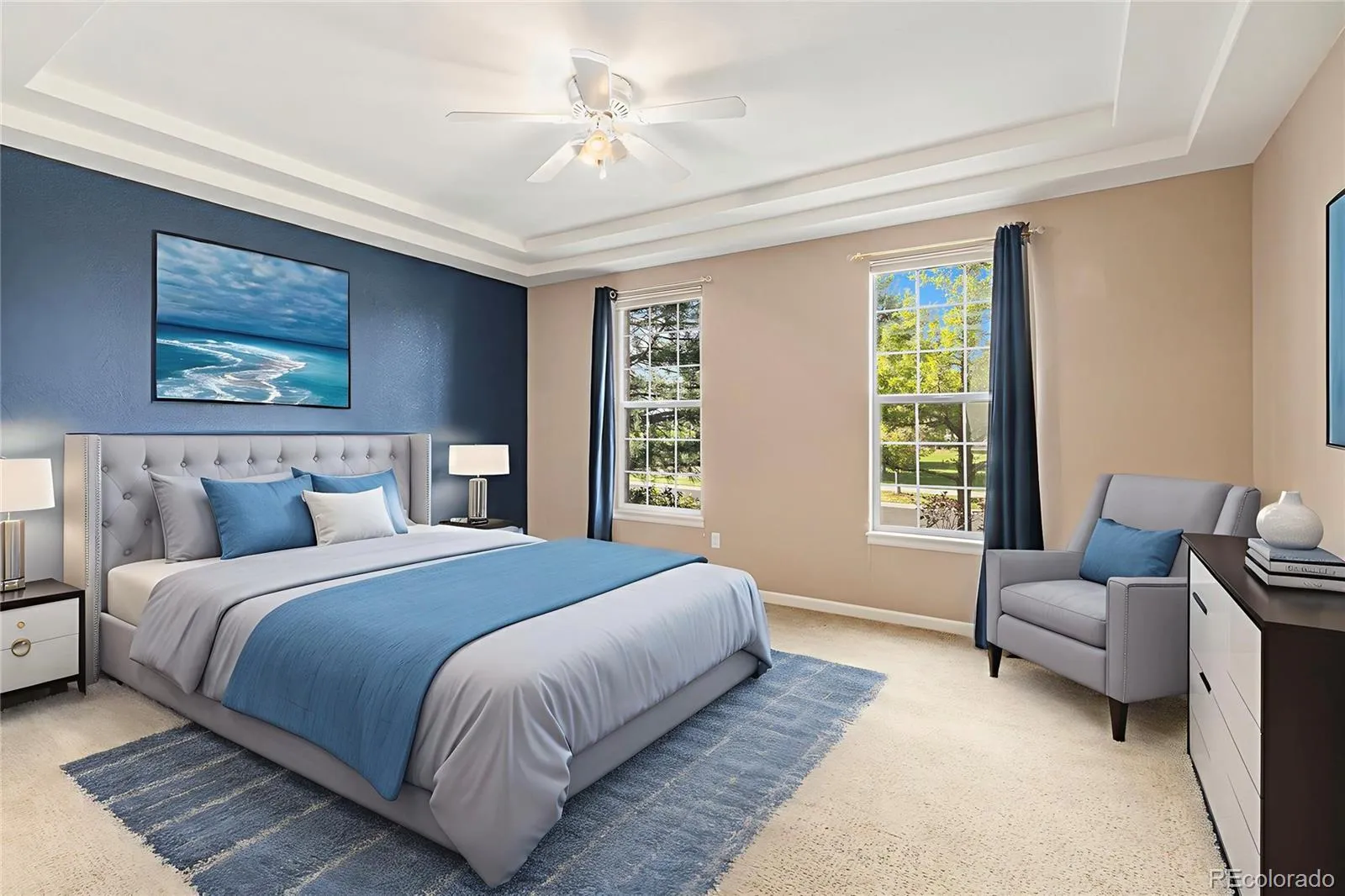 Imagine waking up each morning with Russell Park right across the street and all the charm of the Village of Five Parks just beyond your doorstep! This beautifully cared-for home combines modern comfort with a lifestyle designed for ease, starting with the HOA maintaining your front yard so you can spend more time enjoying everything this neighborhood has to offer. Step inside to an inviting, open layout where the great room is centered around a cozy gas fireplace, perfect for relaxing or gathering with friends. The kitchen features abundant counter space, warm cabinetry, and a large island, while the dining area flows seamlessly to the backyard patio—ideal for outdoor meals or summer evenings. This is a private and low maintenance area for a carefree lifestyle. The generous main level is home to the spacious primary suite with a walk-in closet and en-suite bath featuring dual sinks, shower and a soaking tub. Completing this floor is a large laundry room with an ideal space for a home office or craft station, very unique and super convenient for many different uses. Upstairs are two very large bedrooms with a jack-n-jill bath connecting them. There is also room for a reading nook or 2nd office space offering plenty of flexibility. The unfinished basement provides valuable storage and the opportunity to design the space to fit your needs, whether it’s a gym or media room in the future. The back alley feeds into the oversized 3.5 car garage. Life in Five Parks is truly something special, offering dining and other services right out your back door and Russell Park and amazing mountain views right in front! Walking trails weave throughout the community, creating endless opportunities to enjoy the outdoors and connect with neighbors. This is more than a house—it’s a home in the heart of one of Arvada’s most vibrant communities. Buy now and host the holidays this year in your lovely new home!