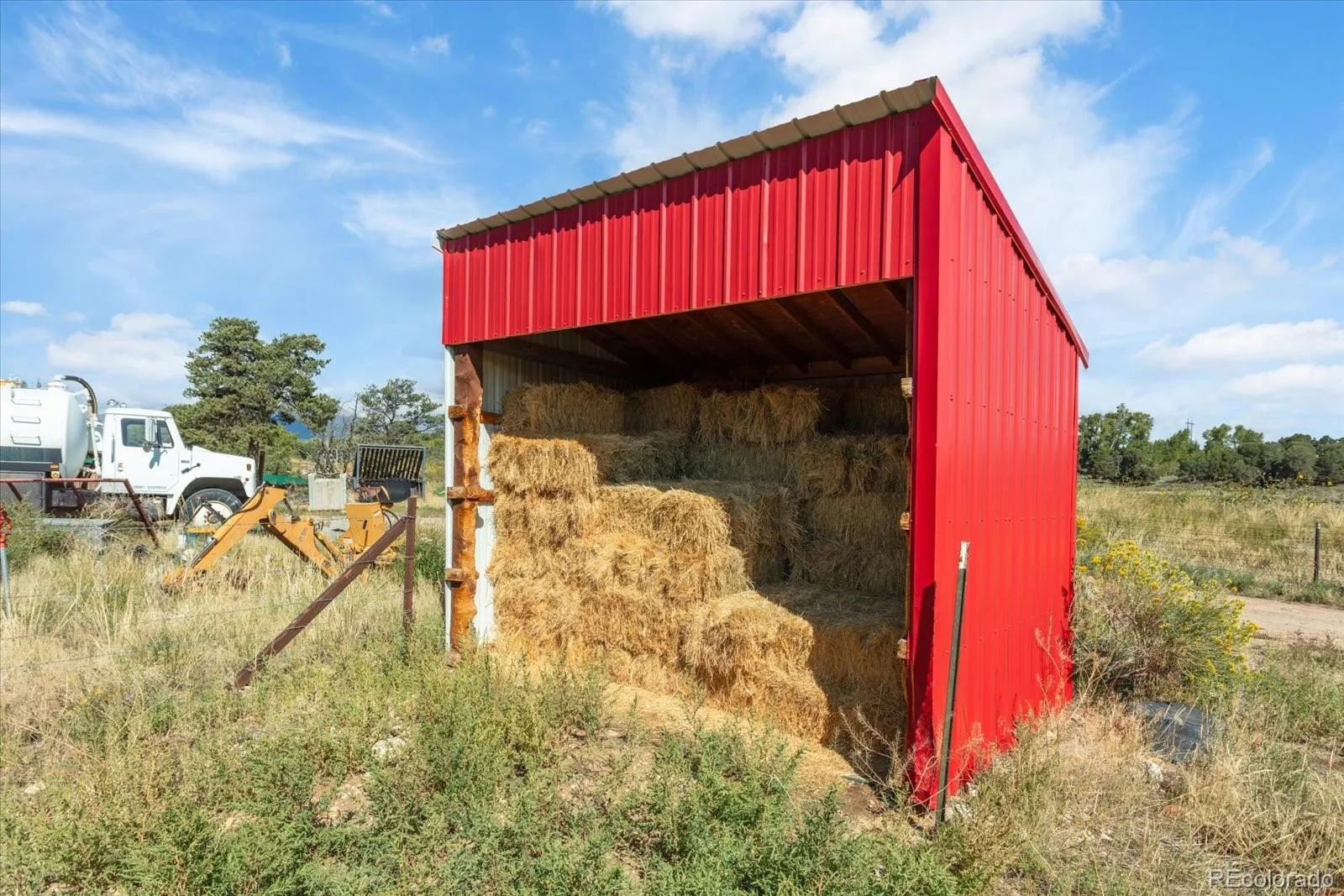 For anyone who needs serious workspace, the 2,400 square foot heated shop is a standout. Designed with 16-foot sidewalls, a 14-foot tall by 12-foot wide overhead door, and a 15,000 lb lift, it is ready for big projects. A loft with office and storage, a sliding-door storage room, and attached hay and equipment storage add to its function. This is a shop built for mechanics, fabricators, or anyone who needs professional-grade space.