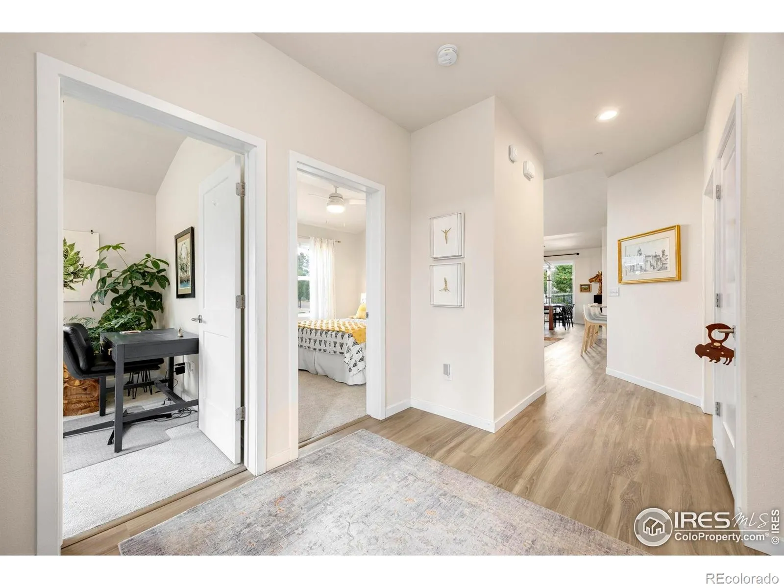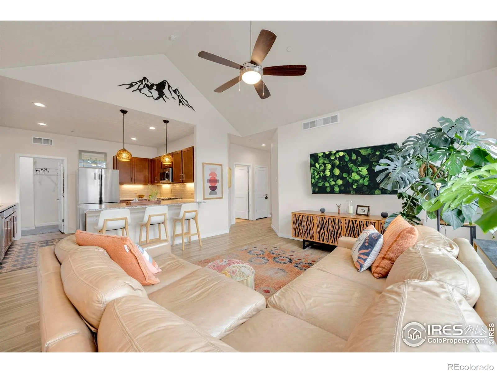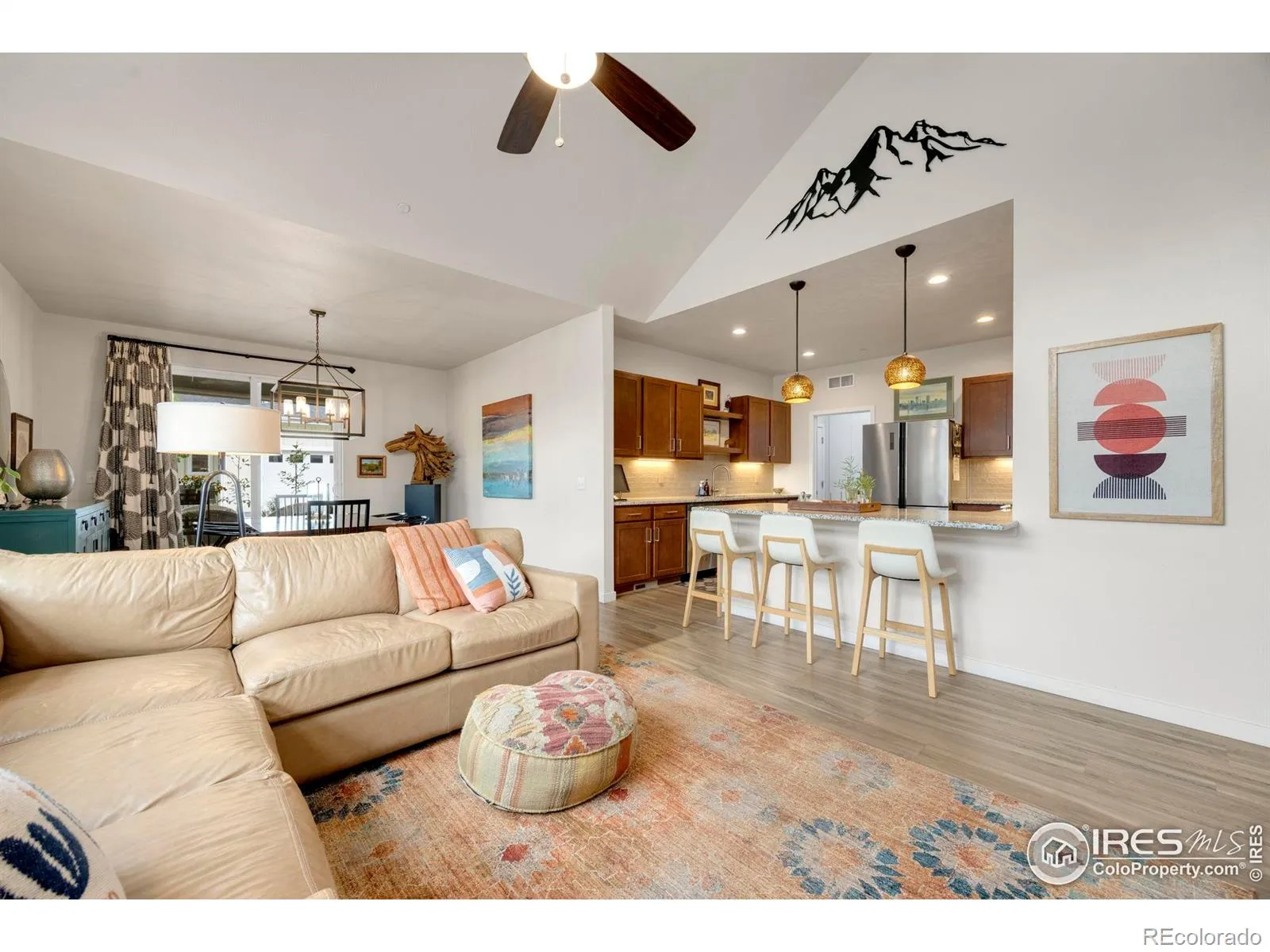 Bright and spacious 3 bed 2 bath “Stair Free” end unit townhome in Fort Collins; situated just steps from Traverse Park where you can take advantage of open space, walking trail, playground equipment, and a pump track. Inside, enjoy entertaining from your oversized kitchen with granite countertops, seemingly endless cabinet space, and tasteful custom lighting. Having a more formal meeting? Move to the separate dining area or enjoy our perfect weather on the covered patio with privacy screen on one side, greenery and xeriscape on the other. When the day is over, retire to your owner’s suite including a large double vanity and oversized shower in the bathroom, and more stylish lighting to read by in the bedroom. This unit is a true “Lock and Leave” property, snowbird or travel without having to worry about exterior maintenance.