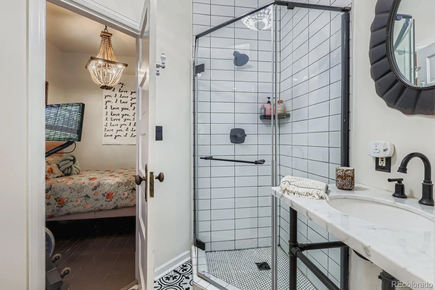This classic brick bungalow with modern updates and original charm has high ceilings, natural light and original hardwood floors throughout. The cozy, covered front porch with swing invites you into the home’s main level which has been fully updated with fresh paint throughout. The main level includes 2 bedrooms, 2 bathrooms and a fully updated kitchen featuring granite countertops, stainless steel appliances, beautiful cabinetry which offers ample storage which can be hard to find in older homes. The main bedroom offers a walk-in closet and remodeled ensuite bath with a free-standing tub. Off of the kitchen, leading into the fully fenced backyard is the 2nd bedroom, which has a connecting door to the 2nd bathroom. Walk downstairs into the recently finished basement (complete with luxury vinyl flooring) which may offer a non-conforming 3rd bedroom and the laundry room, you will also find two storage rooms. If this cool home wasn’t enough, the location could not be more ideal; two blocks to Teller Elementary, 4 blocks to all of the great restaurants and shops that Congress Park has to offer or jump right over Colorado Blvd to the 9th and Colorado restaurants and shops, including Trader Joe’s. The property also offers a private garden door entrance in back, entering the downstairs entrance, which offers a great opportunity for a roommate, air bnb or a guest retreat. The Attic is framed, if the future owner desires to expand and buildout a 2nd level. Numerous improvements have been made to the property, including a new roof, 2 full security glass doors (front/back doors) and a new water heater. The lush backyard is a private sanctuary ready for entertaining! Enjoy the deck off of the backdoor, raised garden beds and a fully fenced yard, offering the perfect environment for entertaining and hosting barbecues.