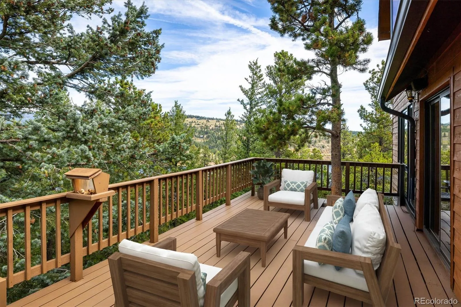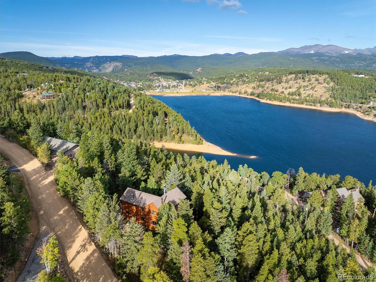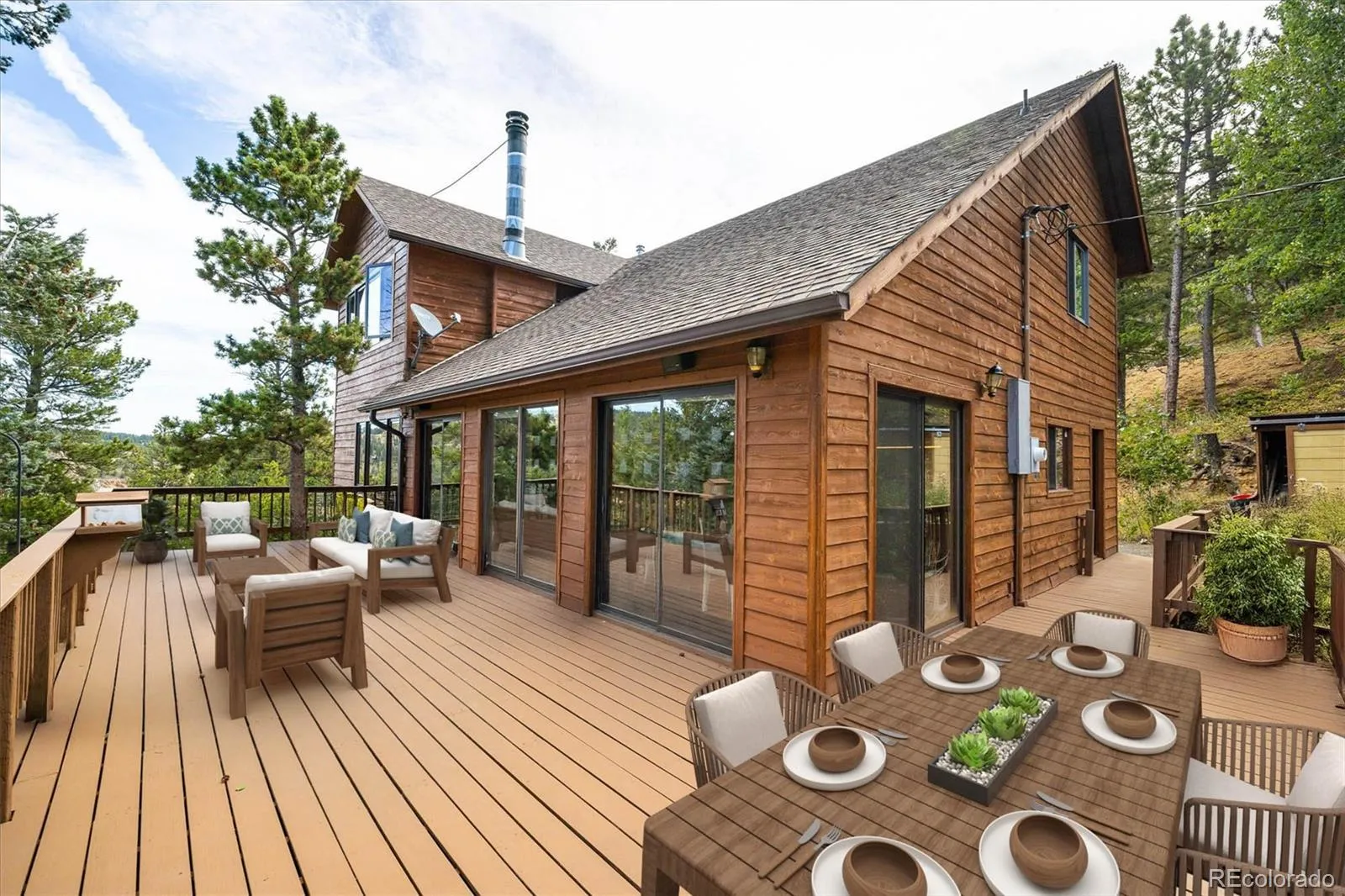 Colorado Mountain Home – Perched above the charming town of Nederland, this spectacular home showcases million-dollar views of the Continental Divide and the sparkling lake below. Inside, the open floor plan features vaulted, beamed ceilings and a striking stone fireplace as its centerpiece. The kitchen is appointed with granite countertops, new appliances and gorgeous mahogany cabinetry. Custom woodwork adds character throughout the home, including a fantastic built-in bookcase, while newer windows frame forested hillsides and stunning Rocky Mountain views. The upper-level primary suite offers high ceilings and a cozy wood stove, creating the perfect retreat. Step outside to more than 650 sq ft of Brazilian ironwood decking—an ideal private setting for dining, relaxing and taking in Colorado’s ever-changing sunsets before the night sky fills with stars that seem almost within reach. Blending artistry and functionality, this mountain home is perfectly situated for world-class hiking, mountain biking and skiing at Eldora Mountain Resort—just minutes away. Come live where you play.
