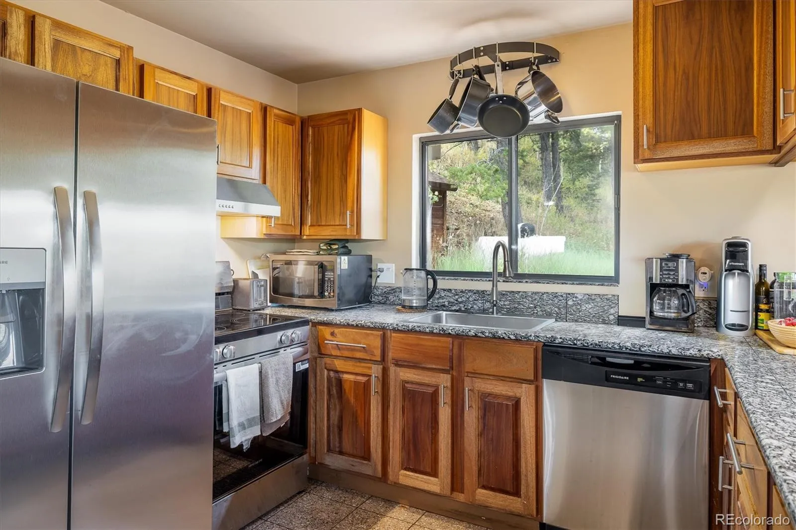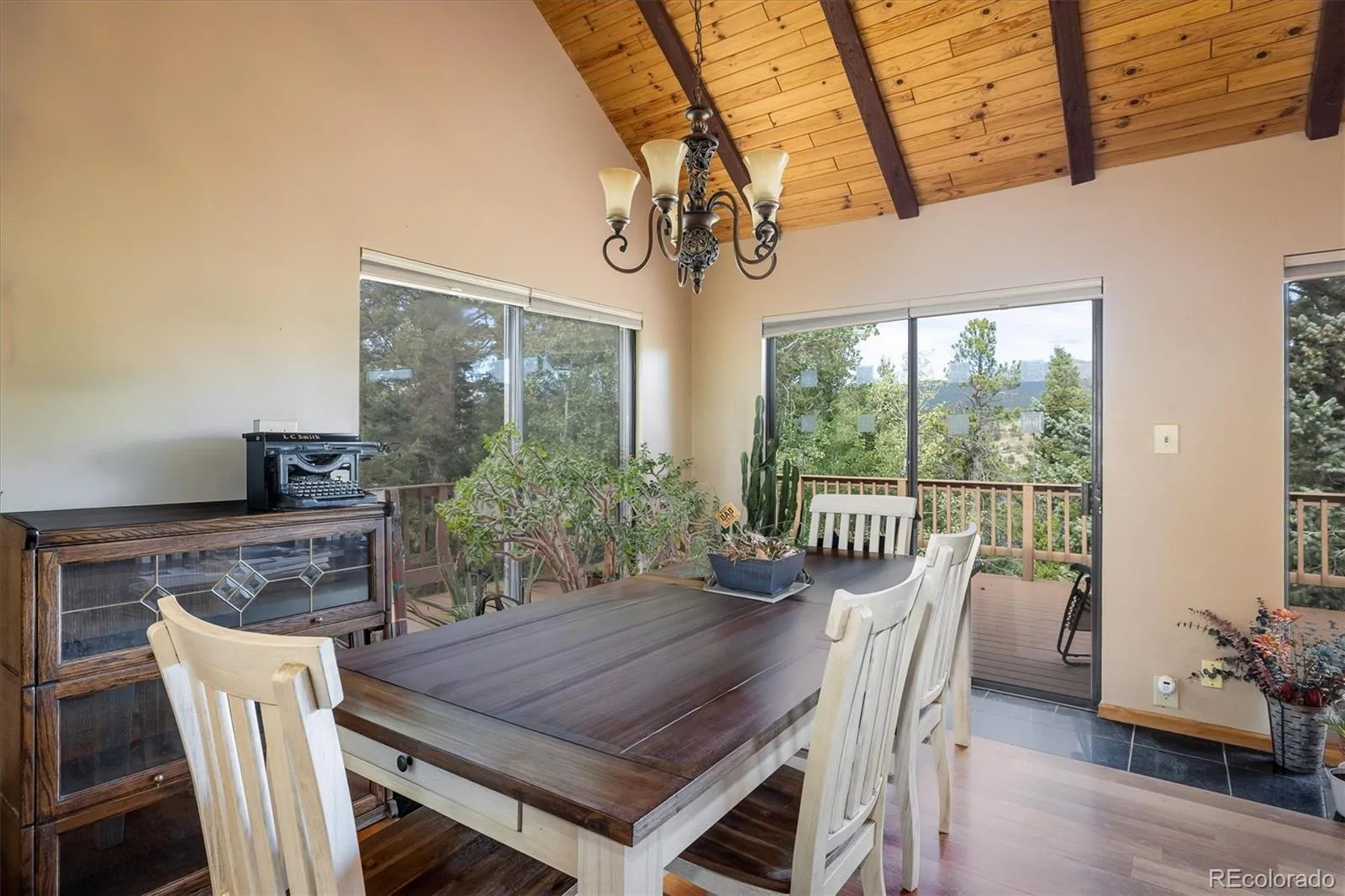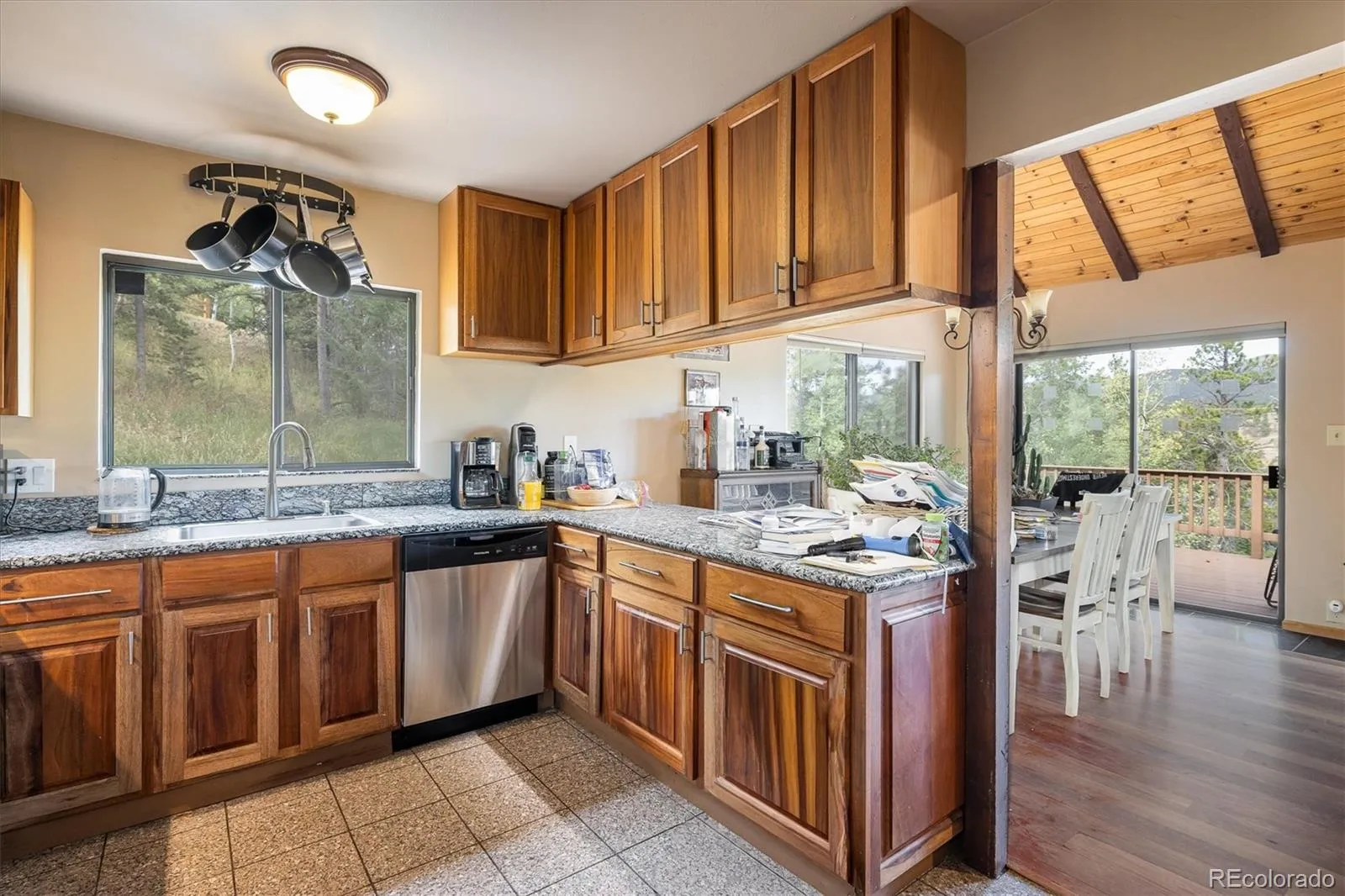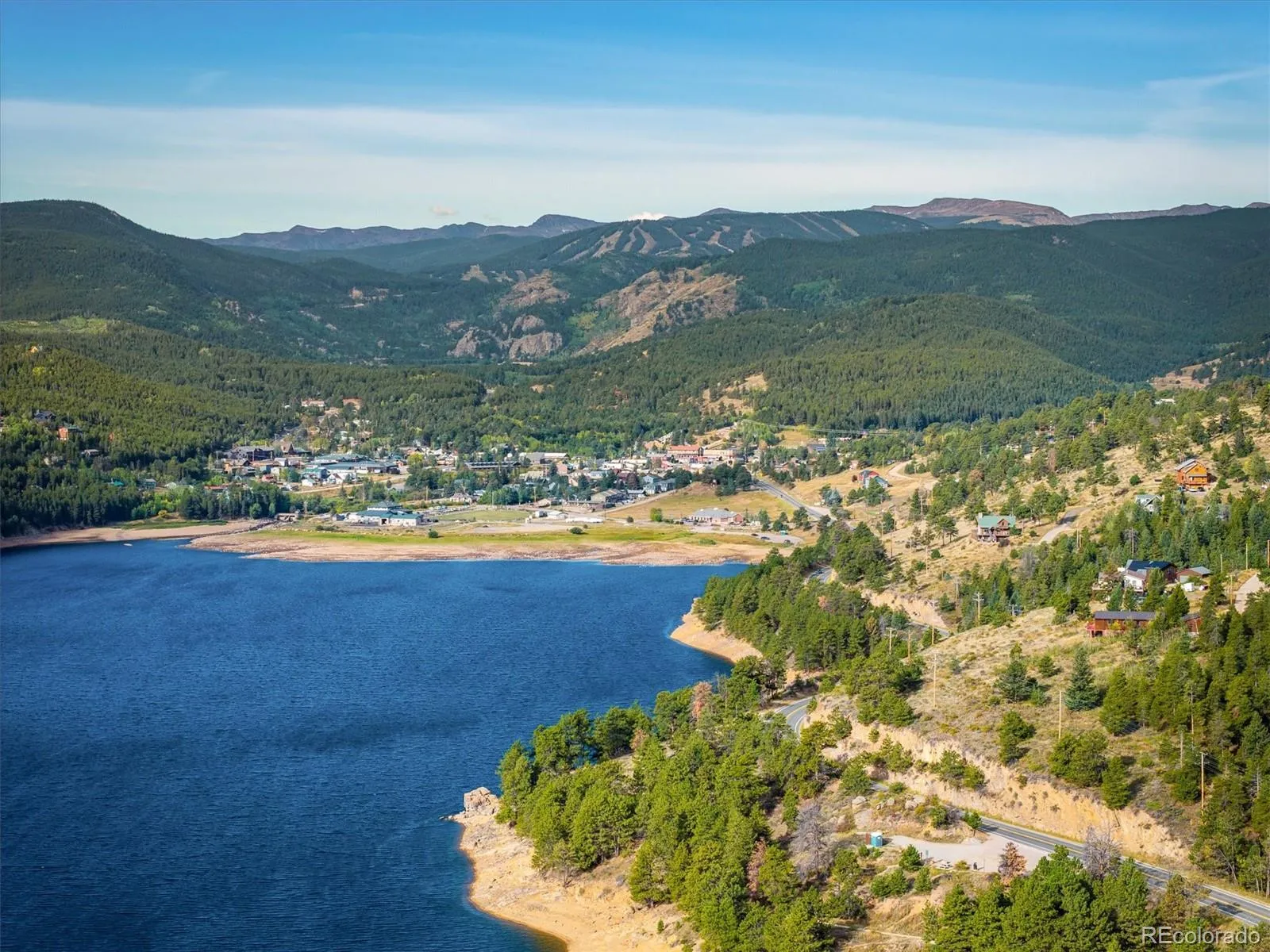 Colorado Mountain Home – Perched above the charming town of Nederland, this spectacular home showcases million-dollar views of the Continental Divide and the sparkling lake below. Inside, the open floor plan features vaulted, beamed ceilings and a striking stone fireplace as its centerpiece. The kitchen is appointed with granite countertops, new appliances and gorgeous mahogany cabinetry. Custom woodwork adds character throughout the home, including a fantastic built-in bookcase, while newer windows frame forested hillsides and stunning Rocky Mountain views. The upper-level primary suite offers high ceilings and a cozy wood stove, creating the perfect retreat. Step outside to more than 650 sq ft of Brazilian ironwood decking—an ideal private setting for dining, relaxing and taking in Colorado’s ever-changing sunsets before the night sky fills with stars that seem almost within reach. Blending artistry and functionality, this mountain home is perfectly situated for world-class hiking, mountain biking and skiing at Eldora Mountain Resort—just minutes away. Come live where you play.