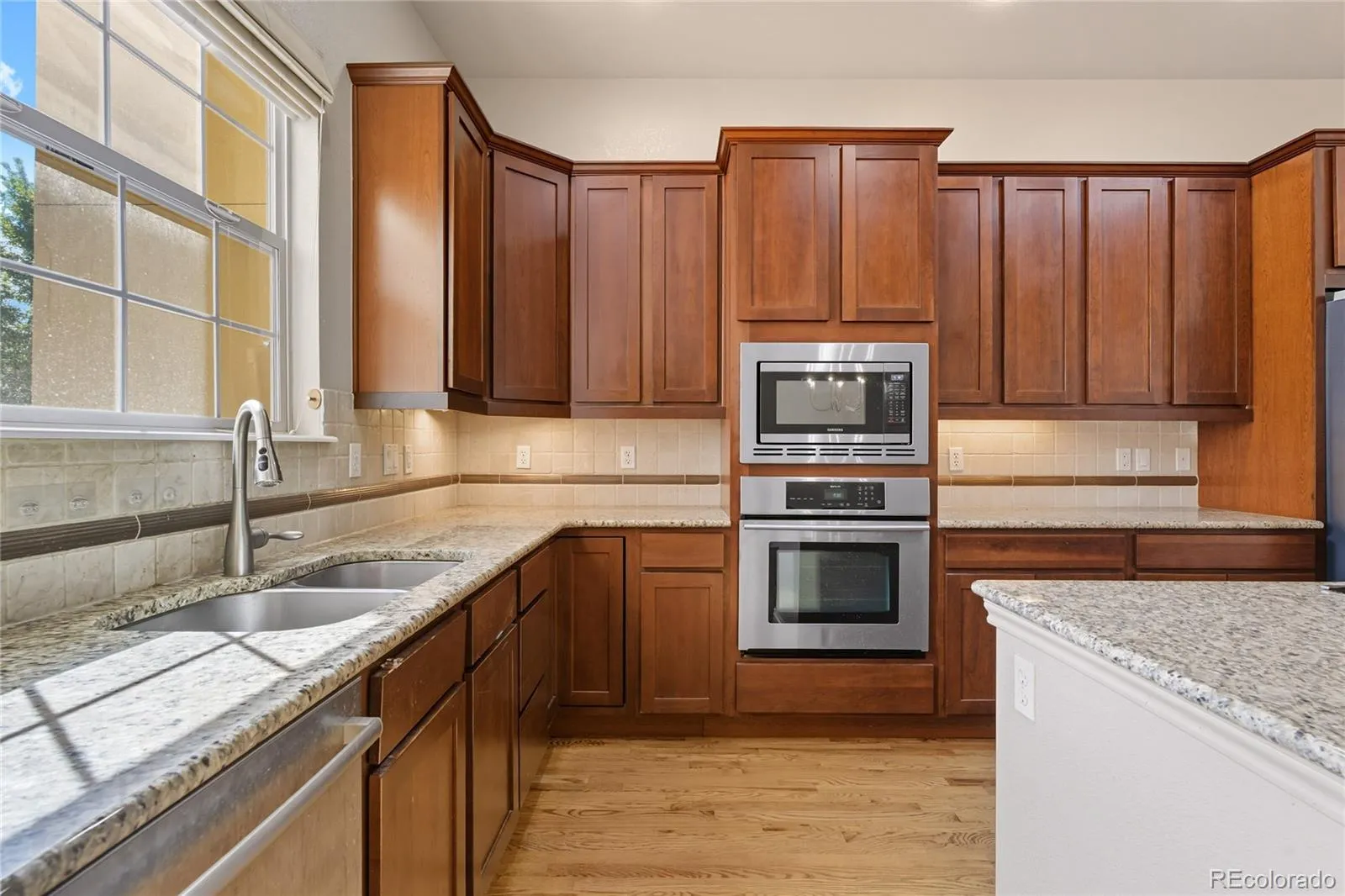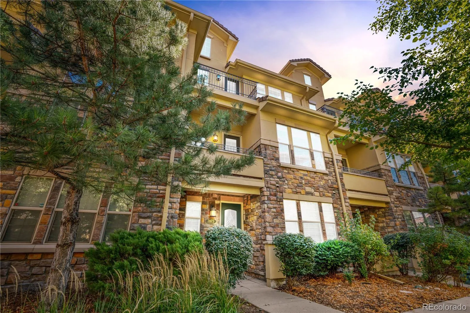 Low-maintenance living in Vallagio! Light-filled 3 bed / 3.5 bath with an open floor plan, custom hardwoods across the main level, and a private shaded patio. Island kitchen features slab granite, 42? cabinets, stainless appliances, pantry, and custom tile backsplash—opening to a fireside family room; a second gas fireplace warms the living room. Abundant windows, generous bedrooms, and an oversized attached garage. Prime Inverness/Tech Center location: a short walk to Dry Creek Light Rail, coffee and breakfast spots, yoga, bank, dry cleaners, nail salon, and multiple restaurants. Easy access to I-25; minutes to Park Meadows. Immaculate and move-in ready.