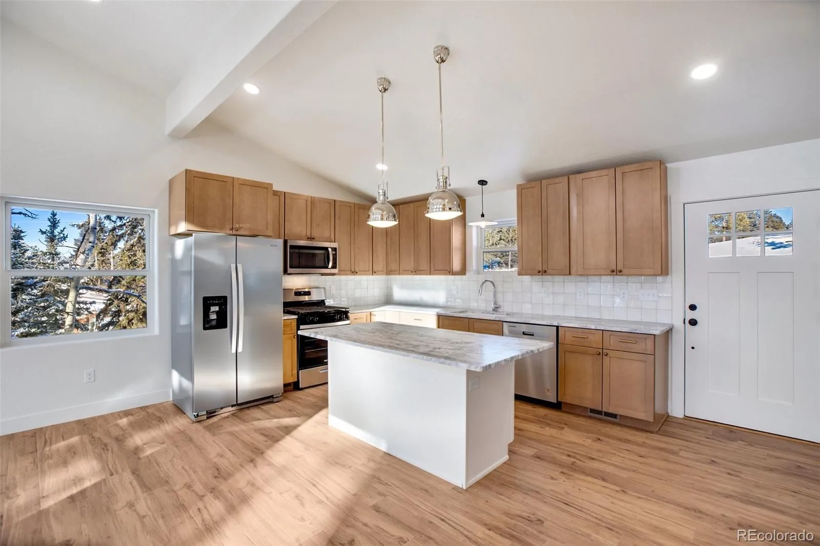 This custom stucco home with stacked stone accents delivers a contemporary upscale mountain feel. This MOUNTAIN RETREAT boasts custom features and upgrades throughout. The access is right off the main road only a few hundred yards beyond the pavement. A 12 x 12 concrete patio is the first place one is offered a place of rest and relaxation. While the front entrance is unassuming, one step inside provides the awe-inspiring sight of a great room that features a 15 ft tall window wall featuring Anderson windows and a floor to ceiling custom fireplace. The back door leads to a 300 square foot deck featuring maintenance free Trek decking and Fortress railing system offering beautiful views and solitude. The kitchen off the great room abounds in custom features including Fabuwood cabinets topped off with custom granite countertops and a tile backsplash. The stainless-steel appliances and large island provide for an efficient workspace. The main level living also includes a Master Bedroom suite with vaulted ceilings that match the great room and a walk-in closet. The en-suite bathroom displays custom tile along with a large custom walk-in shower. The staircase off the front door leads to a walkout basement that is equally impressive. This expansive space does not feel like a basement with its 9-foot ceilings. The lower-level family room boasts ample windows providing plenty of light. The two additional bedrooms are spacious & share a full bath with a double vanity. This home has been built to endure mountain conditions with 96% efficient Armstrong furnace, Anderson windows and a roof clad with Owens Corning Duration shingles. R38 insulation in the ceilings & R-19 in the walls provide ultimate protection from the mountain elements. The house is perfectly nestled on this .54 acre lot. Close to world class fishing, amazing hiking, four wheeling, skiing, amenities, & a gambling town make this the ideal Colorado location! It’s just Beautiful! A 2 car Carport has been installed!