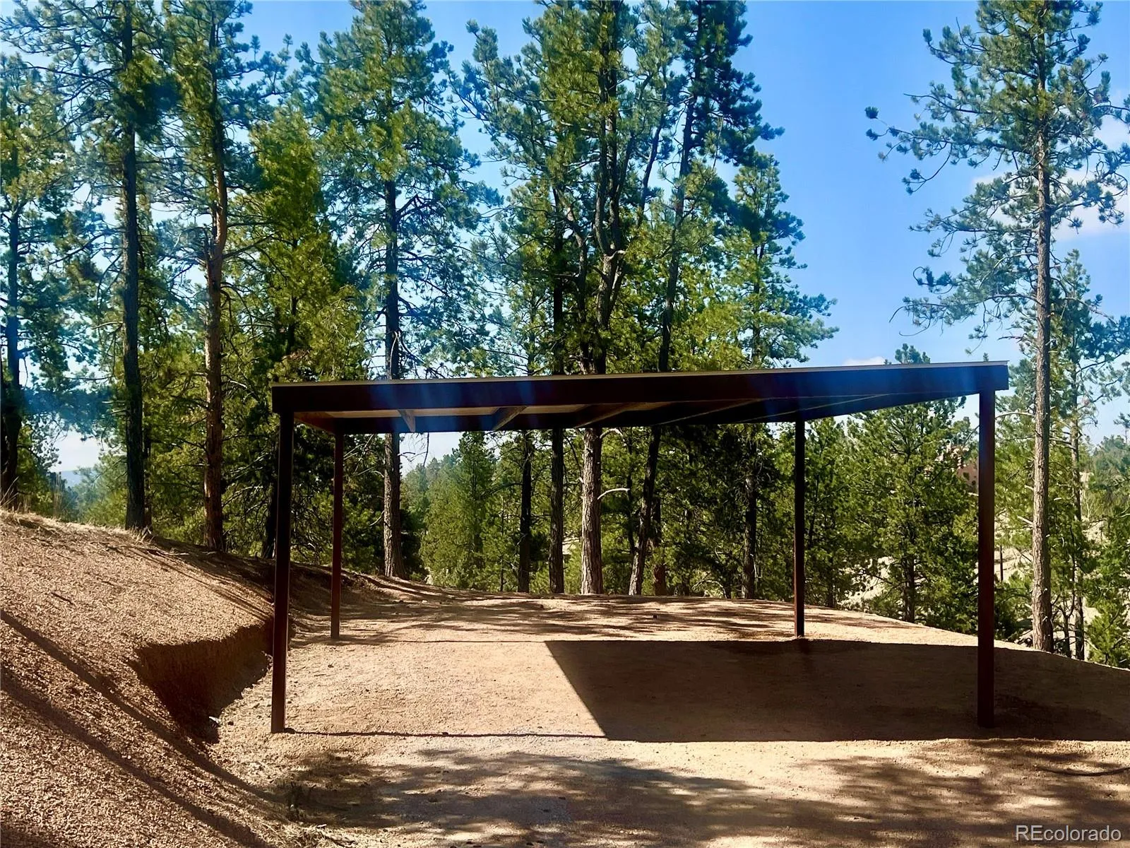 This custom stucco home with stacked stone accents delivers a contemporary upscale mountain feel. This MOUNTAIN RETREAT boasts custom features and upgrades throughout. The access is right off the main road only a few hundred yards beyond the pavement. A 12 x 12 concrete patio is the first place one is offered a place of rest and relaxation. While the front entrance is unassuming, one step inside provides the awe-inspiring sight of a great room that features a 15 ft tall window wall featuring Anderson windows and a floor to ceiling custom fireplace. The back door leads to a 300 square foot deck featuring maintenance free Trek decking and Fortress railing system offering beautiful views and solitude. The kitchen off the great room abounds in custom features including Fabuwood cabinets topped off with custom granite countertops and a tile backsplash. The stainless-steel appliances and large island provide for an efficient workspace. The main level living also includes a Master Bedroom suite with vaulted ceilings that match the great room and a walk-in closet. The en-suite bathroom displays custom tile along with a large custom walk-in shower. The staircase off the front door leads to a walkout basement that is equally impressive. This expansive space does not feel like a basement with its 9-foot ceilings. The lower-level family room boasts ample windows providing plenty of light. The two additional bedrooms are spacious & share a full bath with a double vanity. This home has been built to endure mountain conditions with 96% efficient Armstrong furnace, Anderson windows and a roof clad with Owens Corning Duration shingles. R38 insulation in the ceilings & R-19 in the walls provide ultimate protection from the mountain elements. The house is perfectly nestled on this .54 acre lot. Close to world class fishing, amazing hiking, four wheeling, skiing, amenities, & a gambling town make this the ideal Colorado location! It’s just Beautiful! A 2 car Carport has been installed!