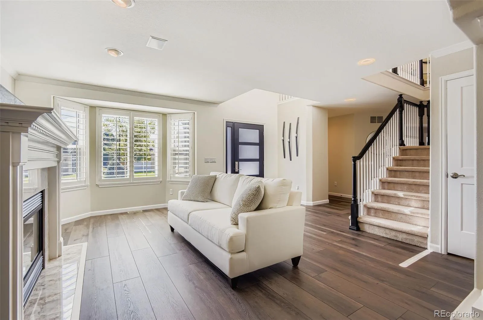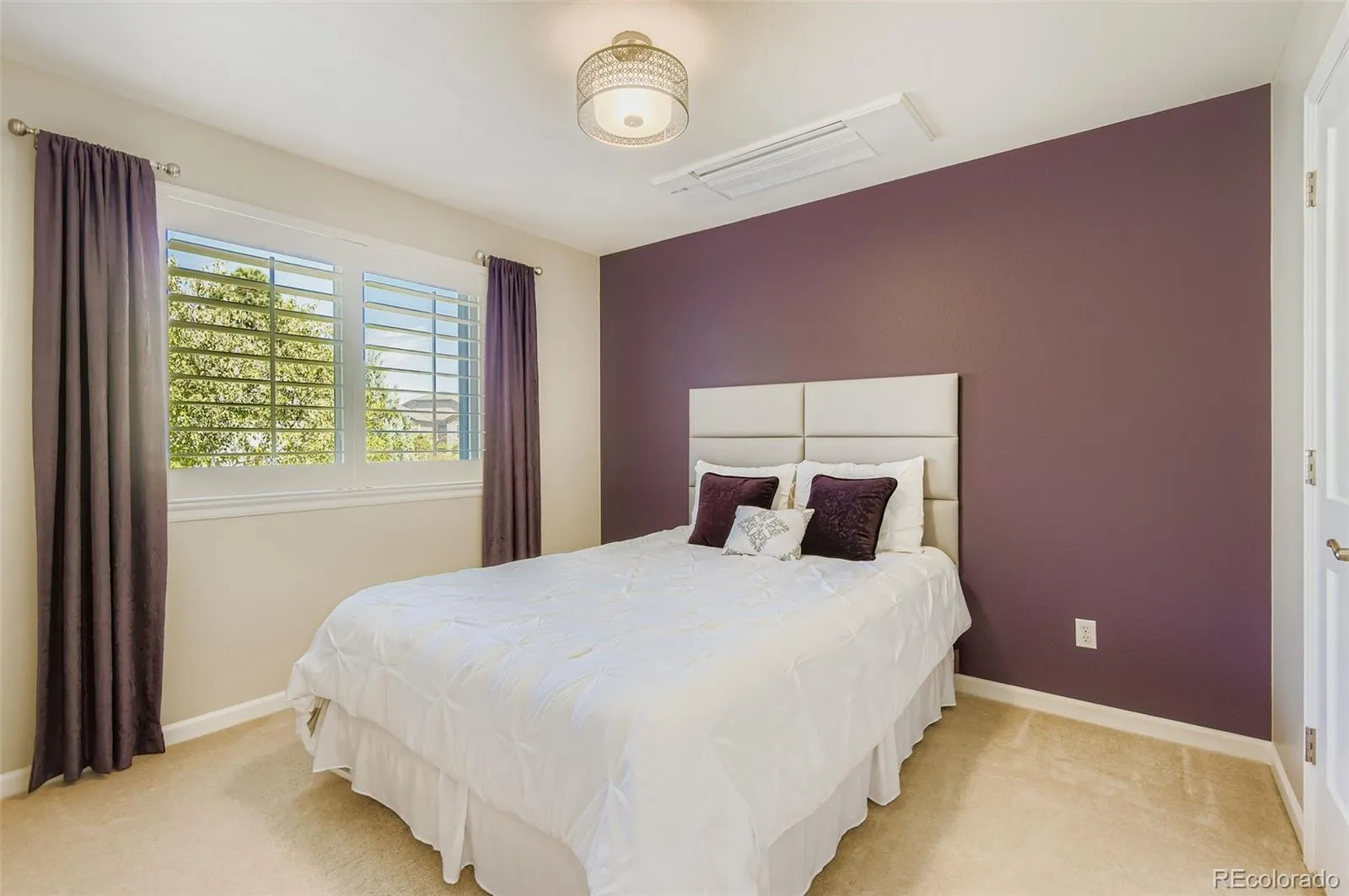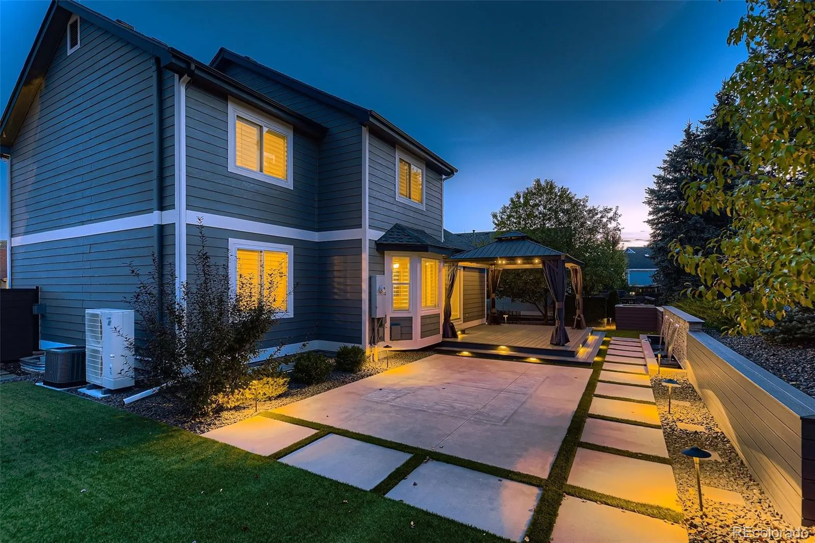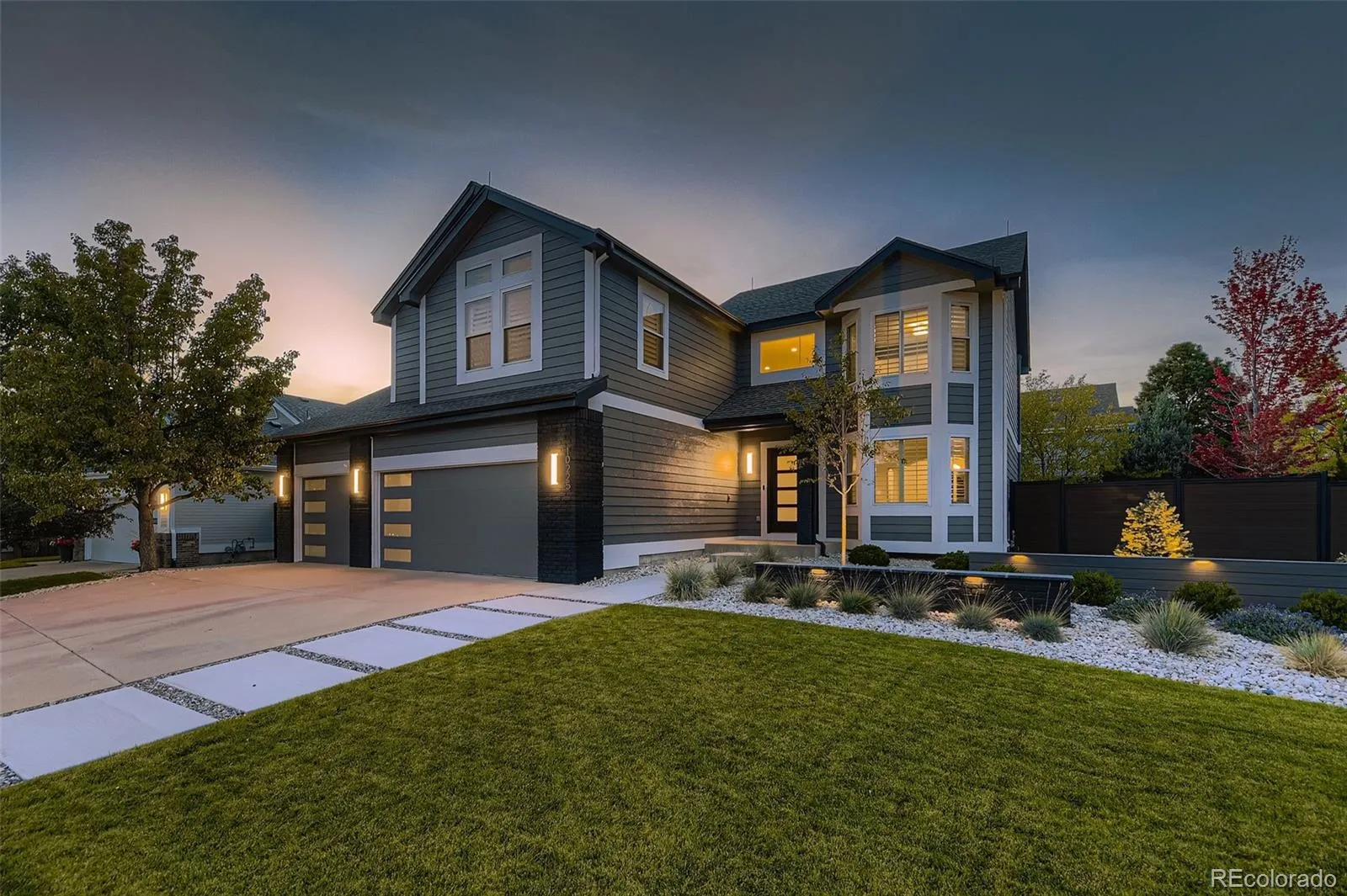 WELCOME to Lone Tree’s beautiful Carriage Club neighborhood! This immaculate home blends timeless style with modern upgrades and is equally stunning inside and out, day or night, thanks to elegant exterior lighting. With 3,370 finished square feet, it offers five bedrooms and four baths, including four upstairs plus a versatile main-level bedroom with a full bath—ideal for guests or a private office. The floor plan is open yet functional, providing both comfortable family living and indoor/outdoor spaces for entertaining.