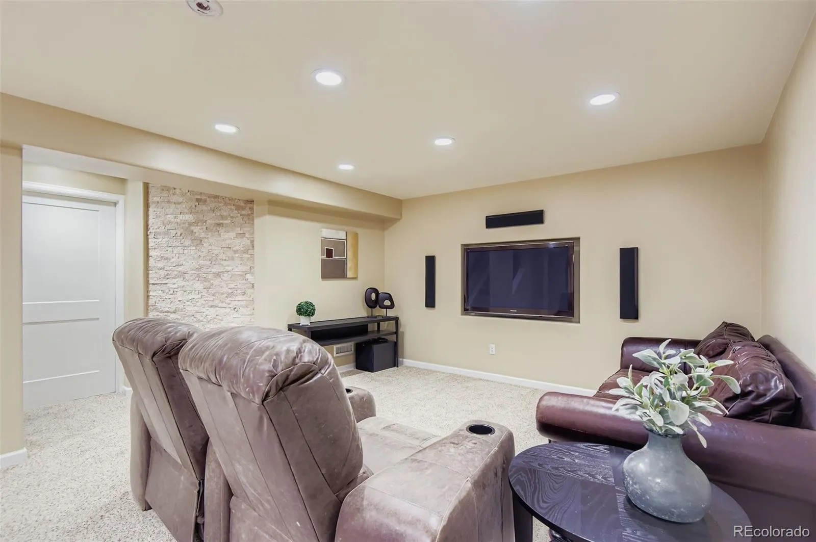 Upstairs, the primary suite includes a five-piece bathroom with new tile floors, along with a loft, three secondary bedrooms, and a full bath with dual vanities. The finished basement expands the living space with a theater, wet bar, game room, and additional bath.