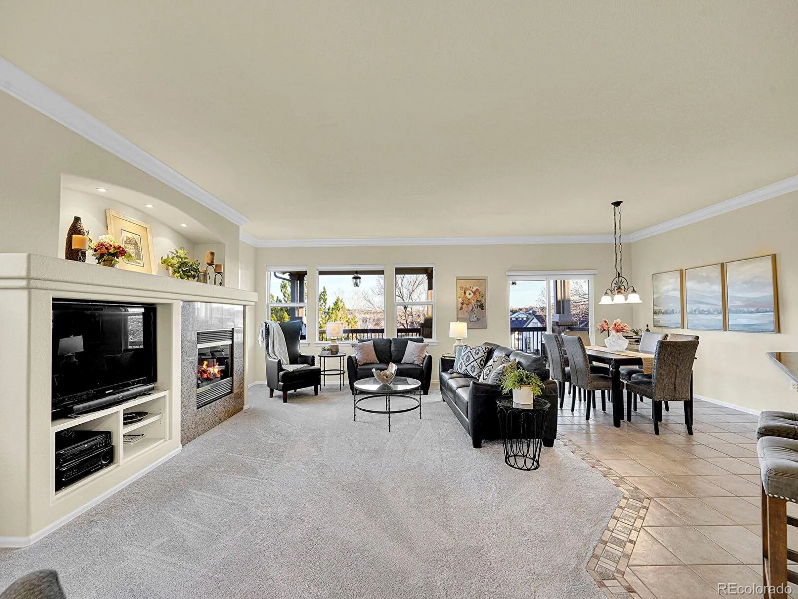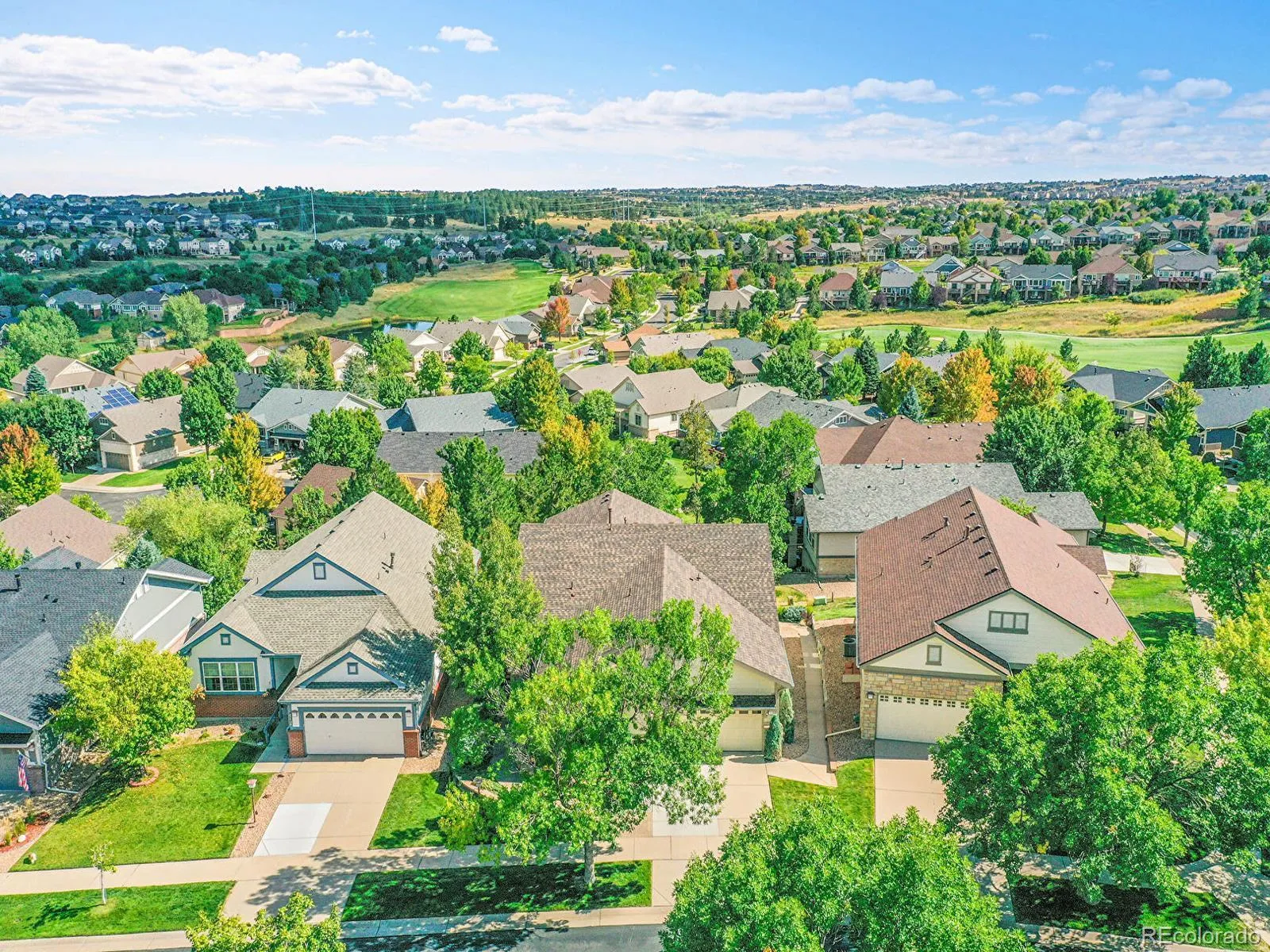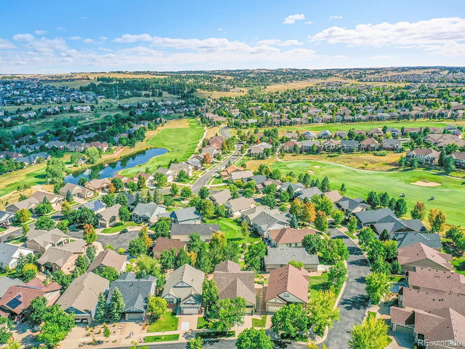 Bright and airy single-family ranch in sought-after Heritage Eagle Bend! Designed for main-level living and entertaining, this 4-bed, 3-bath home boasts tranquil greenspace views surrounded by evergreens, a brand-new roof, an oversized 2-car garage, and a finished walkout basement. Lush garden beds and a covered patio lead into the open main level, accented by crown molding and bright windows. A formal dining area flows seamlessly into the living room, an expansive space for entertaining anchored by a gas fireplace and warm built-ins. Boasting rich cherry cabinetry, stainless appliances, a pantry, and a peninsula with seating, the open kitchen keeps the chef in the action. The dining room opens to the covered upper deck through sliding glass doors, perfect for barbecues or morning coffee. Unwind in the main-level primary suite, featuring a tray ceiling, walk-in closet, and five-piece en suite bath with soaking tub, stand-up shower, and seated vanity. A comfortable second bedroom with a walk-in closet connects to a dual-access en suite full bath, while a third non-conforming bedroom is brightened by wall-to-wall windows and French doors, perfect for a guest room or home office. Convenient main-level laundry with extra storage! The walkout basement features a sprawling rec room with a kitchenette, built-in bookcases, gas fireplace, and sliding glass doors leading to the covered patio. A basement bedroom, dual-access ¾ bath, and 2 bonus rooms create privacy for multigenerational living or guests. Enjoy peaceful greenspace on the covered upper deck or lower patio, perfect for dining al fresco. Embrace the Heritage Eagle Bend lifestyle! This gated 45+ community is built around an 18-hole golf course, indoor/outdoor pools, fitness center, restaurant, and activities like pickleball, tennis, bocce, and billiards. Located just minutes from Southlands Mall, Aurora Reservoir, and Parker Main Street, with easy access to C-470 and DIA.