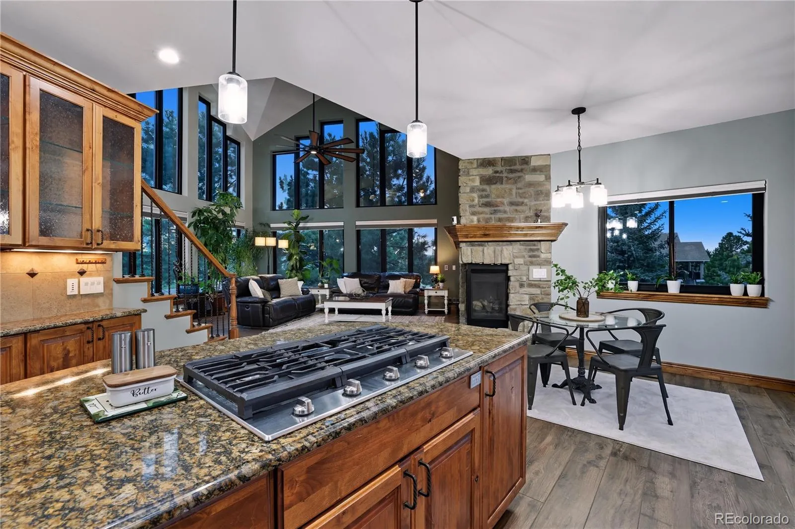 You’ll love this fully remodeled 6-bedroom, 4-bath custom smart home is a rare opportunity in the highly desirable Walden Preserve community. Nestled on a quiet, oversized corner lot with serene mountain views, this home offers over 4,500 sq. ft. of thoughtfully updated living space, including 4 bedrooms upstairs, 2 in the walk-out basement, and a main-level office with custom built-ins. Recent renovations include a new roof (2020), new stucco with fiberglass mesh (2022), fresh interior paint, updated light switches and outlets. The home also features a long list of energy-efficient upgrades, including a 9kW solar system (2021), all-new Andersen composite windows (2023), Nest thermostats, LED lighting, dual A/C units, two water heaters, a whole-house humidifier, radon mitigation system, water pressure booster, and a hot water recirculating pump. Technology lovers will appreciate the comprehensive smart home features, including Bluetooth intercom, Schlage smart locks, Ring cameras, MyQ garage door openers, Hunter smart sprinkler system, and smart ovens. The gourmet kitchen includes knotty alder cabinetry, granite countertops, double ovens, gas cooktop, a water filtration system, and all-new appliances (2021). Elegant flooring upgrades include heated Ditra tile floors on the main level, engineered Cali Bamboo upstairs, and Cali Geo-Wood in the basement. Outside, enjoy a beautifully landscaped yard with a built-in firepit, gas grill, and a 6-person Master Spa hot tub (2021)—ideal for entertaining or relaxing under the stars. This home is just a short walk to award-winning D38 Kilmer Elementary, and offers peaceful living in a forested setting with access to miles of scenic trails. Combining modern efficiency, smart tech, and natural beauty, this custom home is perfect for those seeking comfort, sustainability, and a high-end lifestyle in one of the area’s most exclusive neighborhoods.