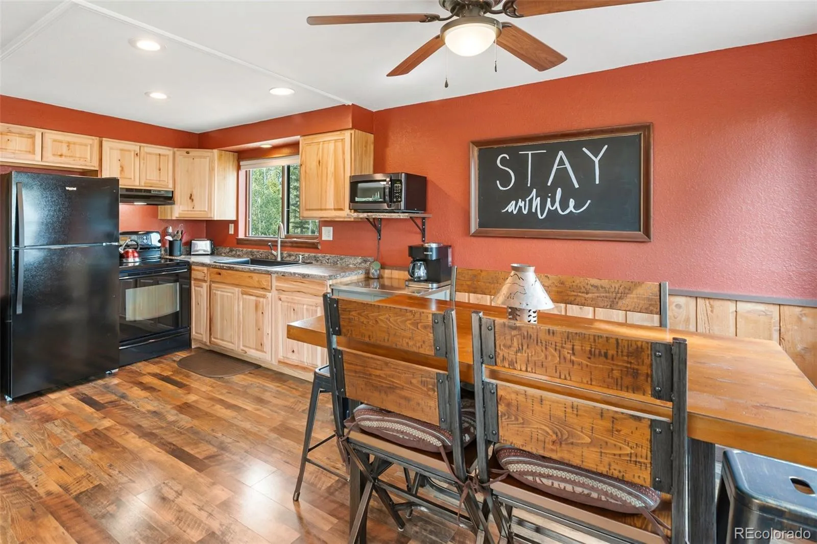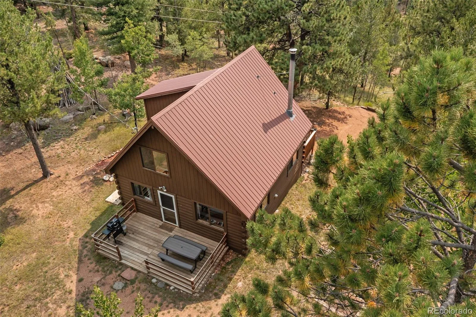Charming Updated Mountain Cabin in Divide, Colorado. Nestled on 1.47 acres with two combined lots and a vacated lot line, this beautifully updated 3-bed, 2-bath cabin offers the quintessential Colorado lifestyle. Surrounded by mature pines, aspen groves, and striking rock formations, the property showcases stunning year-round scenery—particularly breathtaking in the fall. From the decks and windows, you’ll enjoy sweeping views of Pikes Peak and the surrounding forest. Inside, the home blends rustic mountain charm with modern updates. Log siding, a freestanding wood-burning stove, and hickory cabinetry create a warm, inviting atmosphere, while updated light fixtures and a new washer, dryer, and refrigerator provide everyday convenience. The furnishings are negotiable, making this a true turnkey opportunity. Step outside to relax on the front or back deck, where peace and privacy abound. Two storage sheds add practicality, and the property’s short-term rental history offers excellent investment potential. With its cozy cabin style, modern upgrades, and unmatched views, this Divide retreat is the perfect mountain getaway or full-time residence.