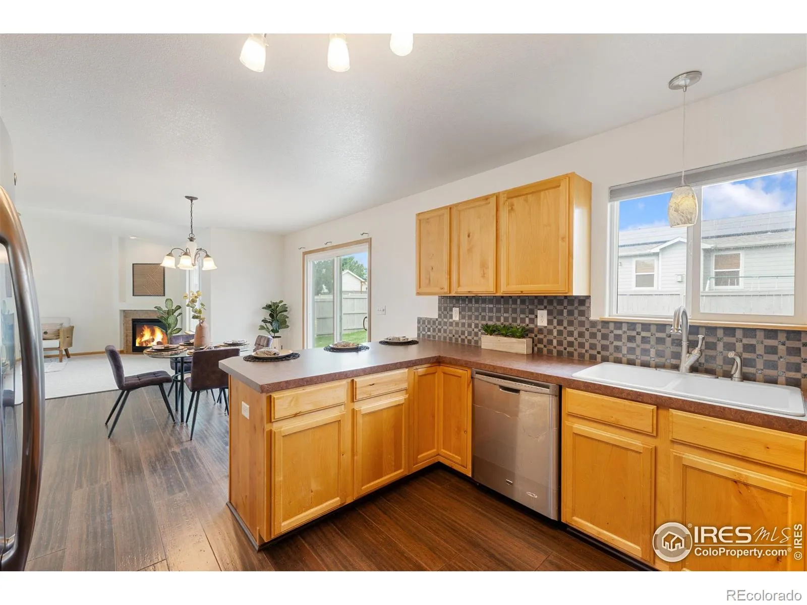 Welcome to this beautiful four-bedroom home in Wellington’s highly desirable Buffalo Creek neighborhood! With brand-new carpet and fresh paint throughout, this home feels bright, refreshed, and completely move-in ready. Step inside to a spacious entry and living room featuring vaulted ceilings, abundant natural light, and a cozy gas fireplace-creating a warm, inviting atmosphere. The open dining area flows seamlessly into a well-appointed kitchen with wood floors, generous counter space, ample storage, and a custom tile backsplash-perfect for both everyday living and entertaining. Upstairs, you’ll find three comfortable bedrooms, including a large primary suite with a walk-in closet and full bath. The fully finished basement expands your living options with a large family room, an additional bedroom, and a full bath-ideal for guests, a home office, or a recreation space. Enjoy peace of mind with quality upgrades throughout, including Pella windows and major systems-furnace, A/C, water heater, and roof-all replaced within the past five years. Conveniently located near schools, parks, and downtown Wellington, this home offers exceptional comfort, quality, and small-town charm. A wonderful opportunity and an incredible value!