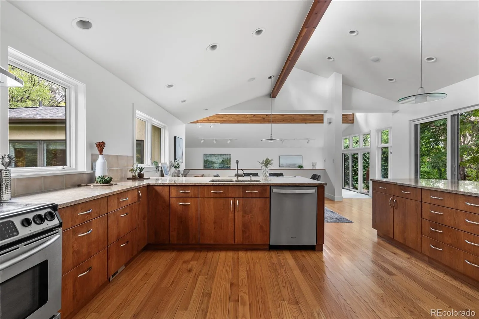 The Mid-century open-concept layout connects the kitchen, dining, and living areas seamlessly–perfect for hosting and everyday life. Whether it’s holiday dinners, book clubs, or celebrations with over 100 guests, this home was built to bring people together. At 444 Cherry, life’s biggest milestones don’t just happen–they’re hosted.The main-floor primary suite with it’s own washer & dryer is tucked away in its own private wing for comfort and convenience.