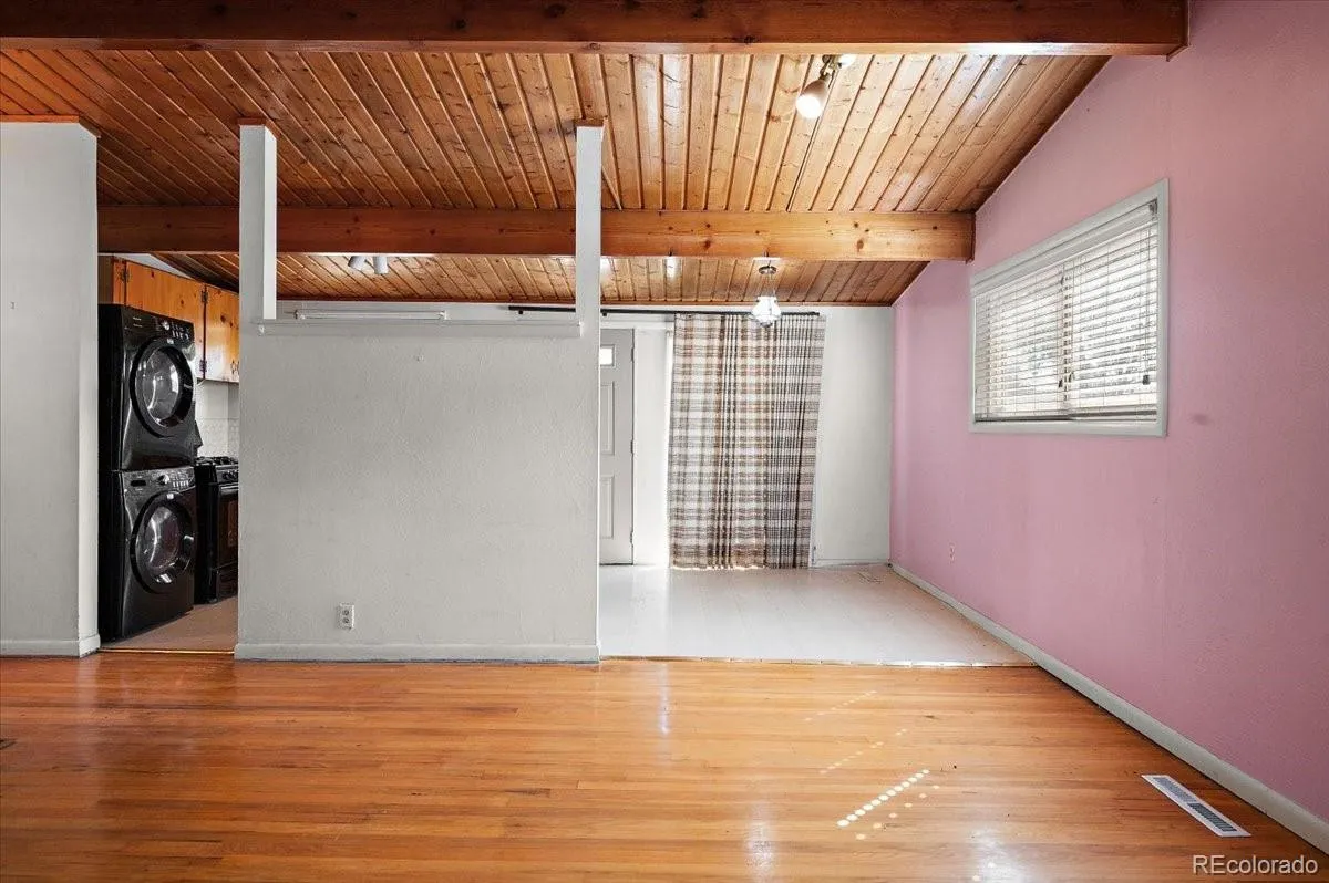 Step into timeless style with this stunning mid-century modern home, overflowing with natural light and architectural charm. Featuring striking tongue-and-groove wood ceilings with exposed beams adding to the gorgeous vaulted ceilings, the open floor plan creates a spacious, airy feel throughout.