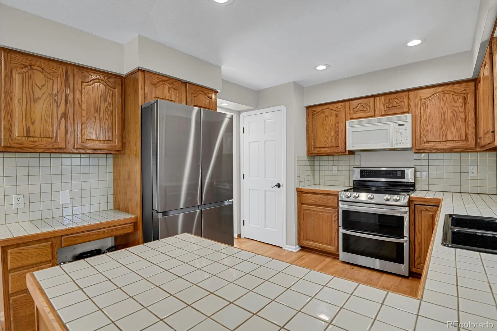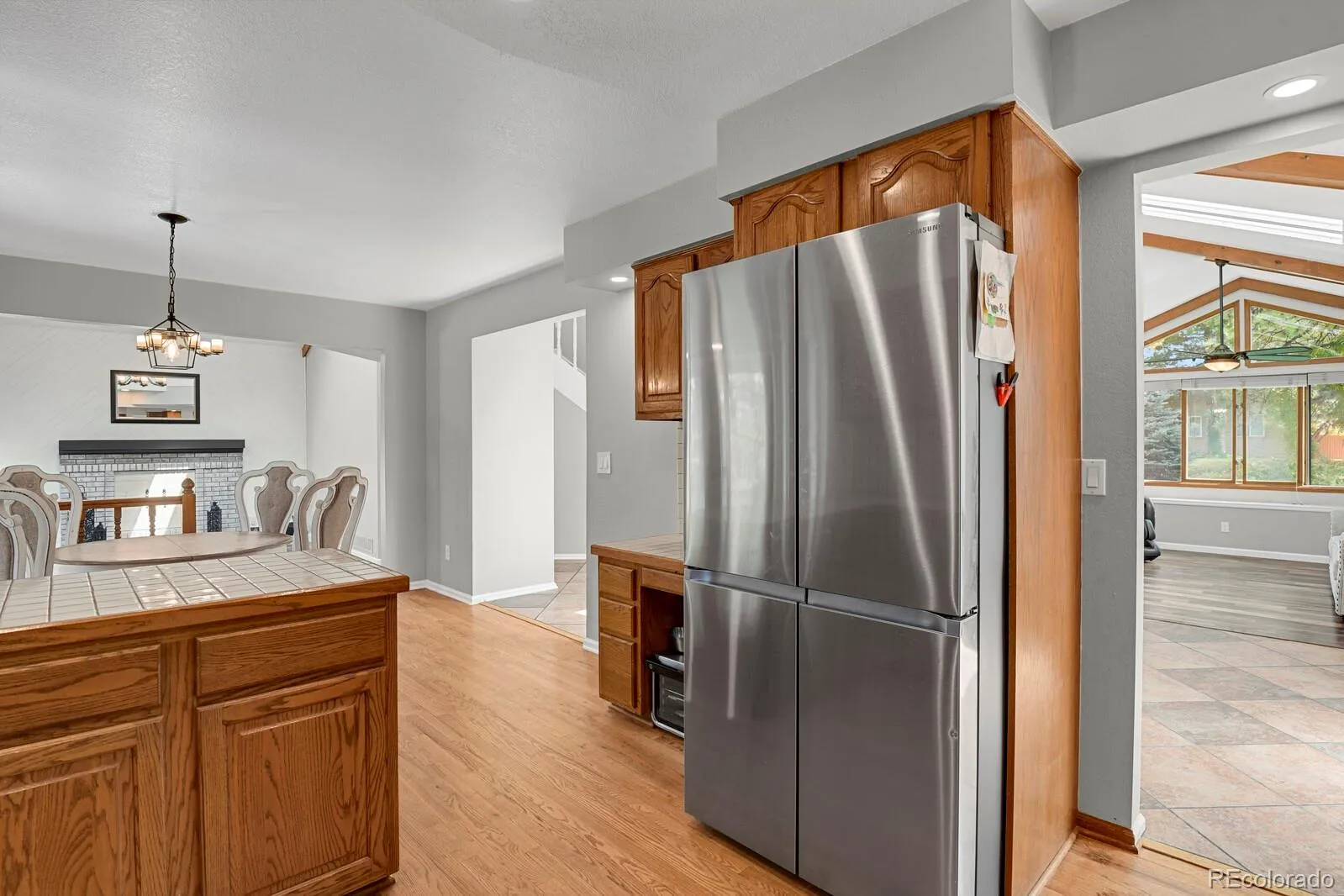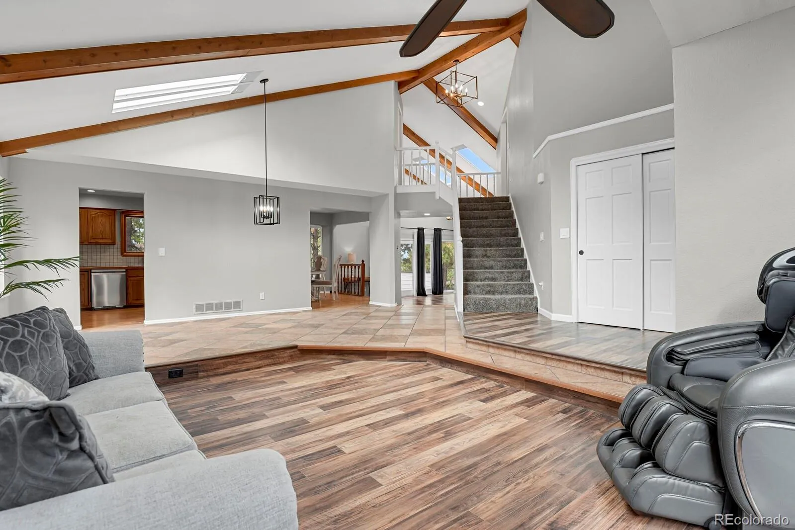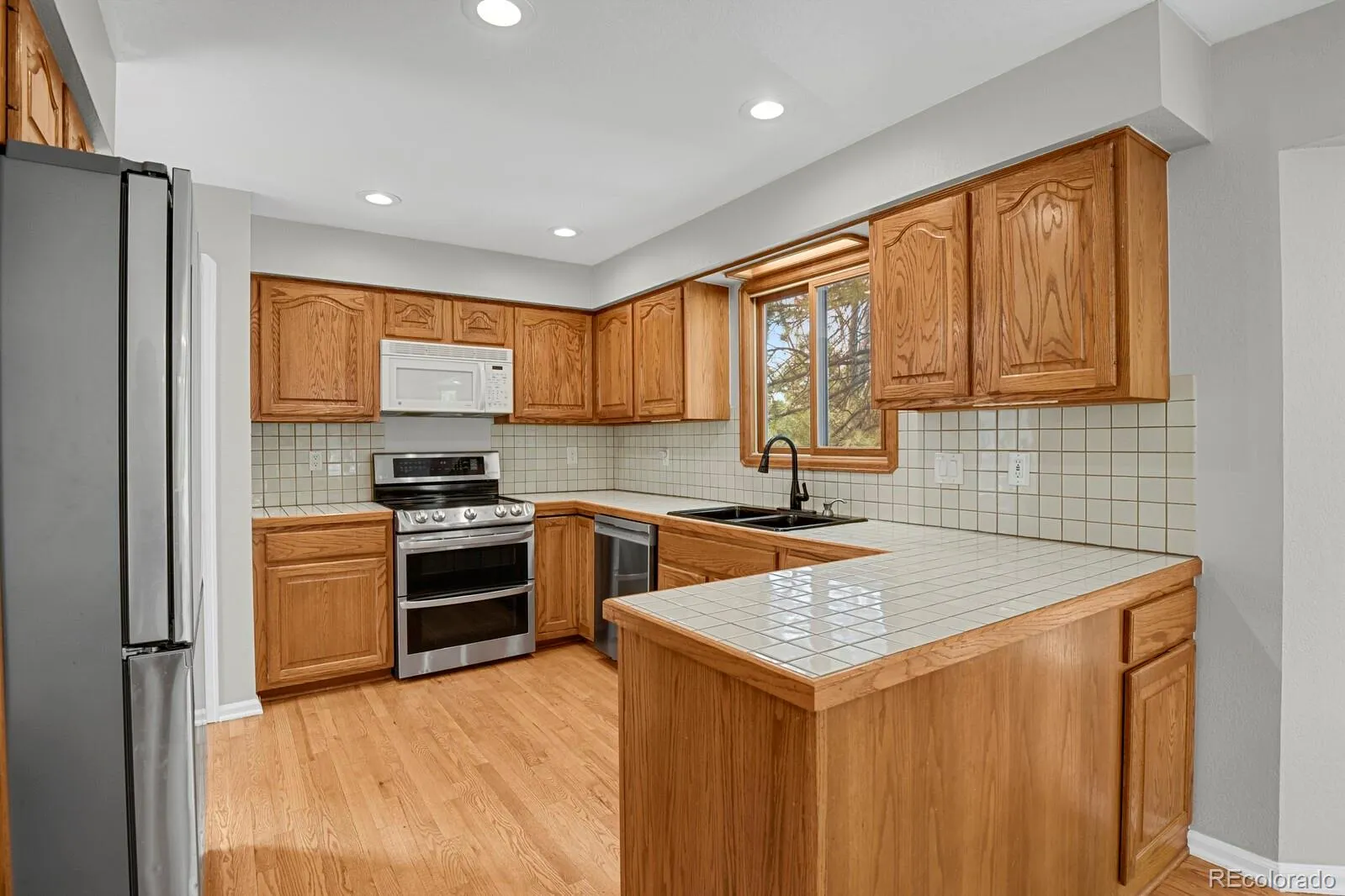 Welcome to The Pinery – where natural beauty meets exceptional living. Located just minutes from Denver, this sought-after community offers a rare combination of tranquility, wildlife, and suburban convenience. Positioned on a .23-acre lot, this well-appointed residence features 5 bedrooms and 3.5 bathrooms, including a finished walkout basement with a generous area perfect for den, game room or an additional family room, a fourth bedroom with en-suite bath, and a fifth non-conforming bedroom or office—ideal for guests, multigenerational living, or remote work. The upper level includes a spacious primary suite with a five-piece bathroom, two additional bedrooms, and a full hall bath. Interior highlights include: Updated flooring (with additional material included). Sensor lighting for enhanced efficiency and convenience. Skylight covers that open and close with ease. Significant recent improvements include a newer roof, interior and exterior paint, carpet, furnace, water heater, and kitchen appliances, providing peace of mind for years to come. The exterior offers professional landscaping, a sprinkler system (including turf coverage for self-cleaning), and an extended driveway pad for additional parking. The kitchen is fully functional and offers an excellent opportunity for customization—perfect for those looking to add value and personalize their home. Don’t miss this opportunity to own in one of the most desirable neighborhoods on the Front Range.