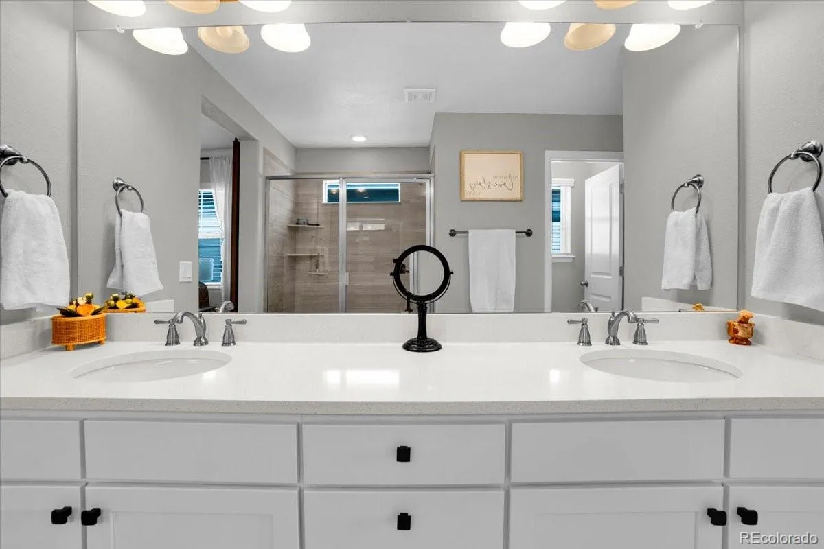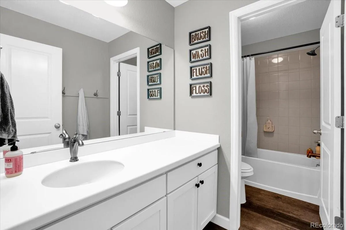 Welcome to this beautifully designed home in the highly desirable Terrain community of Castle Rock, Colorado. This spacious two-story residence offers 4 bedrooms all on the same upper level, creating the ideal layout for convenience and connection. The primary suite features a luxurious en-suite bathroom with dual sinks, a separate shower, and a generous walk-in closet, providing a true retreat at the end of the day. The main level boasts an open concept floor plan, seamlessly connecting the living room, dining area, and kitchen. Large windows fill the home with natural light while the modern finishes, stainless steel appliances, and ample counter space make the kitchen both stylish and functional. Huge walk in pantry allows for tons of storage space! Downstairs, the finished basement expands the living space with a versatile great room, a bathroom, and an additional bedroom—perfect for guests, a private office, or a media/game room. Step outside to a backyard designed for ease of living. The low-maintenance turf yard is ideal for year-round enjoyment, entertaining, or simply relaxing without the hassle of constant upkeep. The covered deck allows you to enjoy this space year round; put a fire pit out back and enjoy cozy fall evenings on the patio! Living in the Terrain community means access to an impressive array of neighborhood amenities, including multiple pools, a dog park, miles of trails, and highly regarded local schools. Located just minutes from downtown Castle Rock, residents can enjoy boutique shopping, local dining, seasonal events, and convenient access to I-25 for easy commuting to Denver or Colorado Springs. This home combines modern functionality, community living, and unbeatable location—making it the perfect opportunity to enjoy all that Castle Rock has to offer.