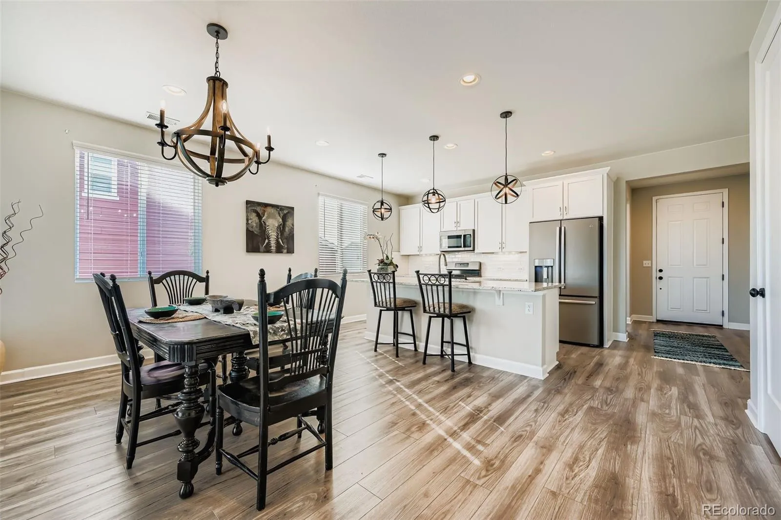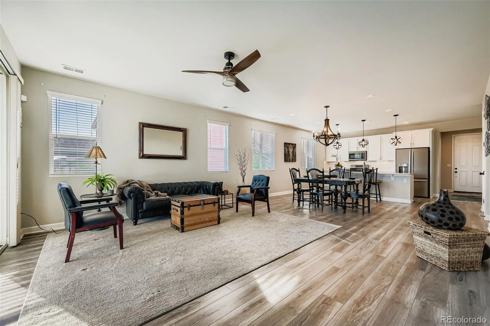 Welcome home to this turn key exceptionally well cared for ranch style home in the desirable St. Vrain school district that funnels into Erie Junior and High Schools. This home was built with style in mind. Notice the 8 foot solid wood doors, luxury vinyl flooring that can take whatever you put on it, designer finishes, upgraded hardware, soft close cabinets, quartz countertops and tile backsplashes. Hunter Douglas window coverings on the massive slider door, and plantation shutters in the primary bedroom and the front room currently staged a an office. High end light fixtures were added a few years ago. You will love your backyard oasis with the oversized custom poured patio and beautiful easily maintained gardens. This is the largest lot in the neighborhood as well, giving you a little more room on each side of your house for the sense of privacy. No neighbors behind you as the open space trail is nearby, and you can see Longs Peak perfectly while bird watching and relaxing in your private space. Many trees were planted and maturing nicely. Ease of care was in mind when creating the yard and garden space. Come see this home as it won’t last long because of its stand out upgrades and price to sell. Feel free to reach out to listing agent with any questions you may have.